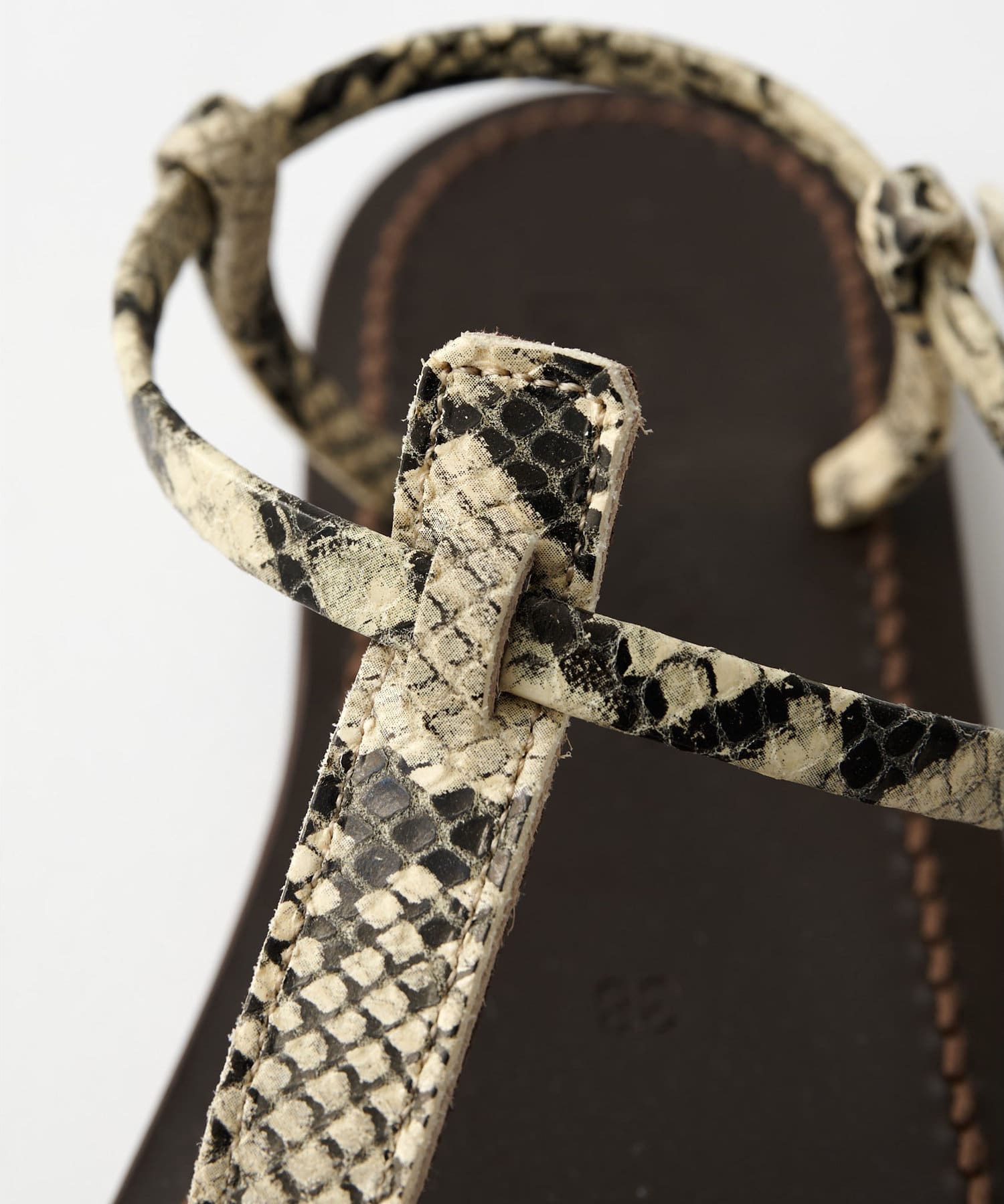 ■パイソン柄がアクセントになったトングサンダル。