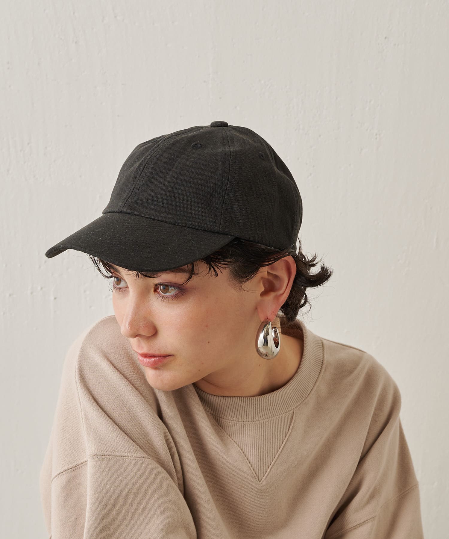大人スタイルにもバランス良く馴染むシンプルキャップ