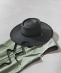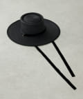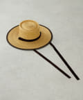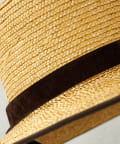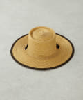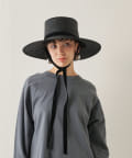 ■広めのブリムとエッジにあしらわれたテープリボンが特徴的なデザイン。