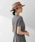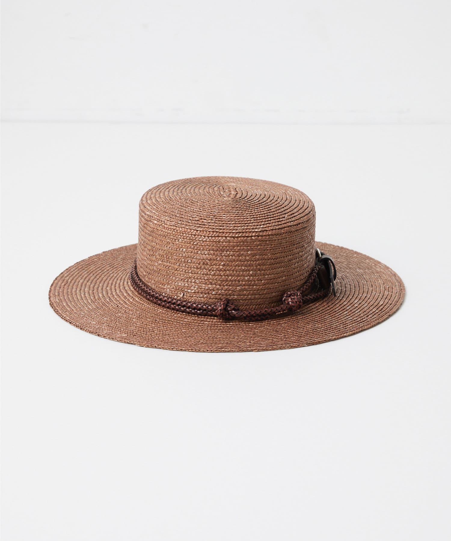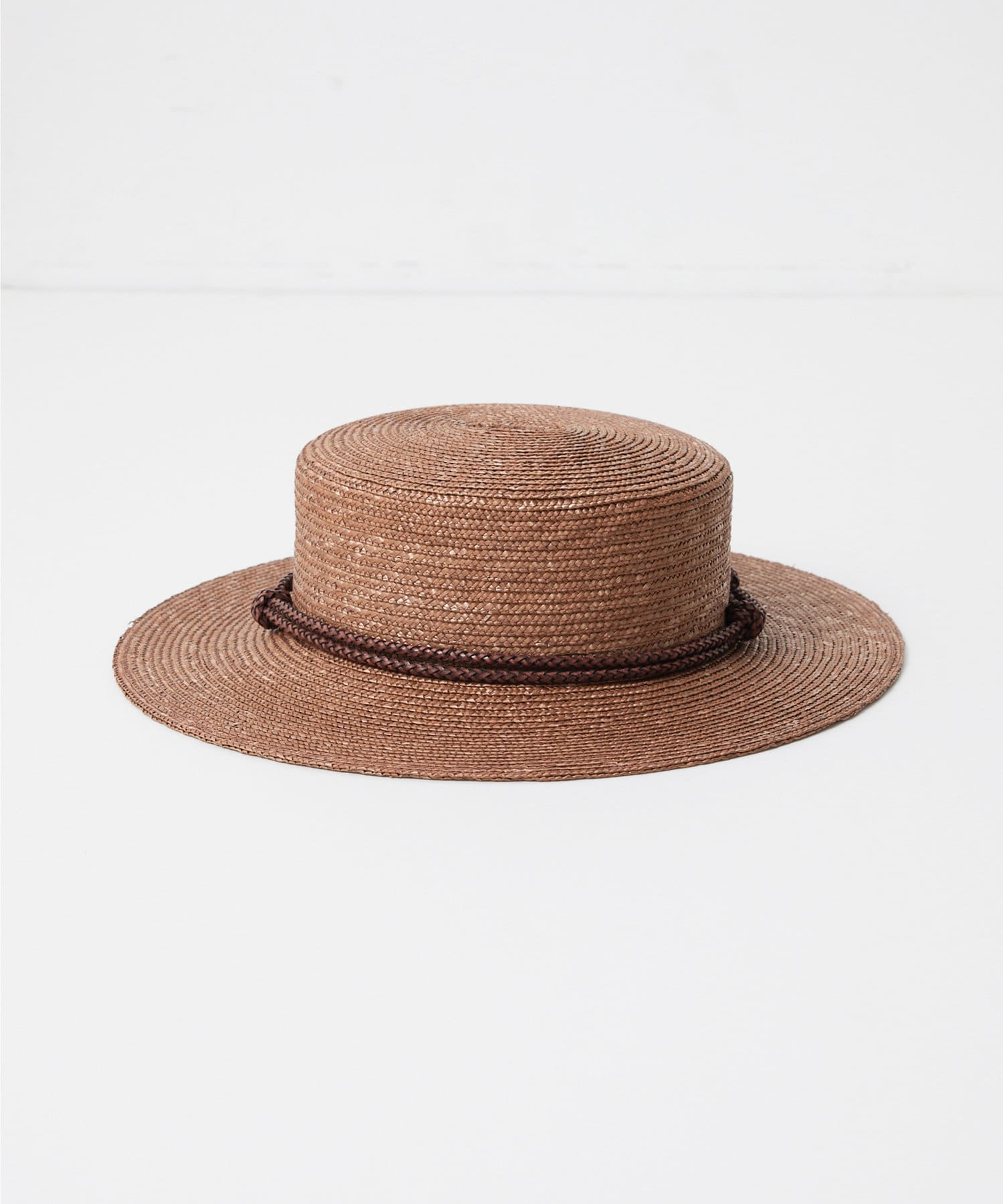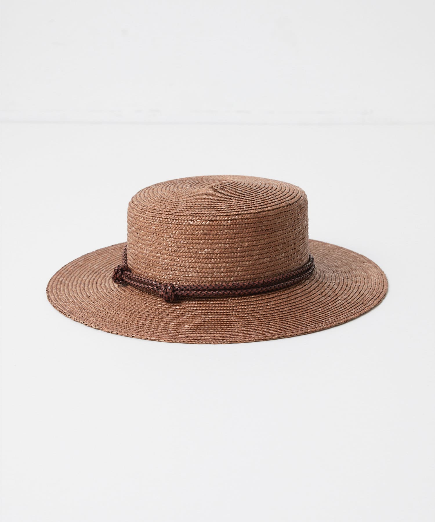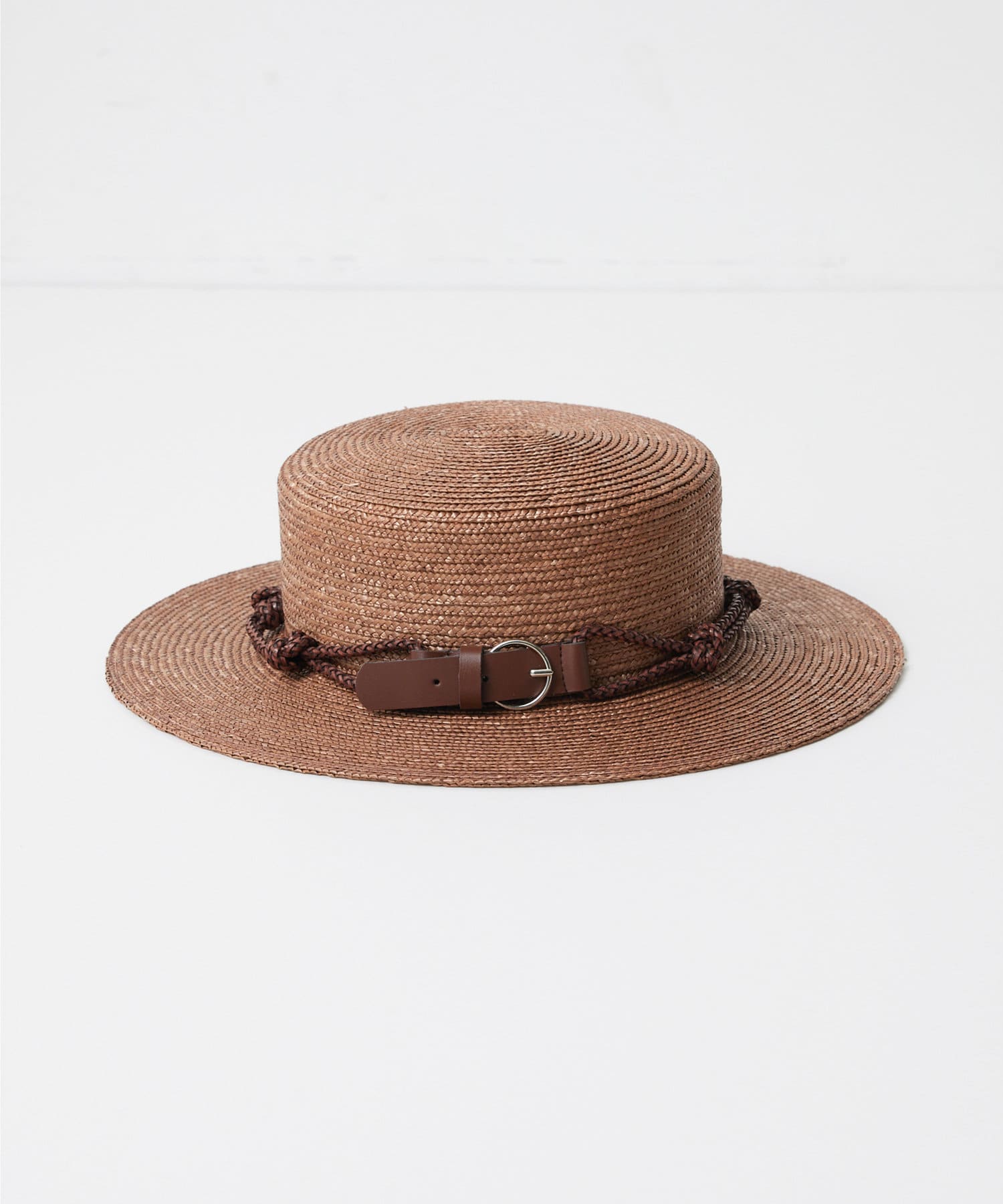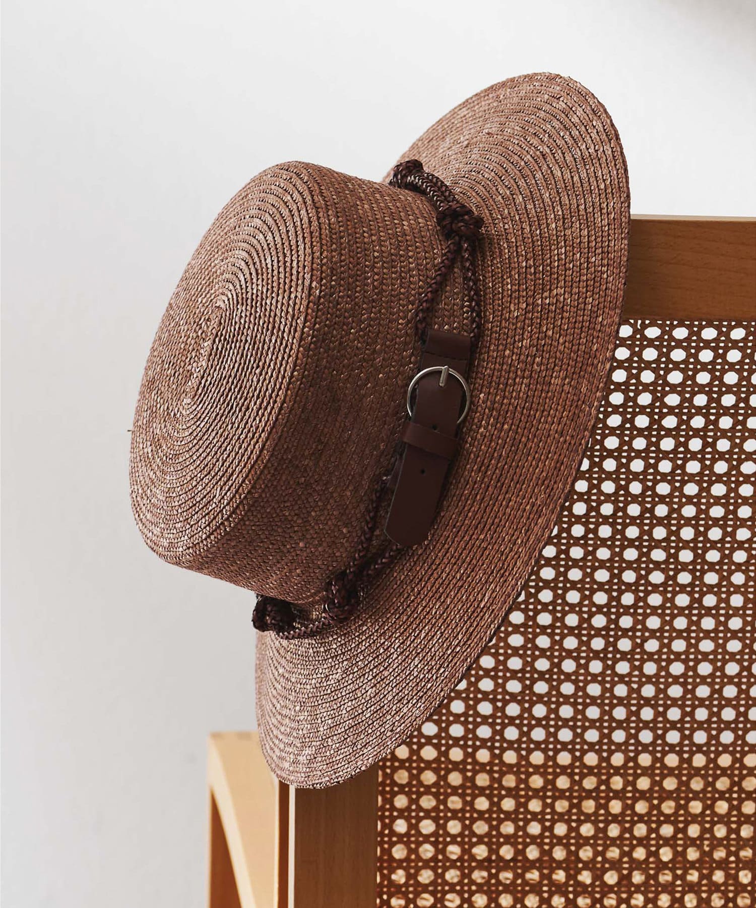 ■広めのブリムと編み込みのベルトディティールがポイント。