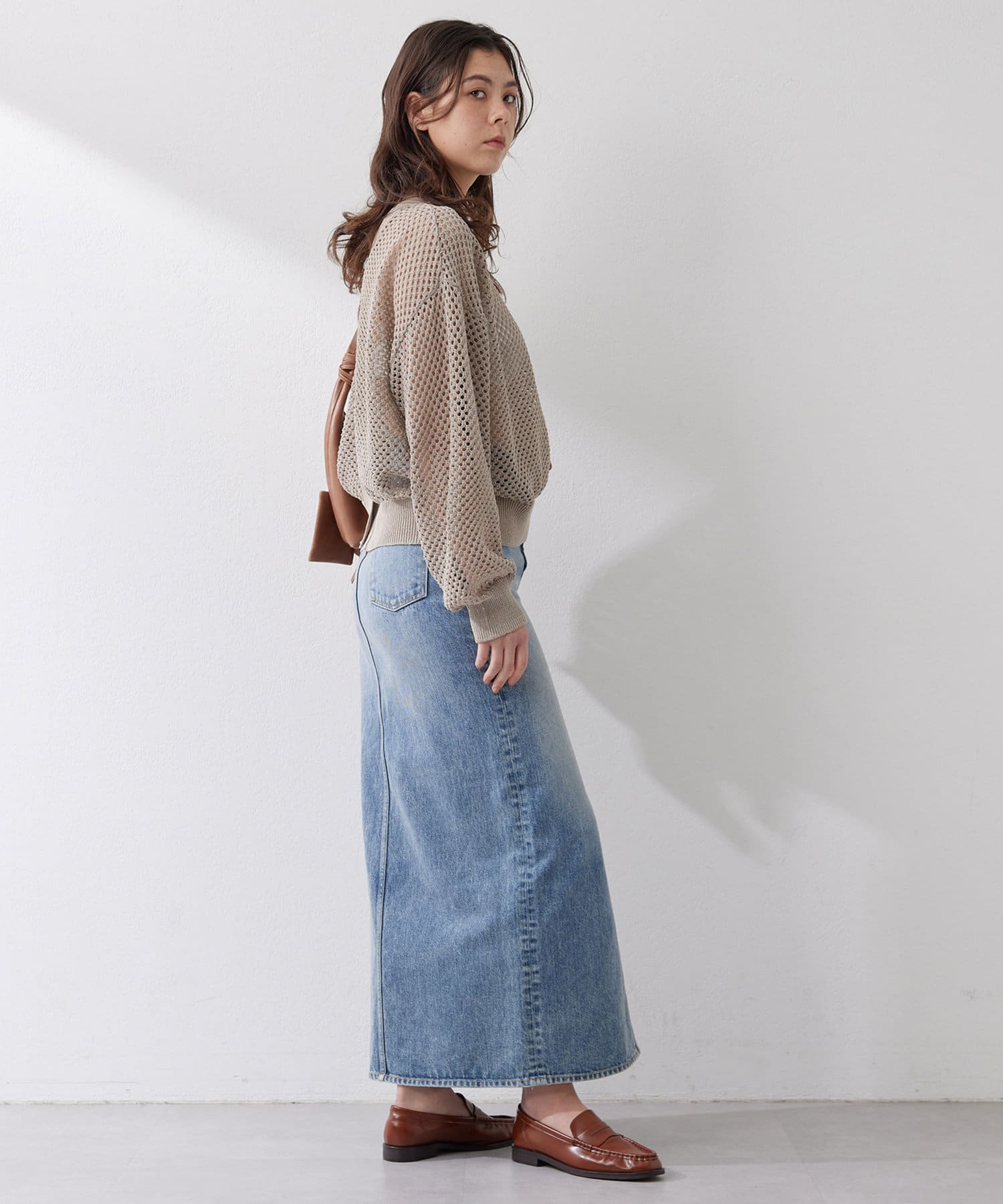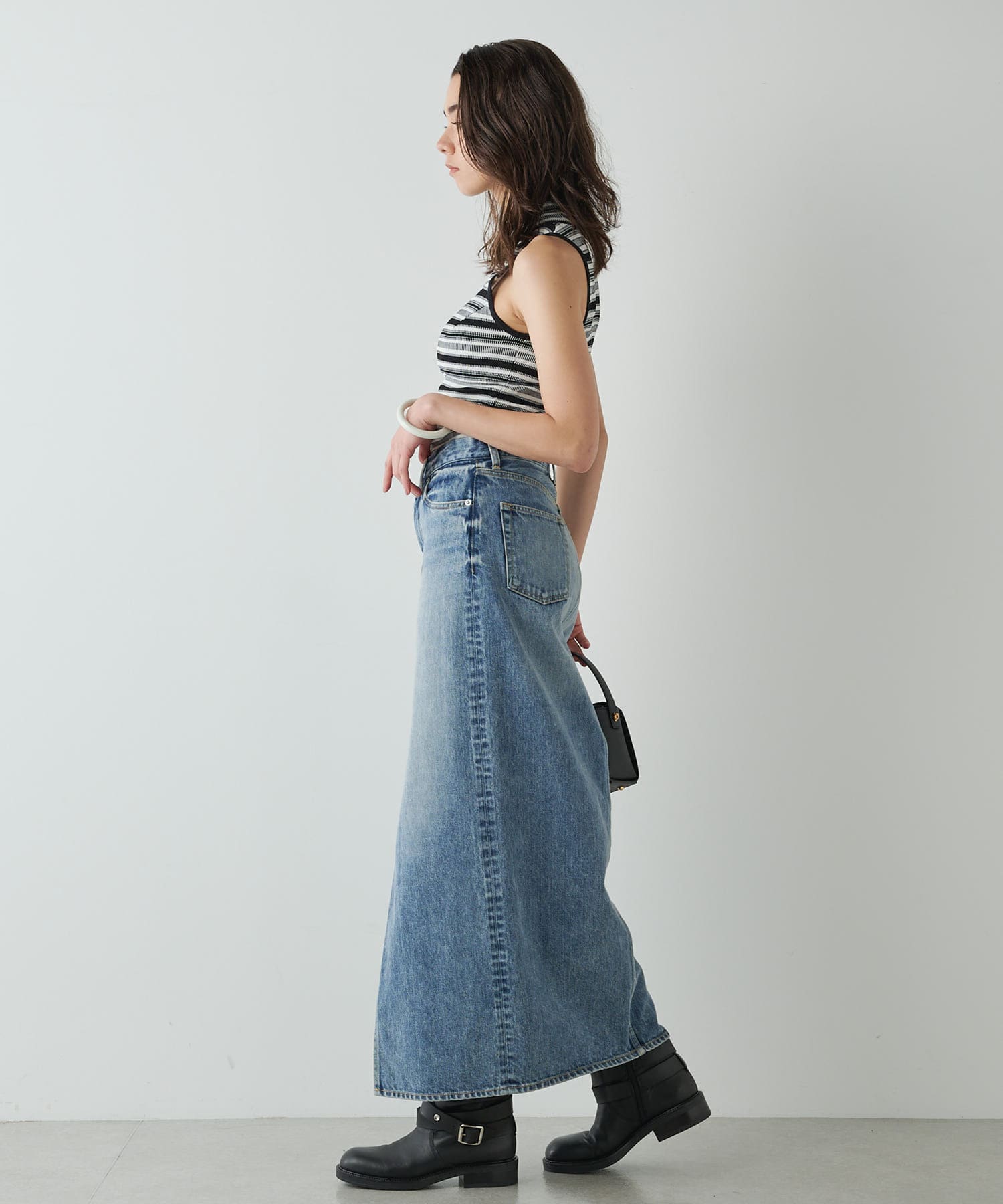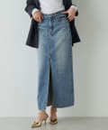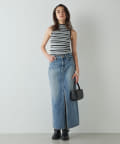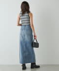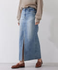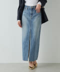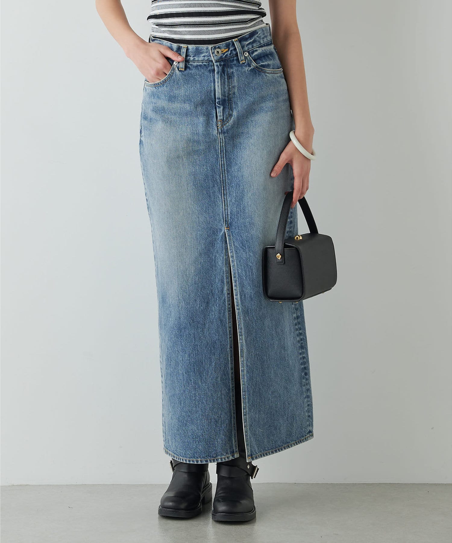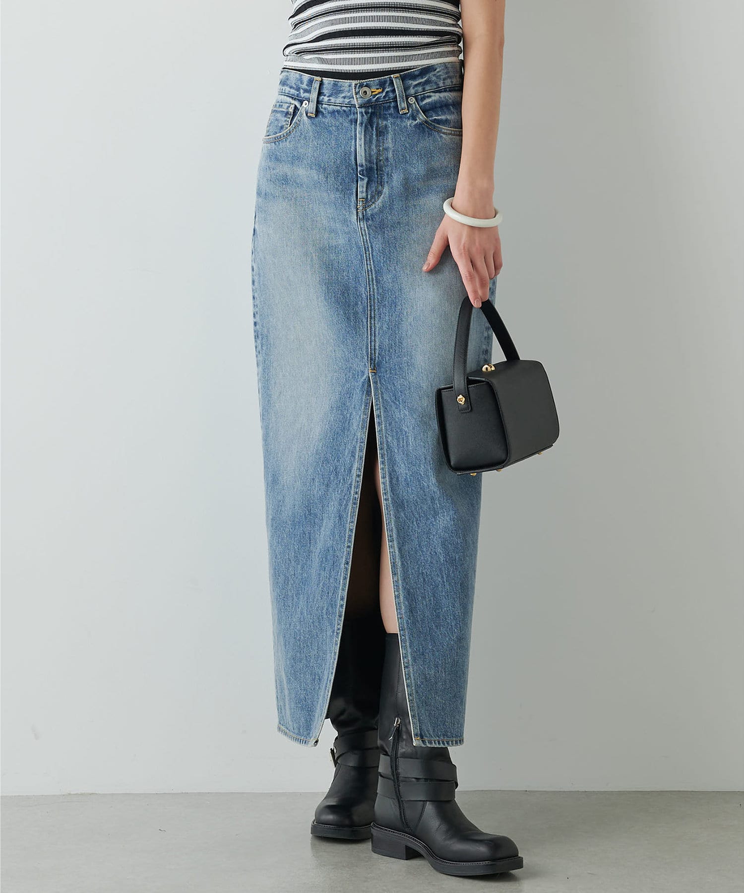スッキリとした美シルエットのデニムスカートです。スリットが足捌き良く、抜け感を出してくれます。普段デニムパンツを履かれない方は、デニムスカートでコーデの幅を広げられるのも素敵ですね!