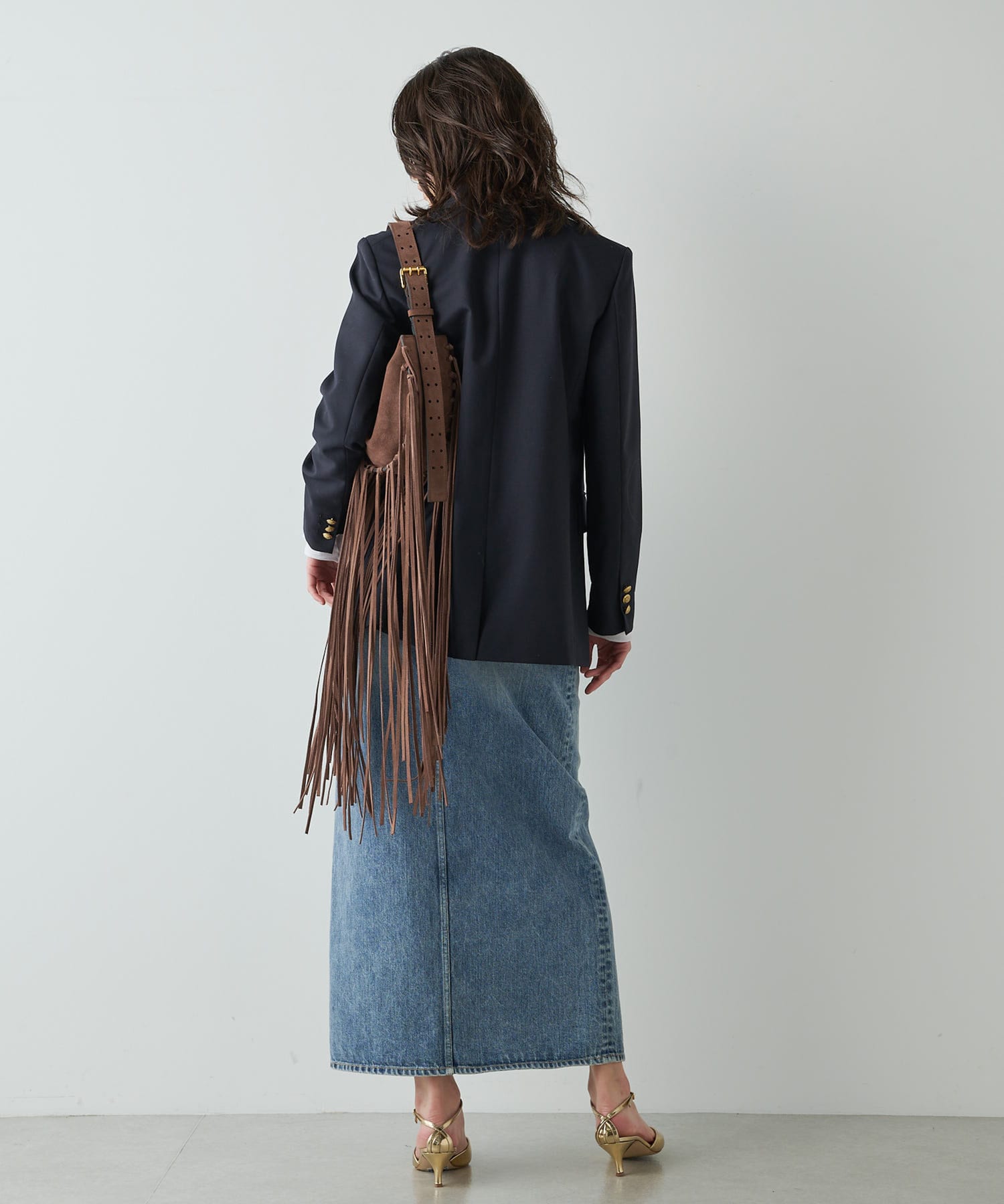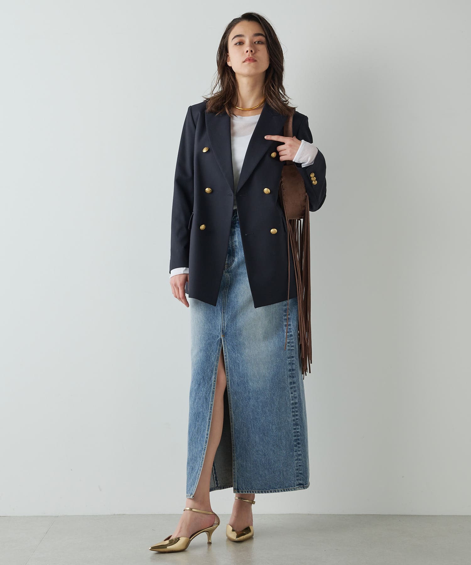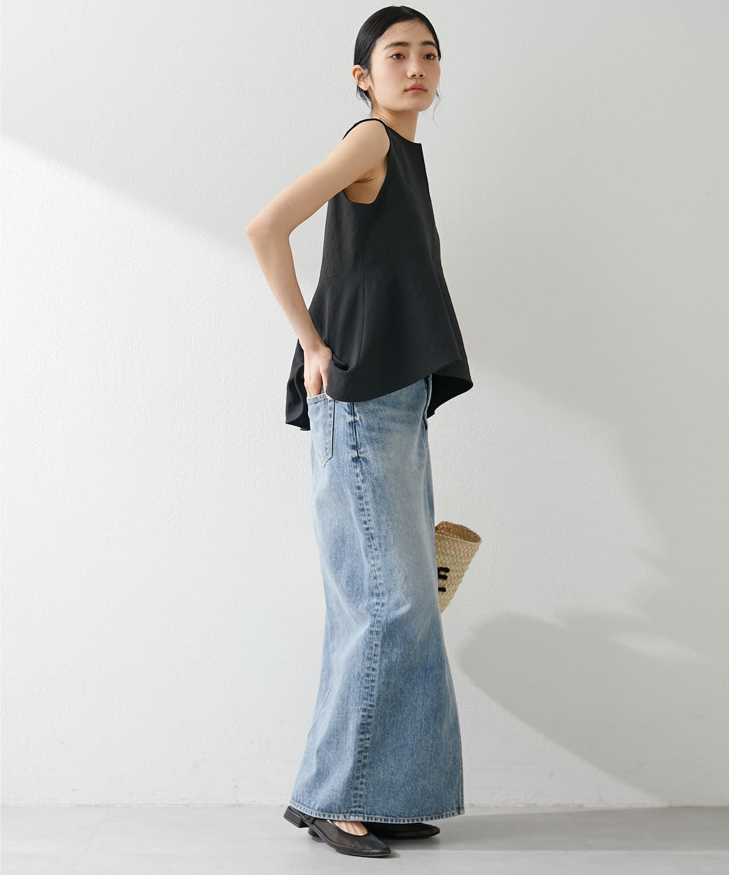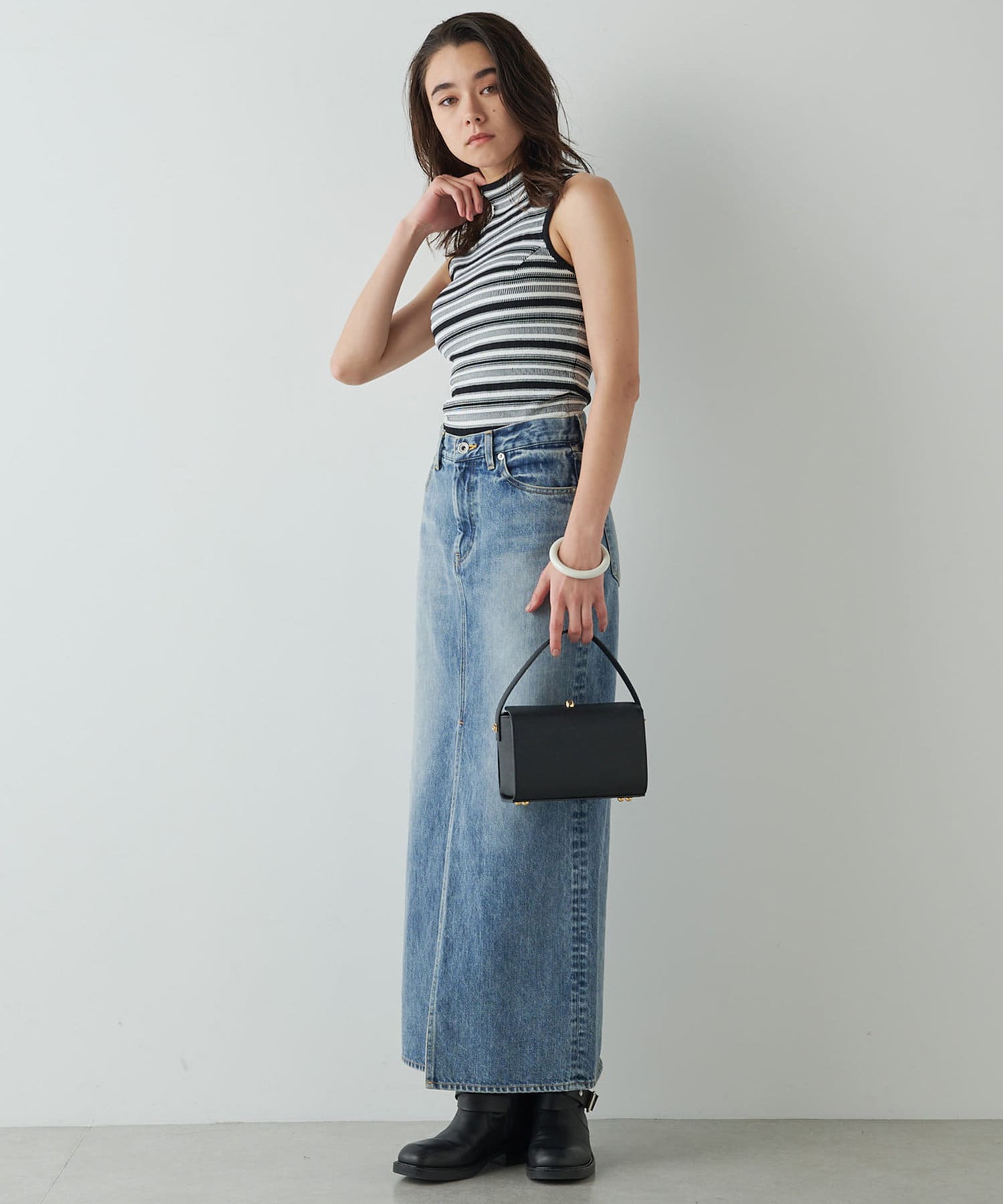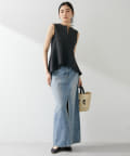 スッキリとした美シルエットのデニムスカートです。スリットが足捌き良く、抜け感を出してくれます。普段デニムパンツを履かれない方は、デニムスカートでコーデの幅を広げられるのも素敵ですね!