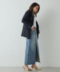 スリットも深いけどしっかりしたデニムなので広がることなく、気にしないで履けそうです。ちらっと見える足が良いなと!