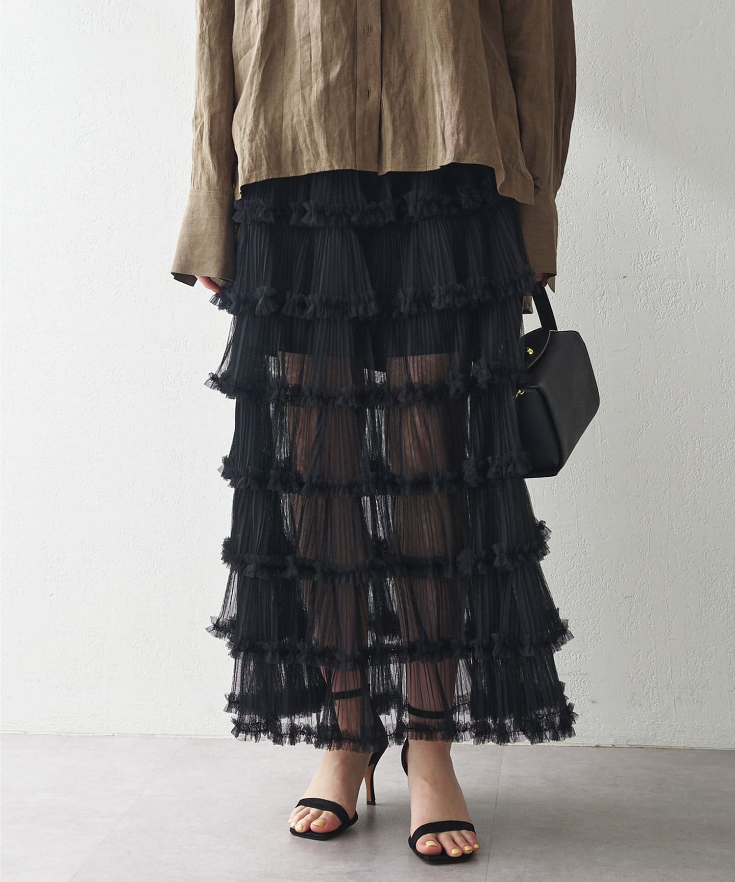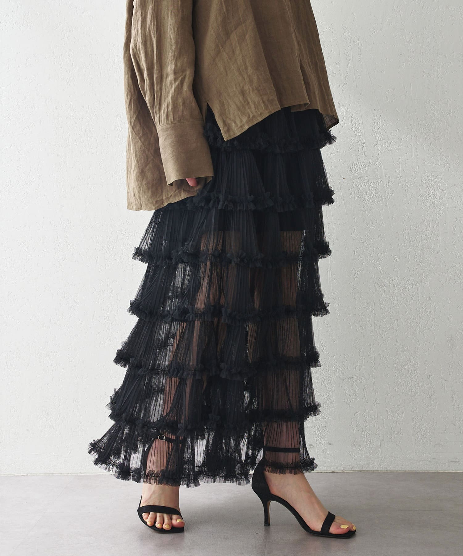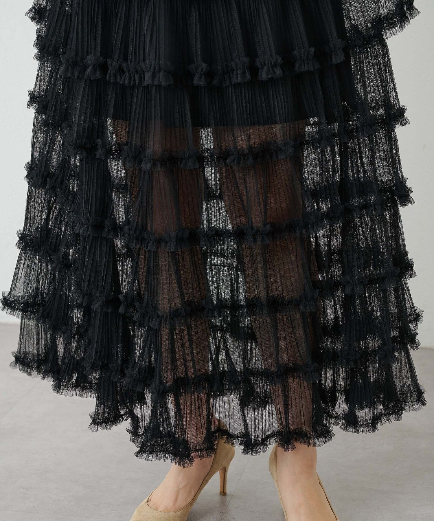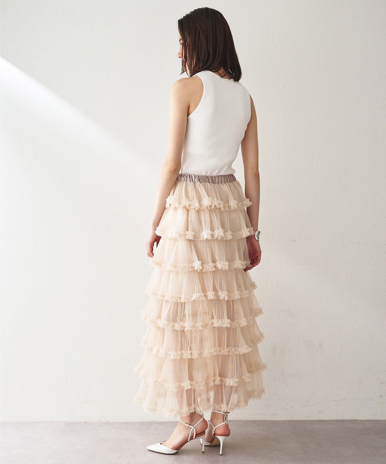 贅沢なティアードシルエットで着映えるチュールスカート