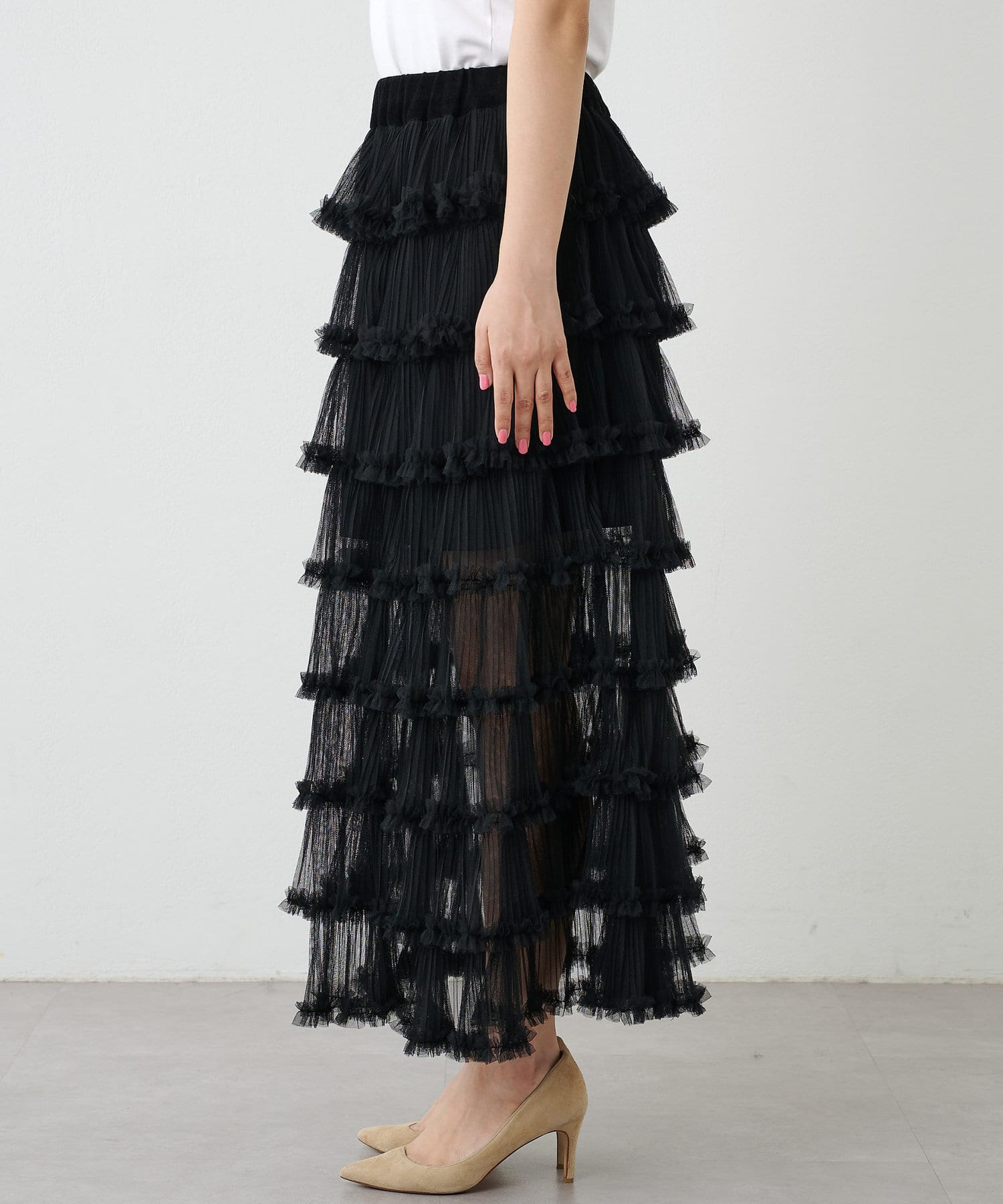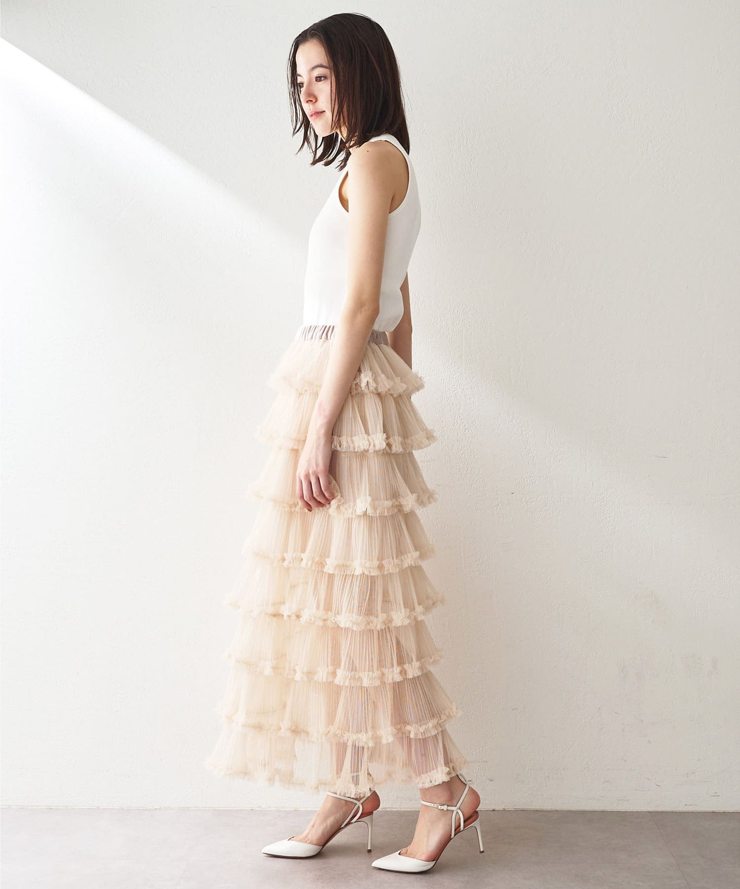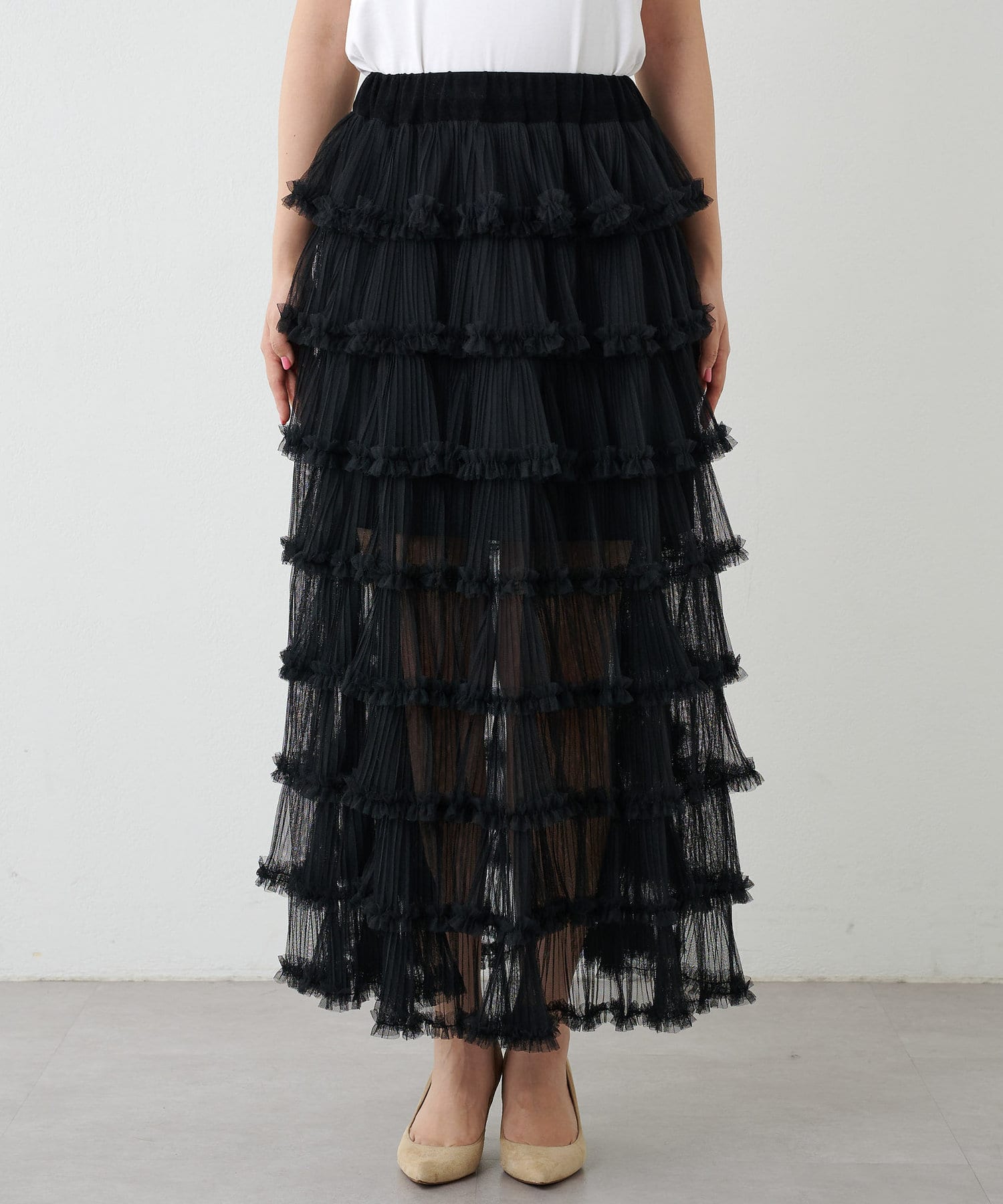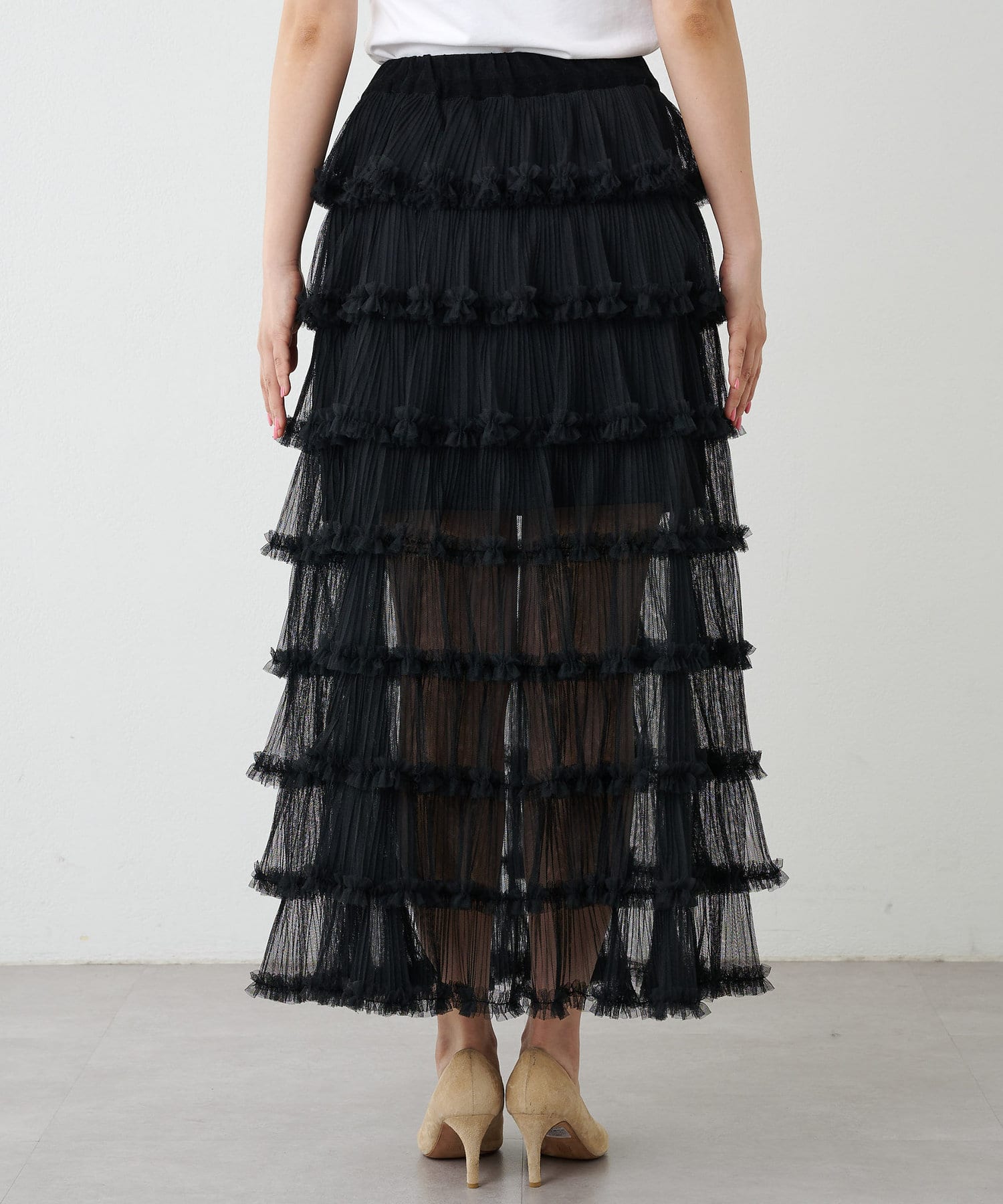 贅沢なティアードシルエットで着映えるチュールスカート