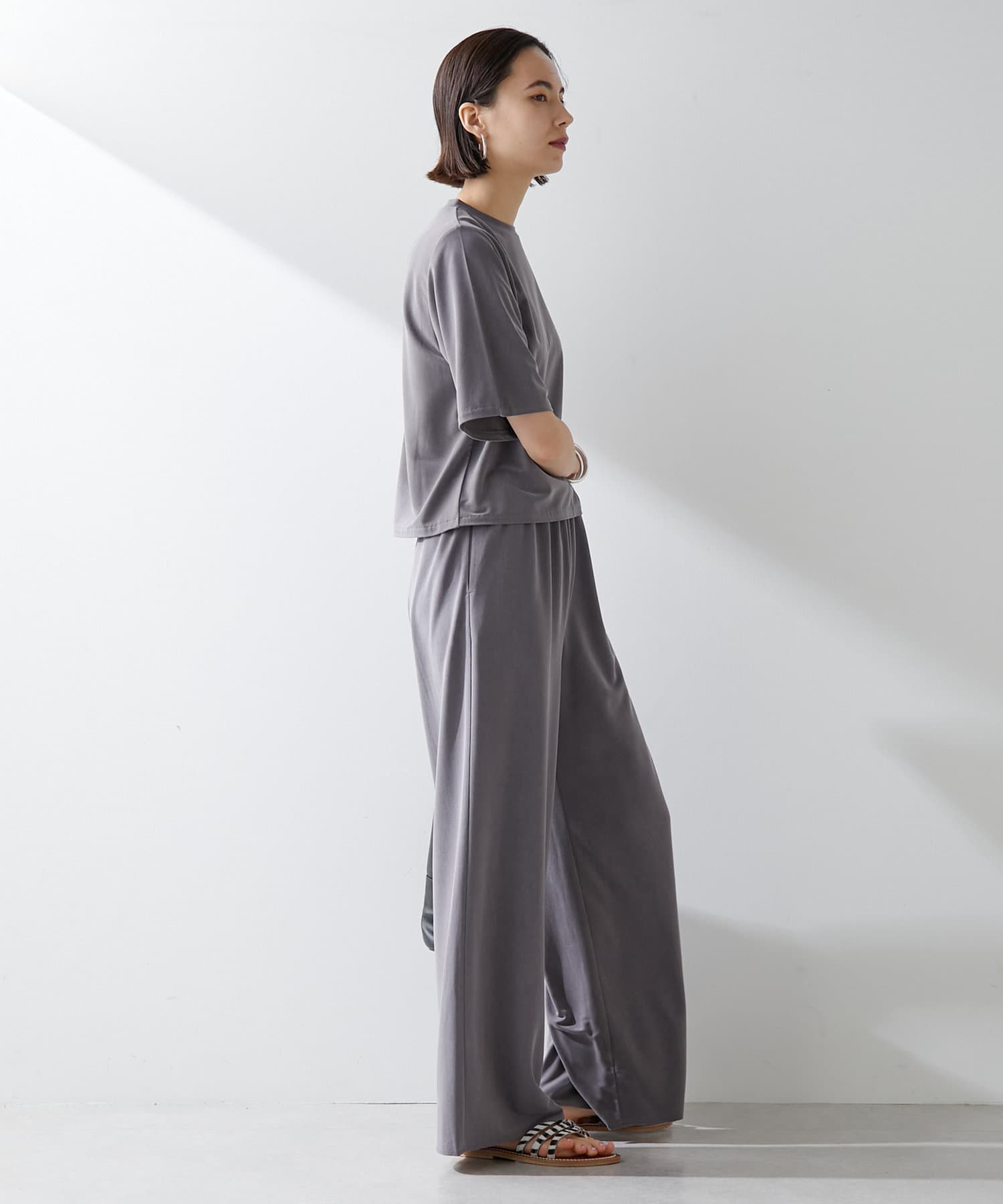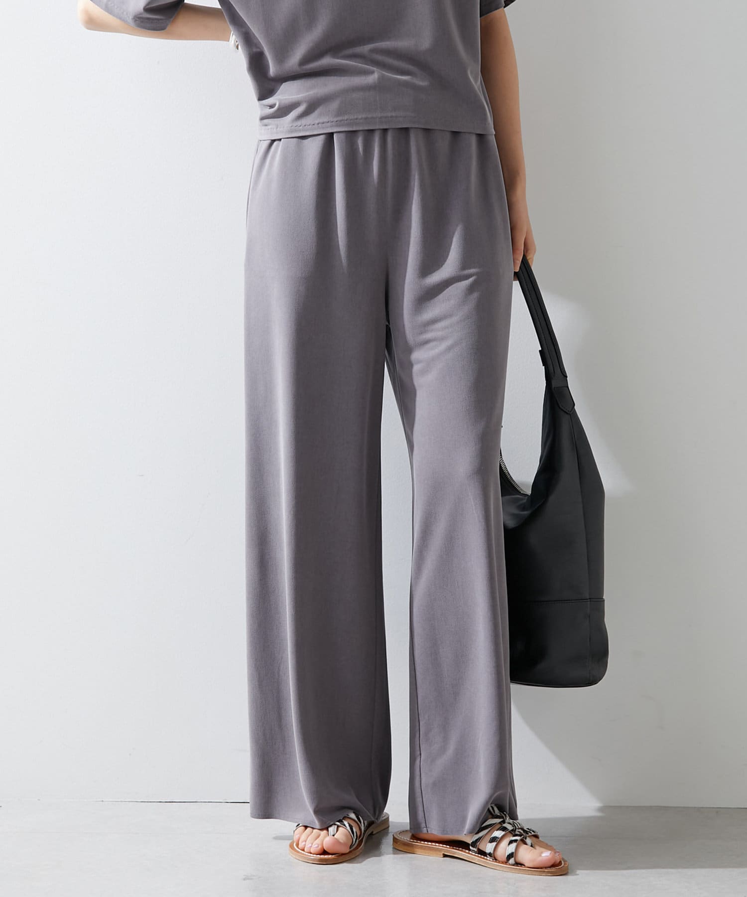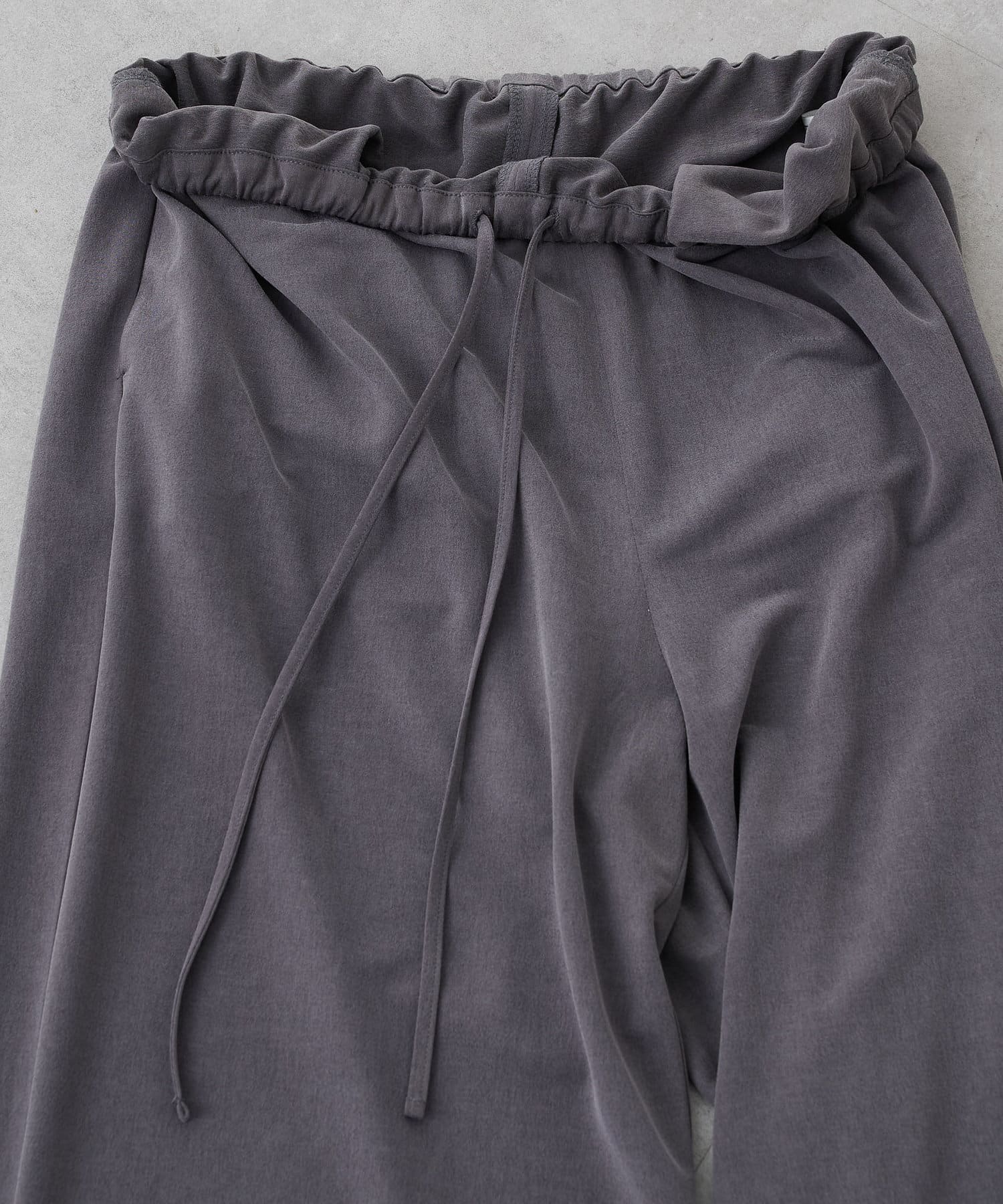 ■落ち感のあるカットソー素材を使用したワイドドロストパンツ。