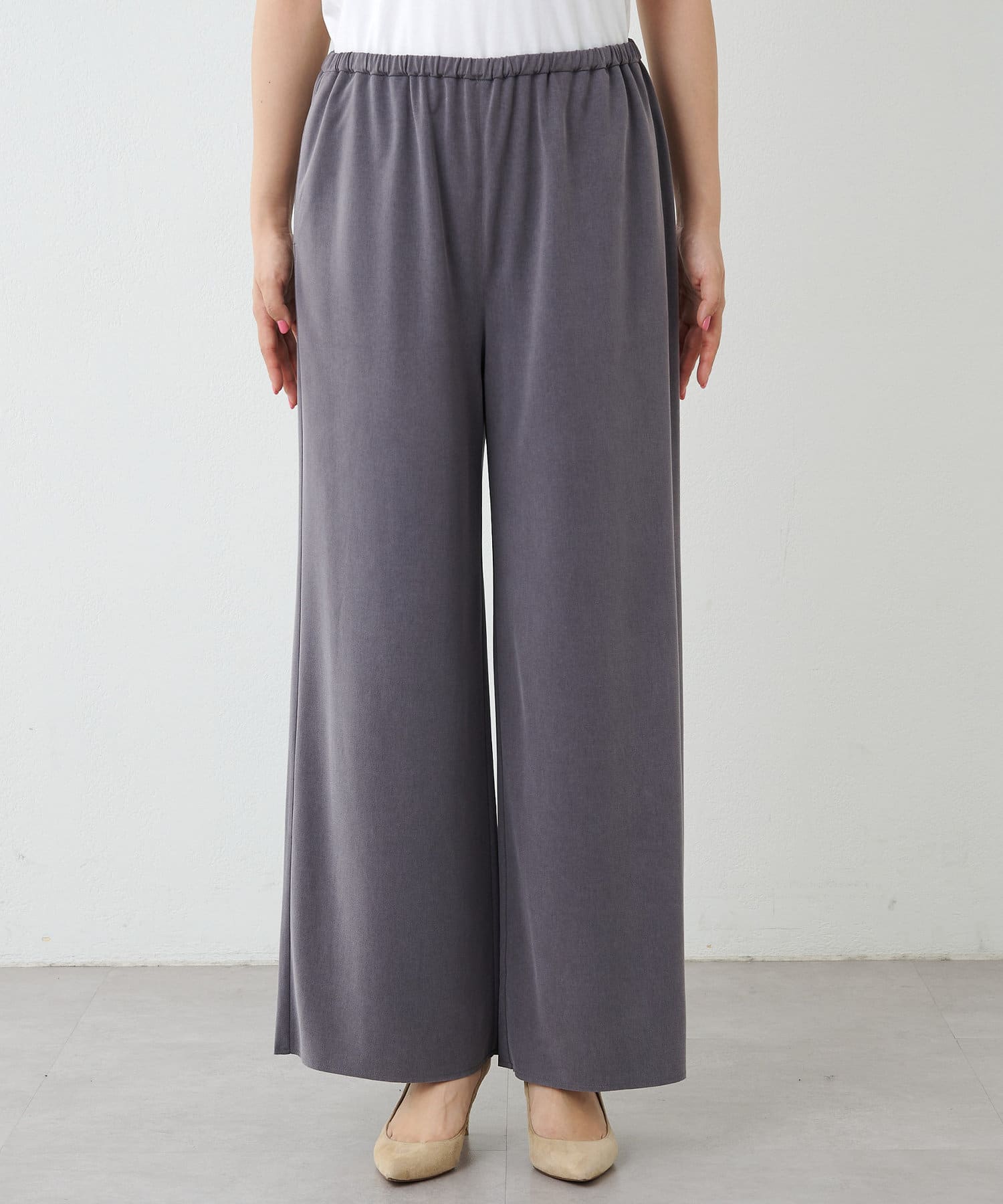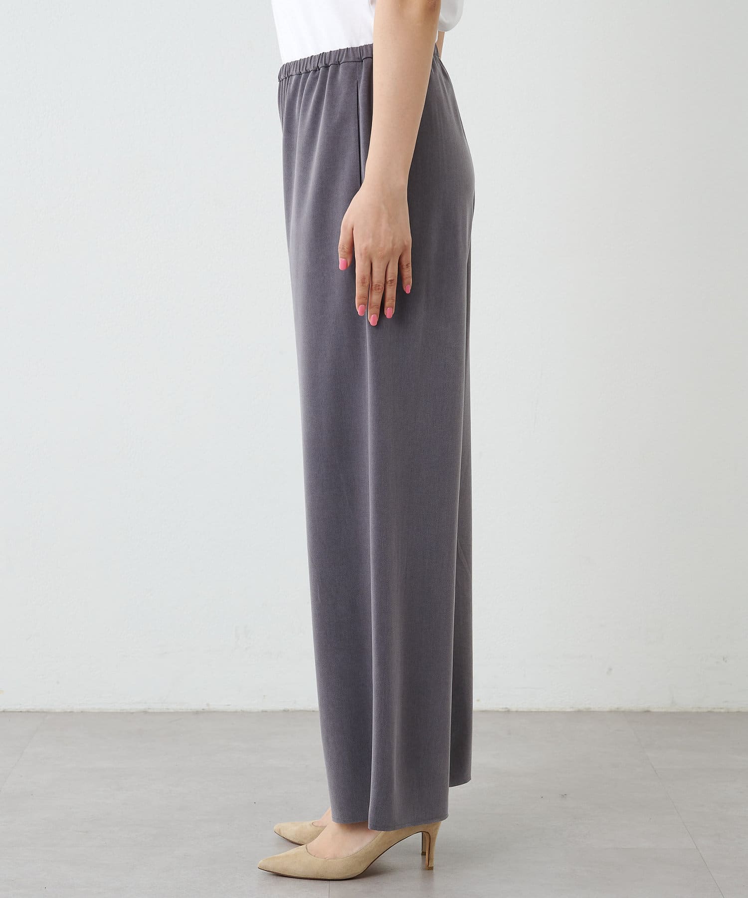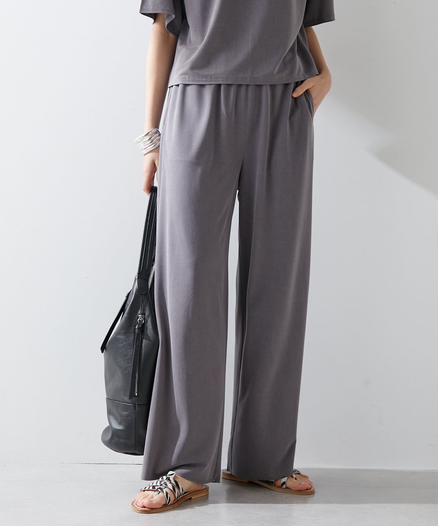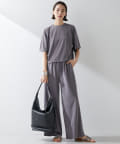 ■落ち感のあるカットソー素材を使用したワイドドロストパンツ。