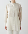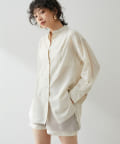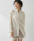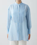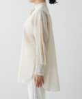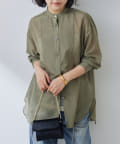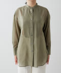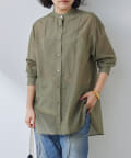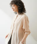 シアー感と上品な光沢感が素敵なコットンシルクシャツ。バンドカラーがスタイリッシュさをプラスしてくれます。サッと羽織ることができて、重さを感じさせないアイテムです。着回し力のある一枚です。