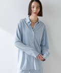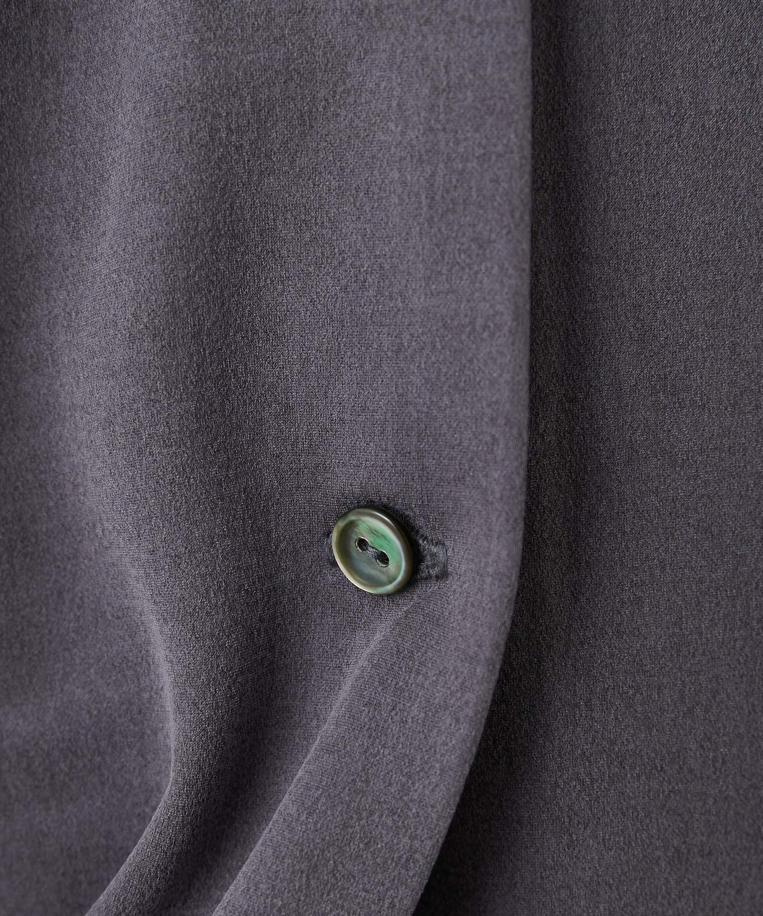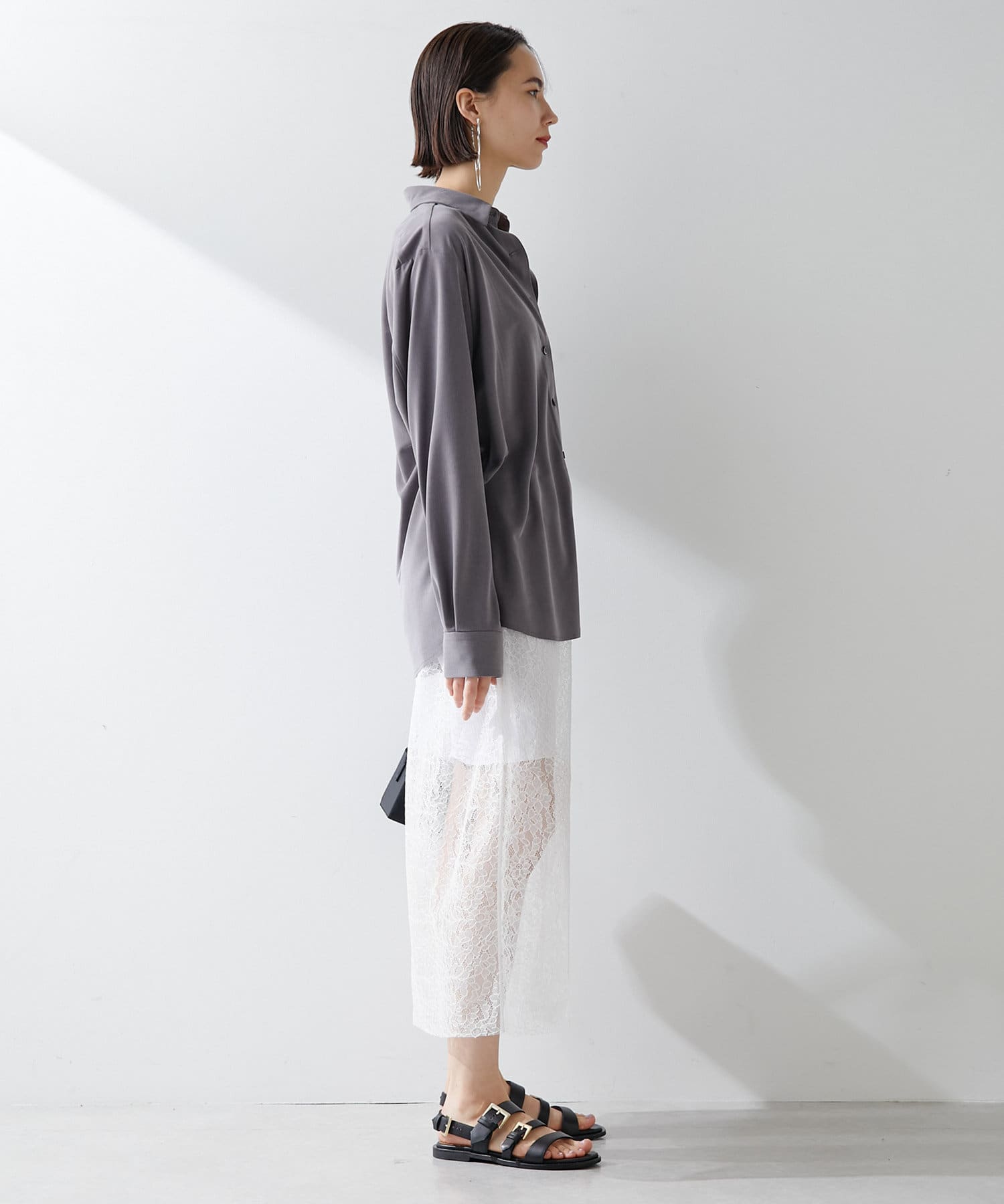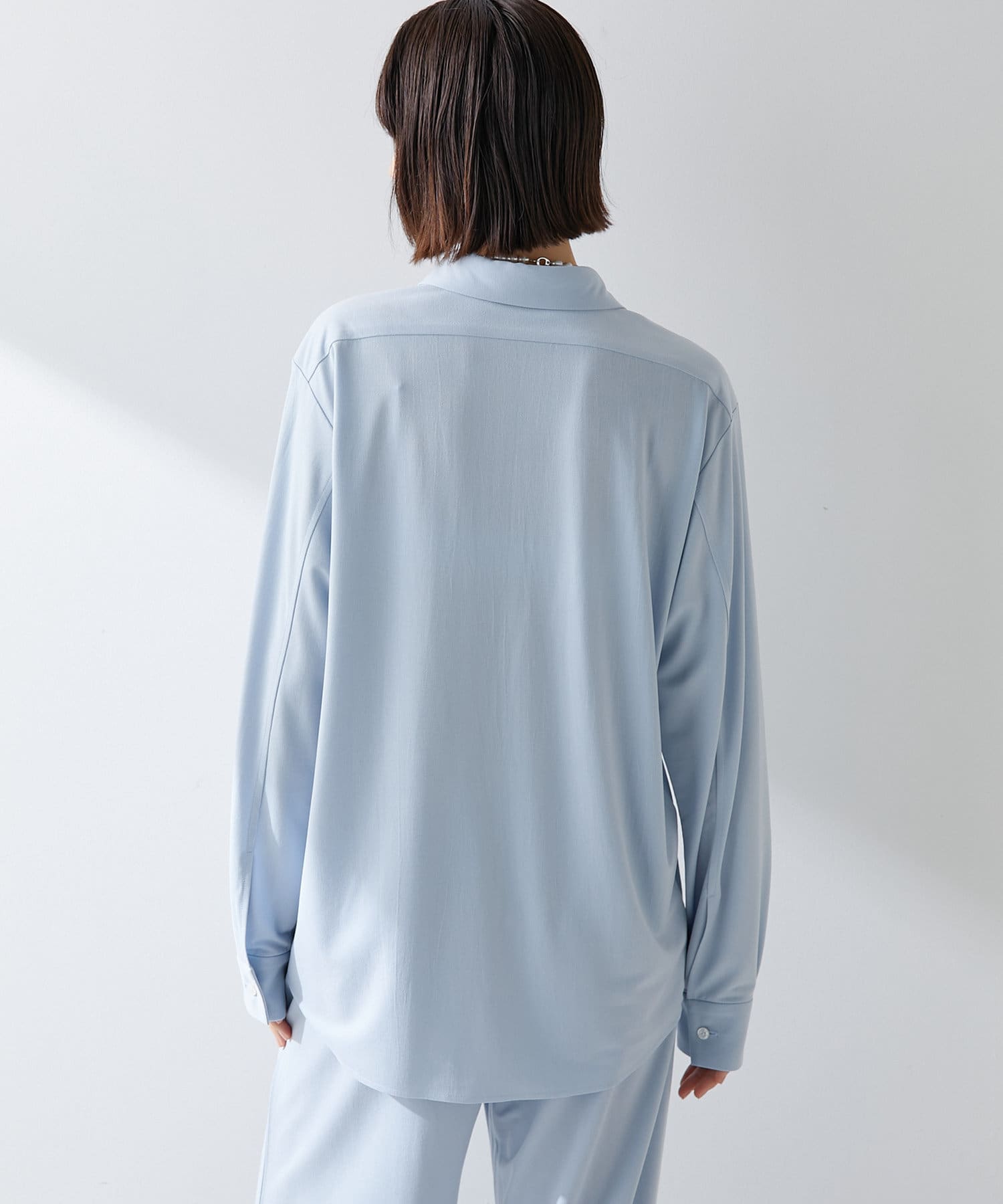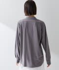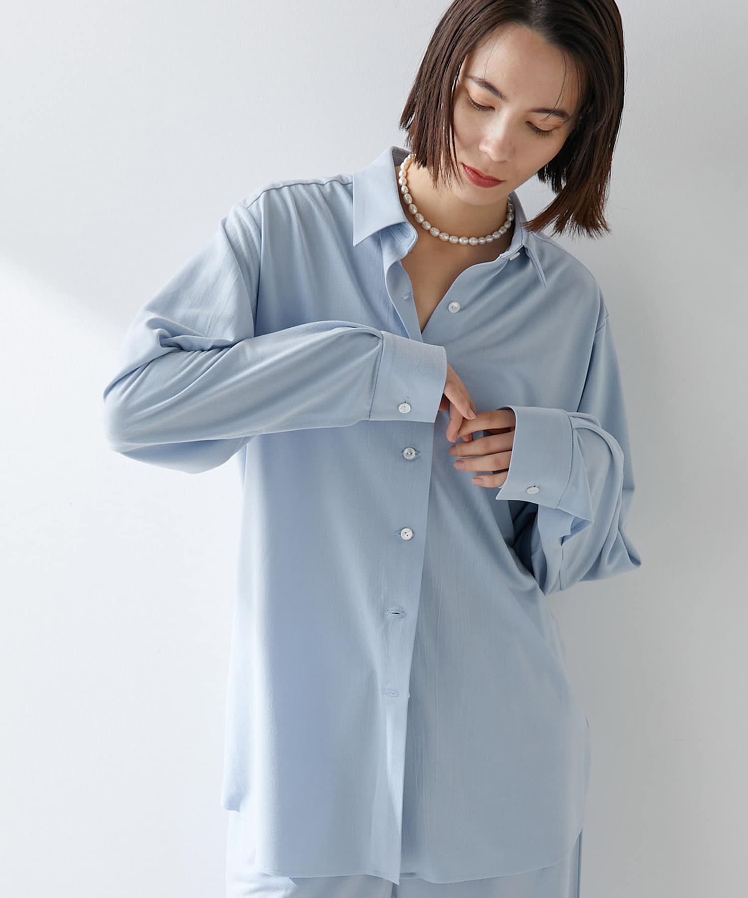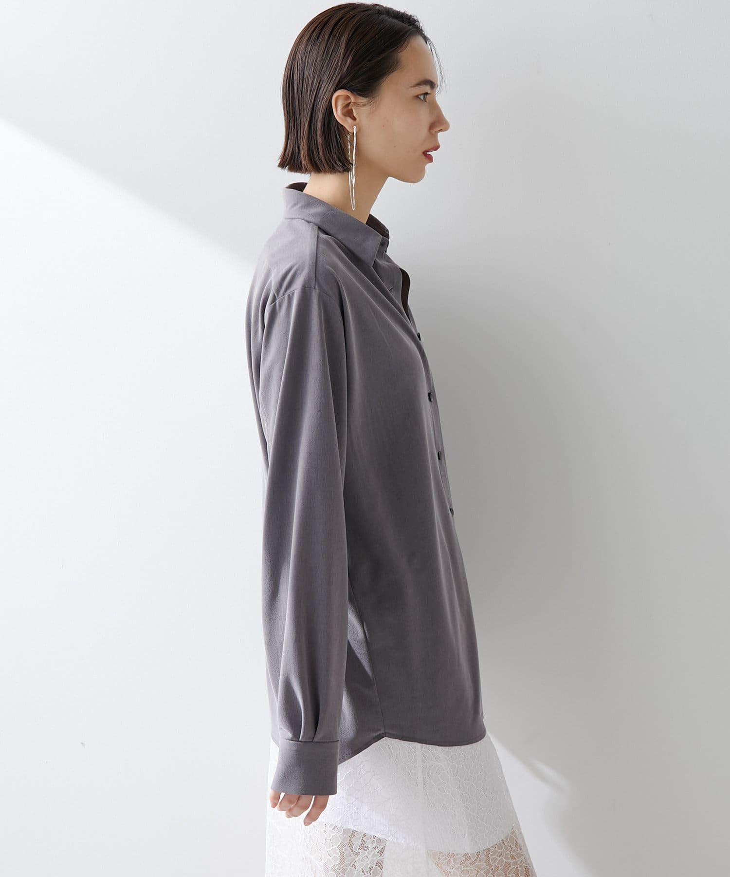 ゆったりとしたシルエットなのでキレイなドレープが出て女性らしいシャツです。袖の弛み感も素敵ですね。
