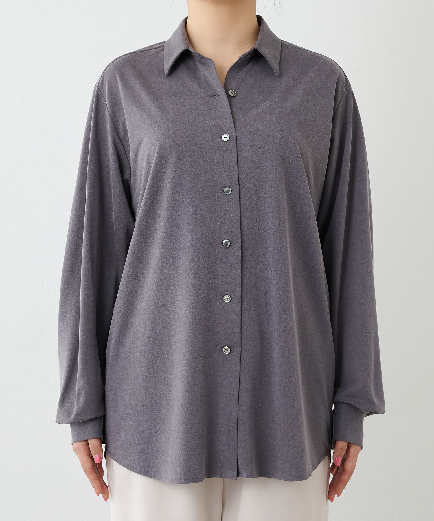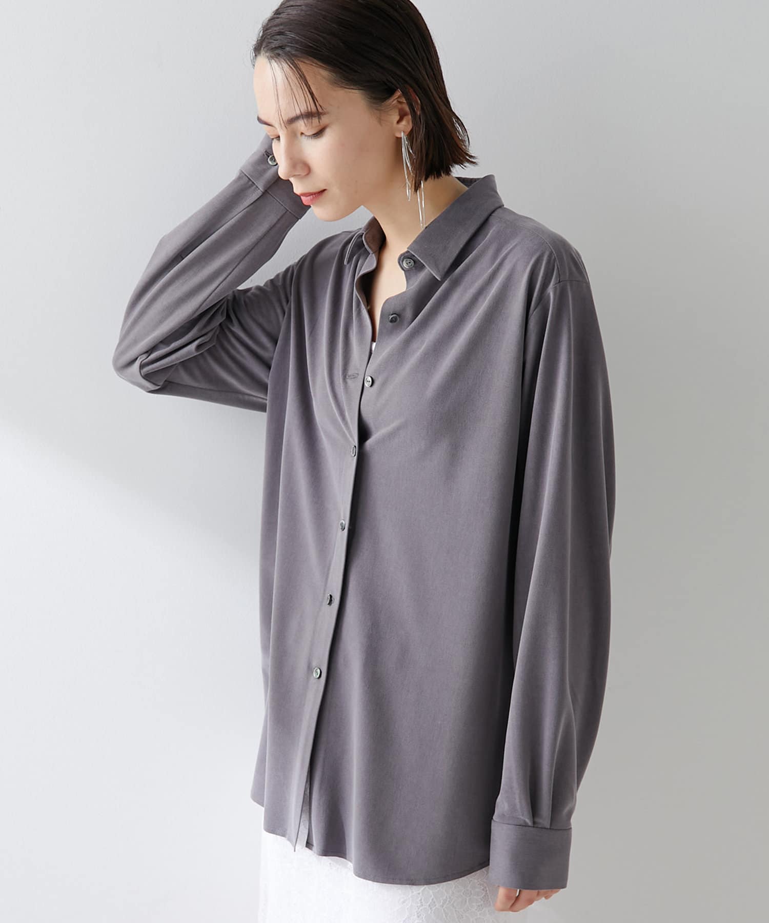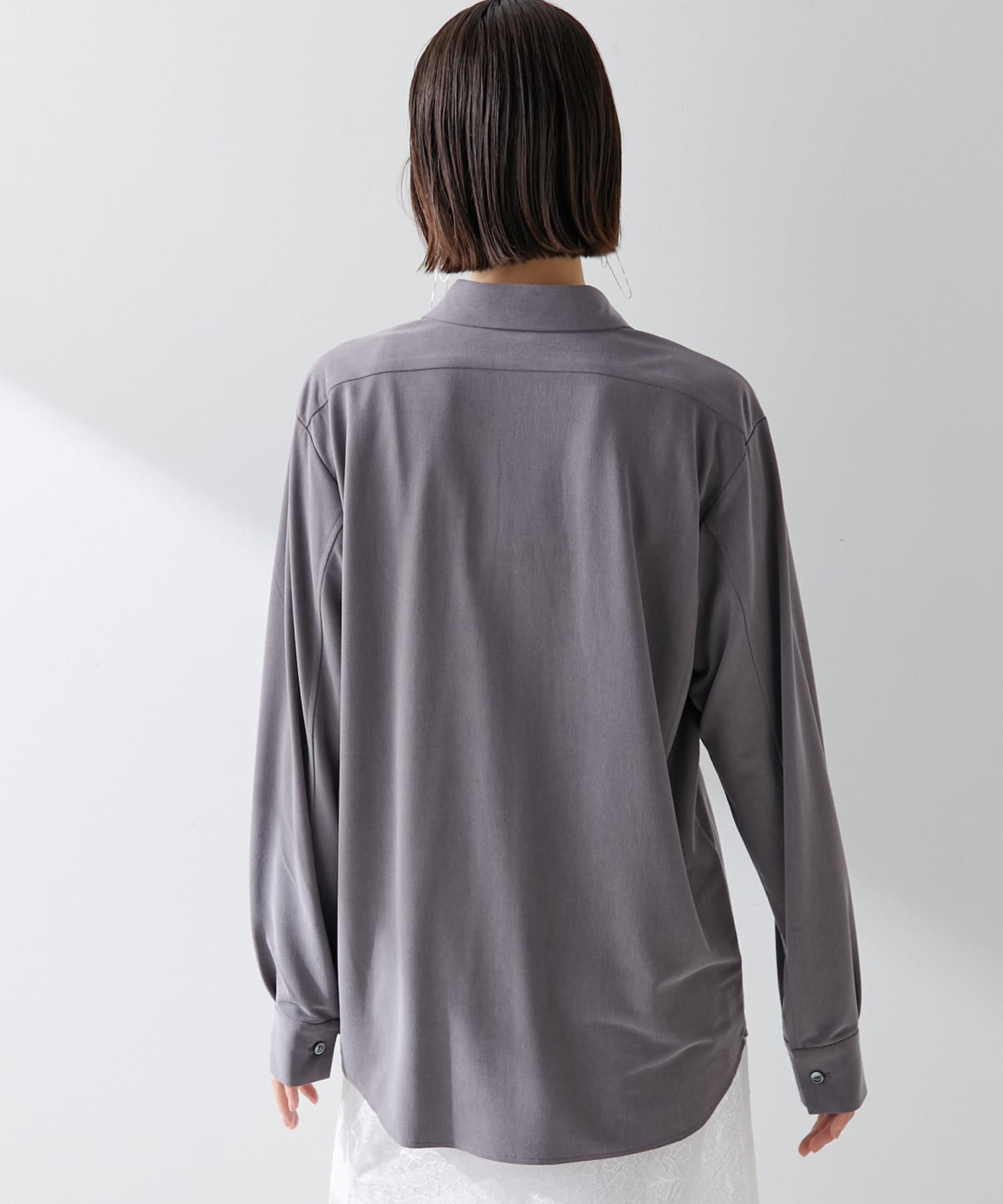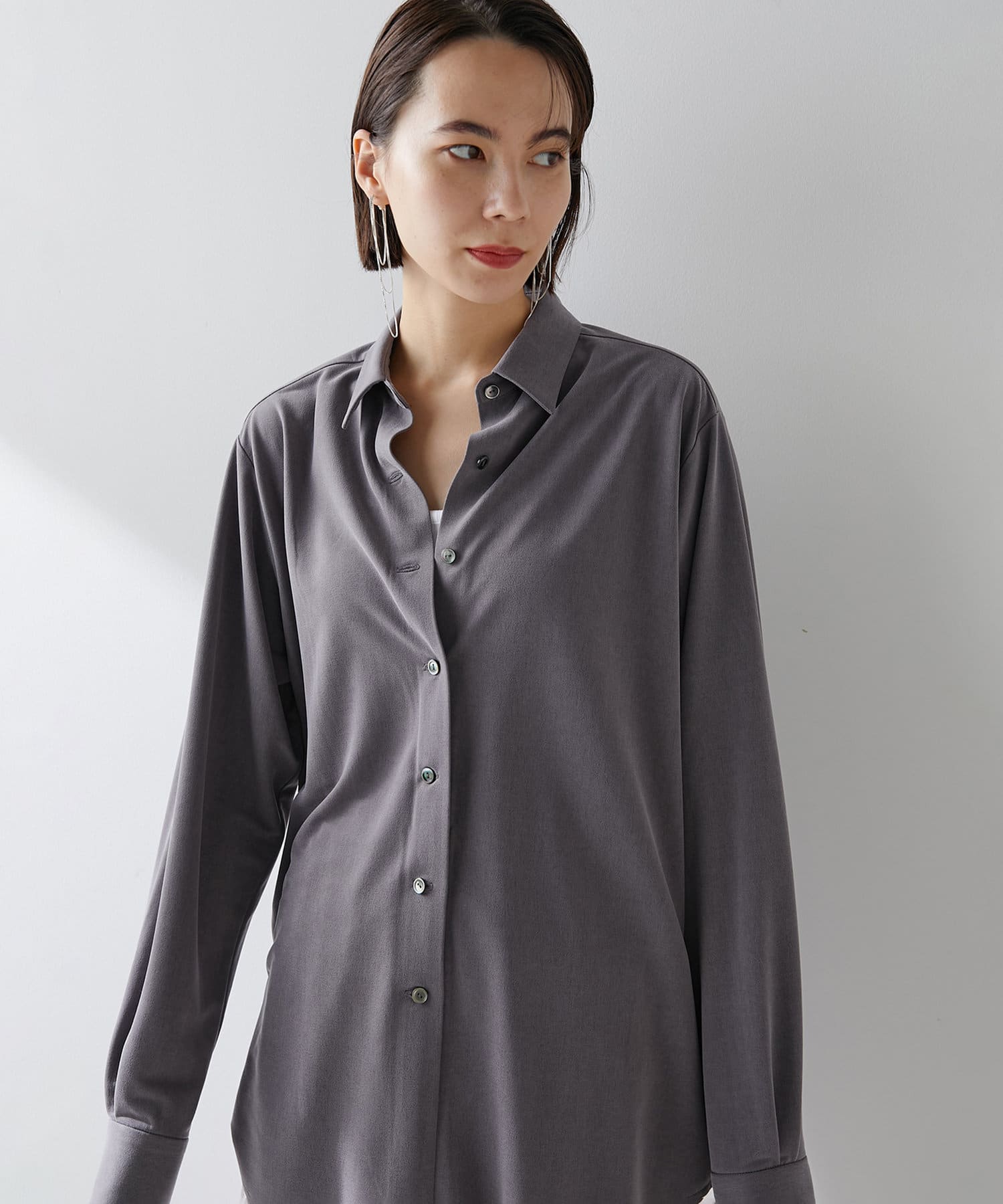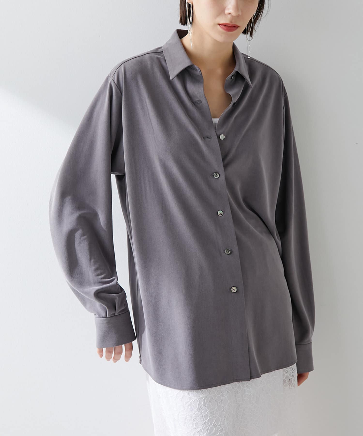 ■落ち感のあるカットソー素材を使用した長袖シャツ。