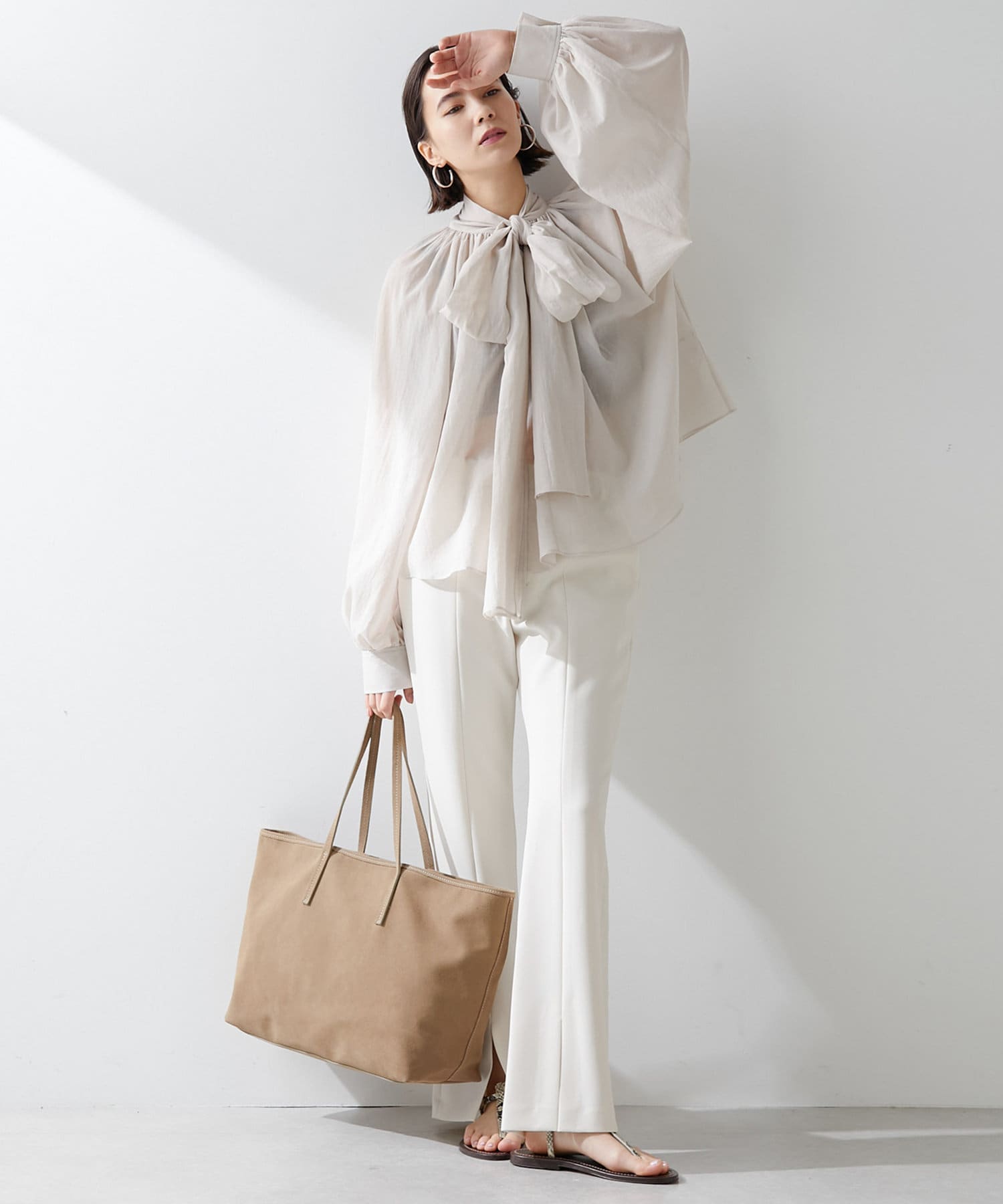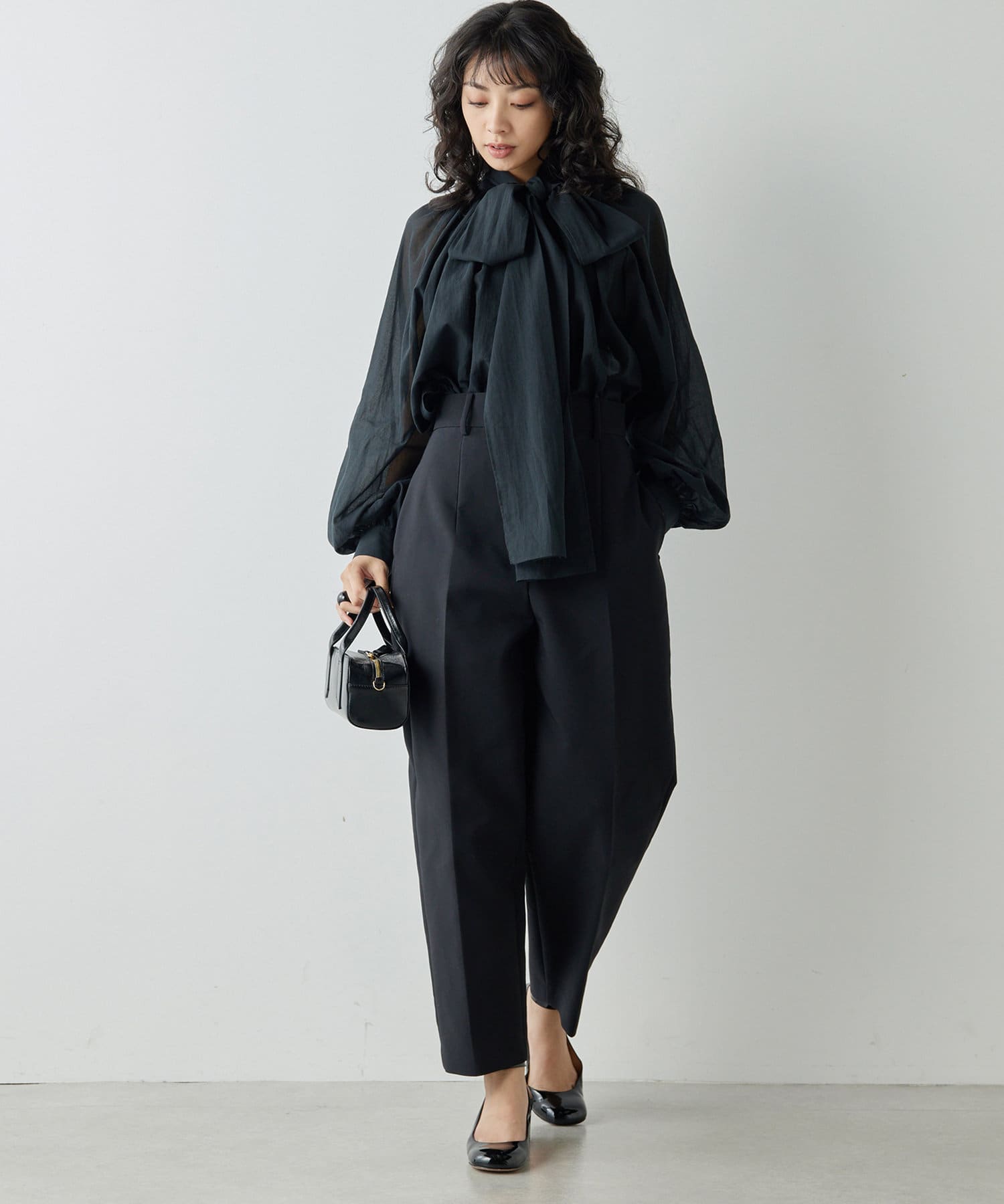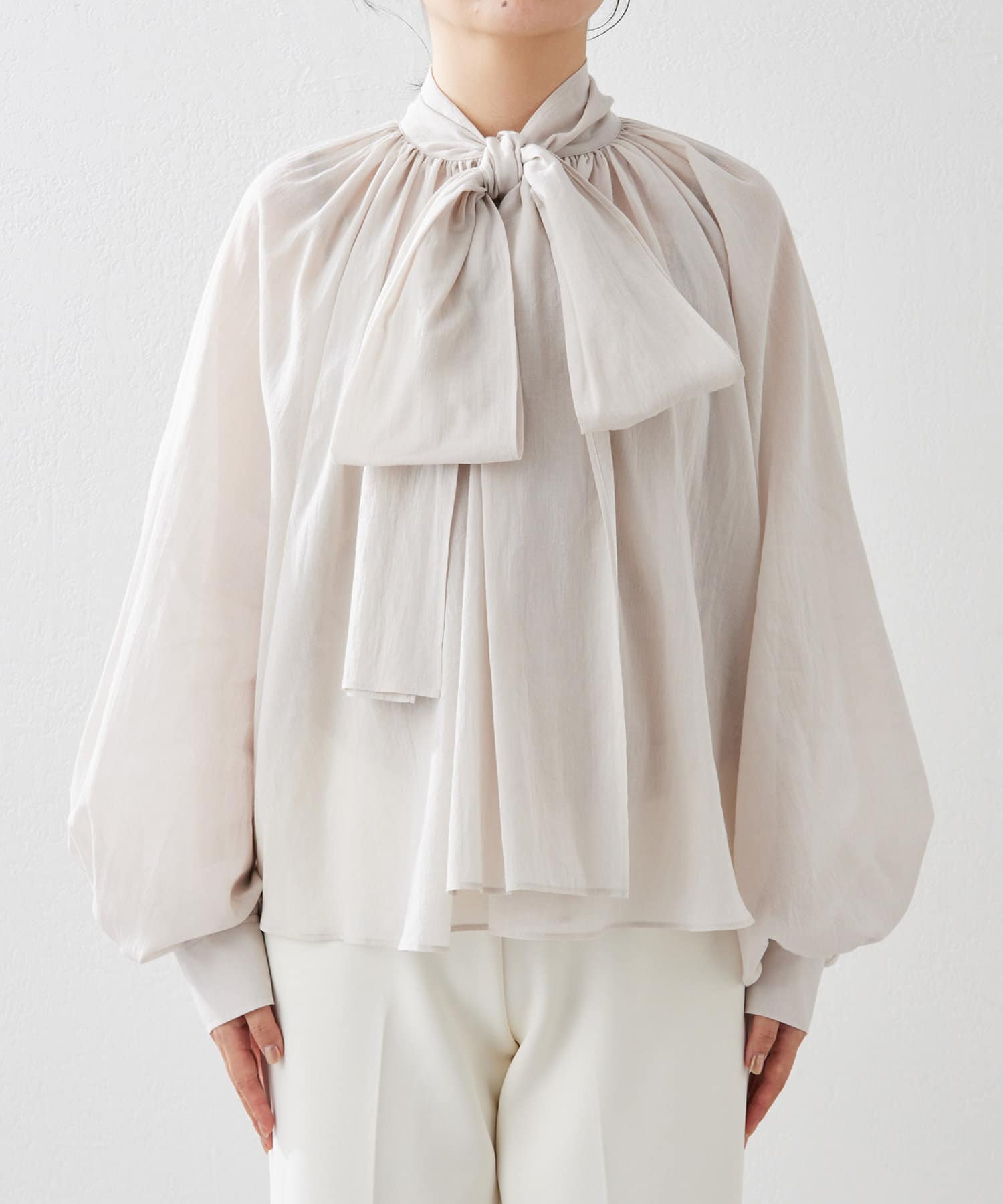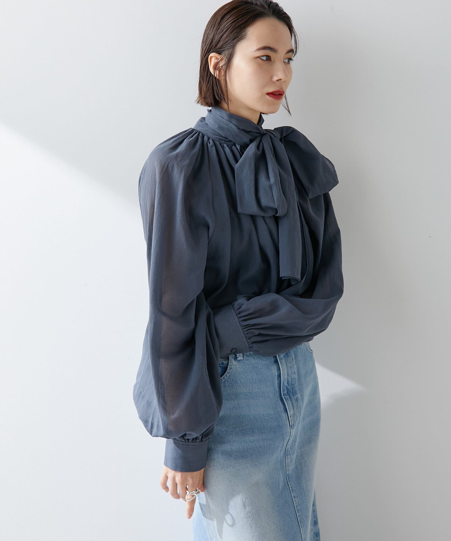 ■ほんのり透け感のある素材とボウタイのディテールが女性らしいブラウス。