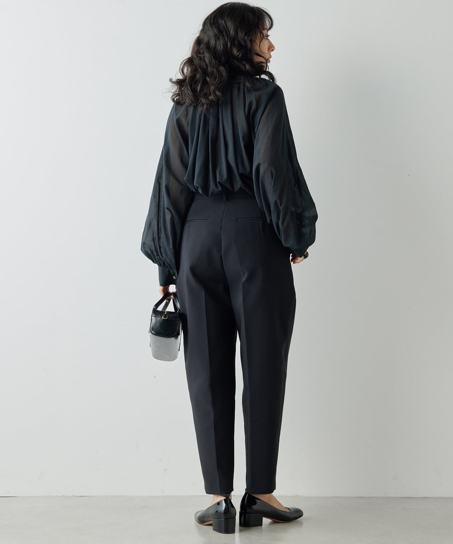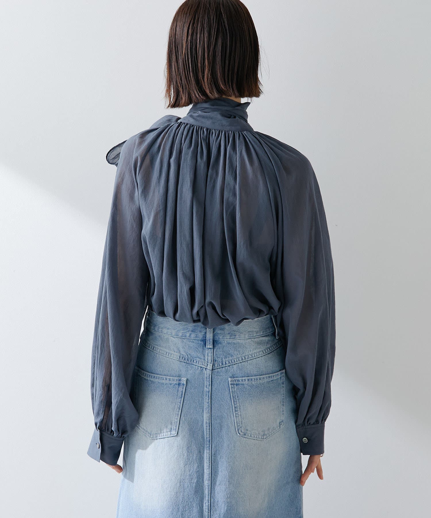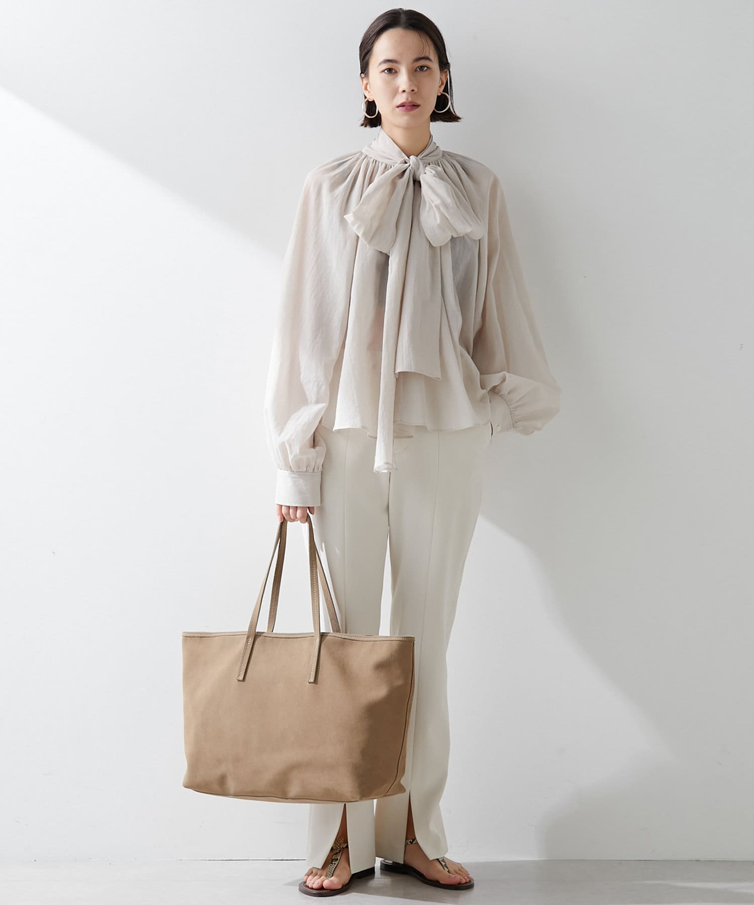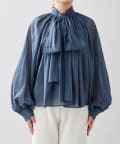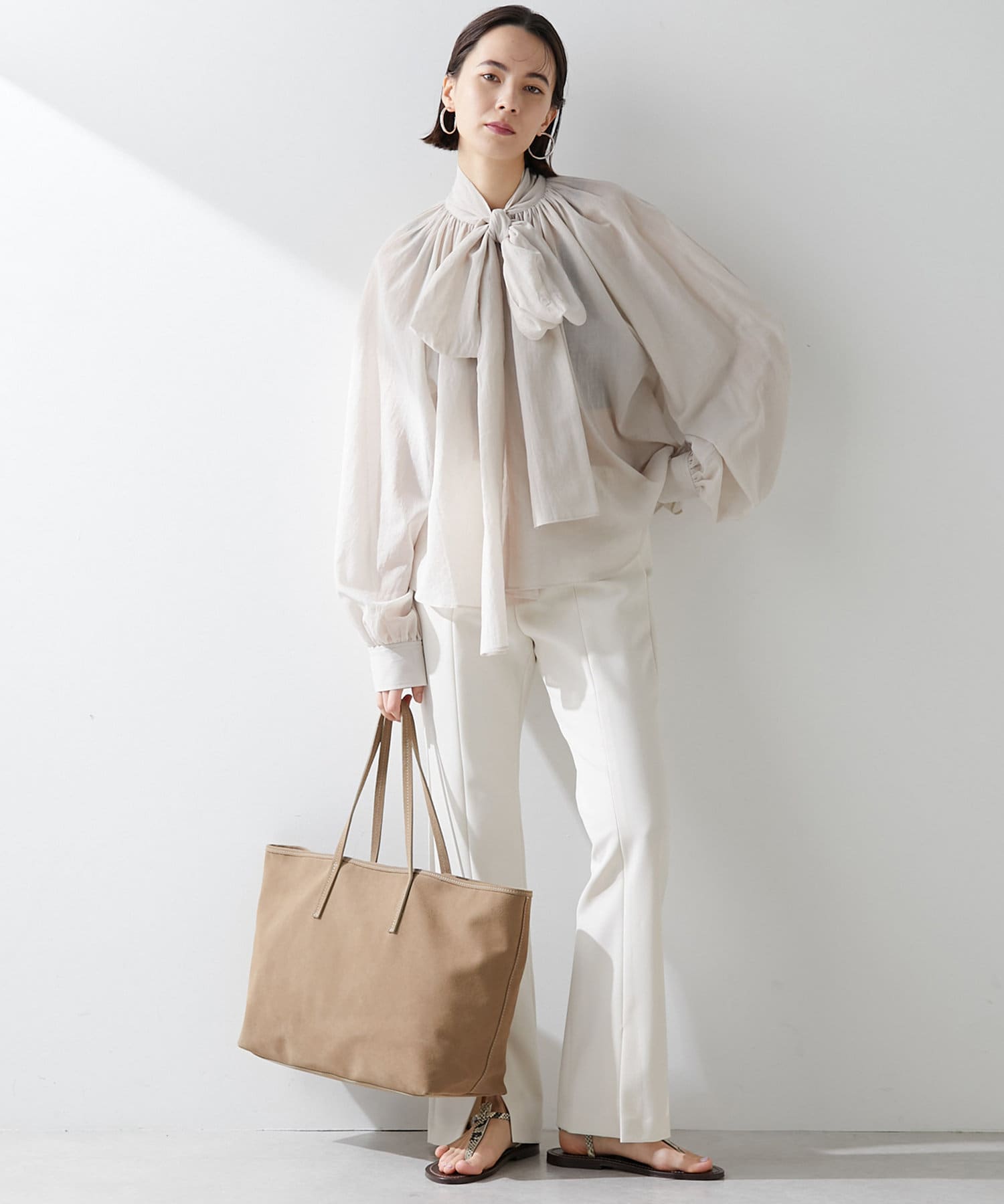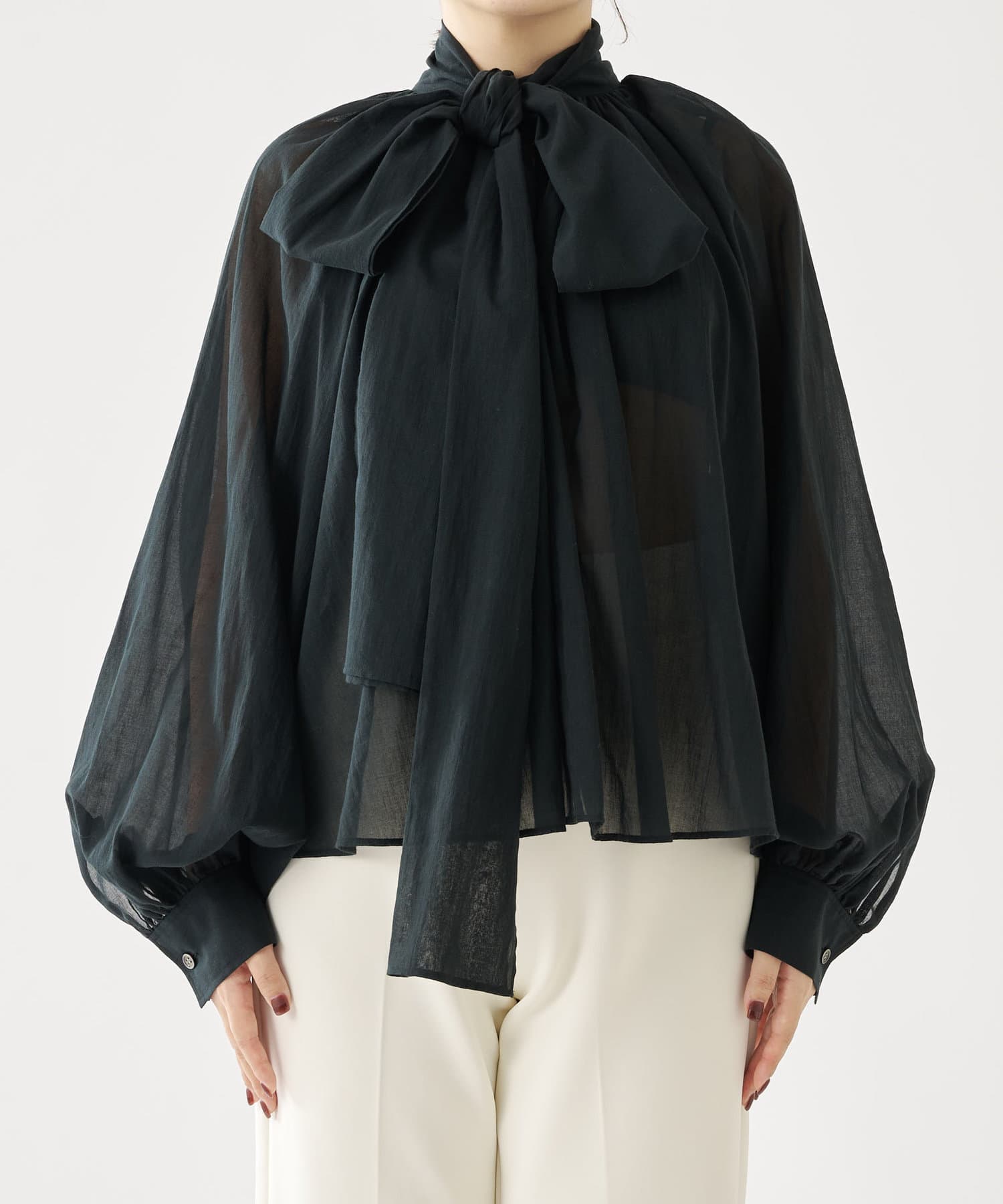 ■ほんのり透け感のある素材とボウタイのディテールが女性らしいブラウス。