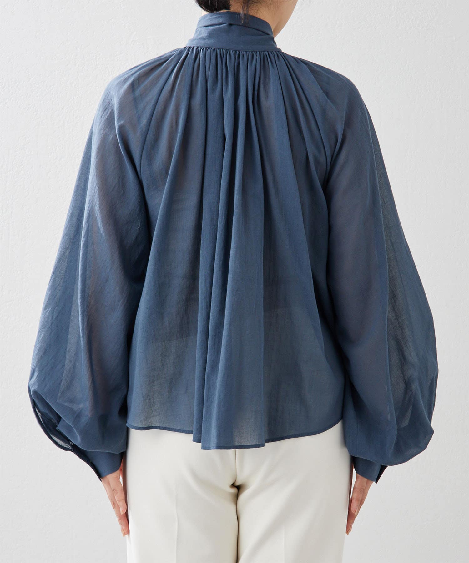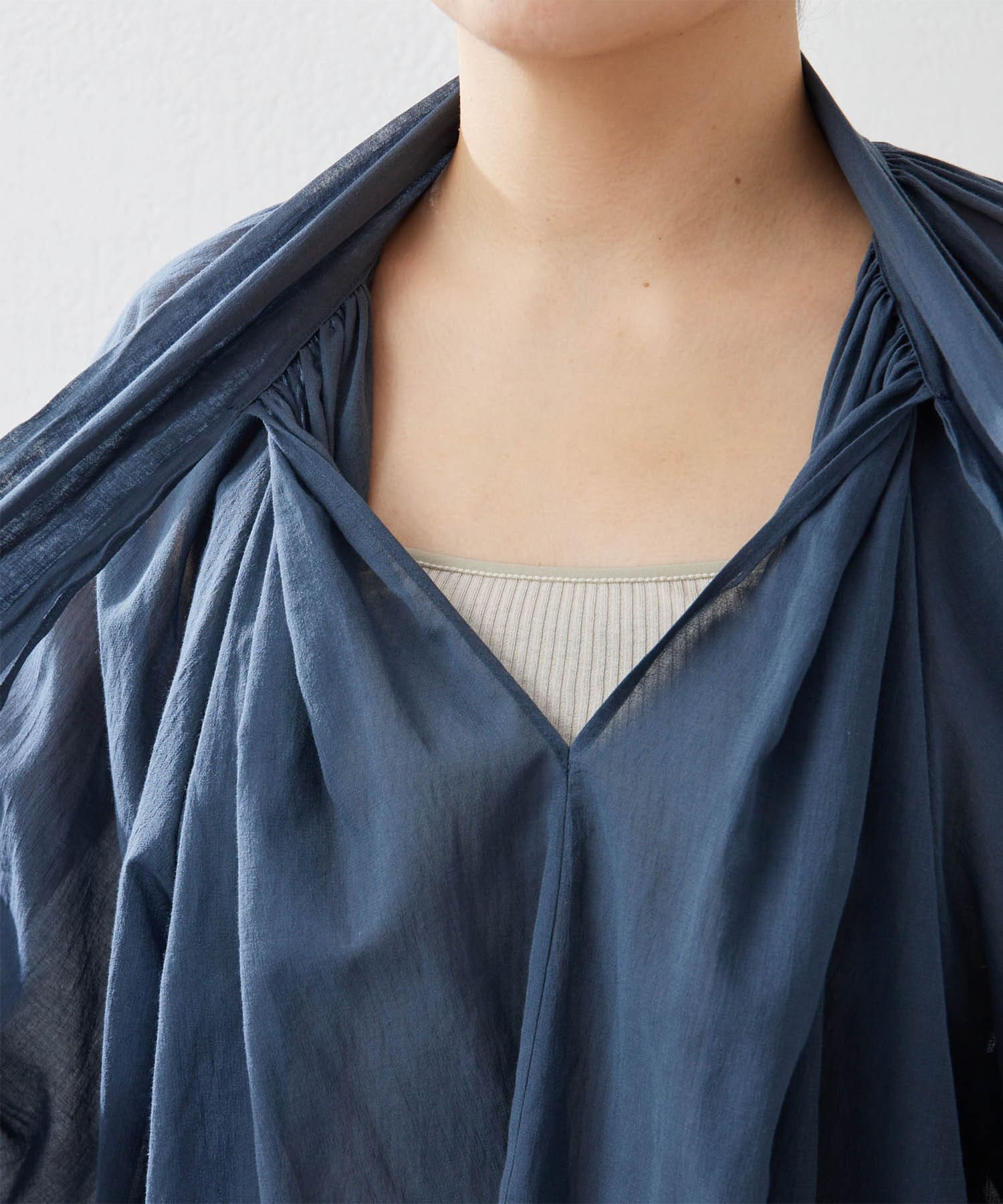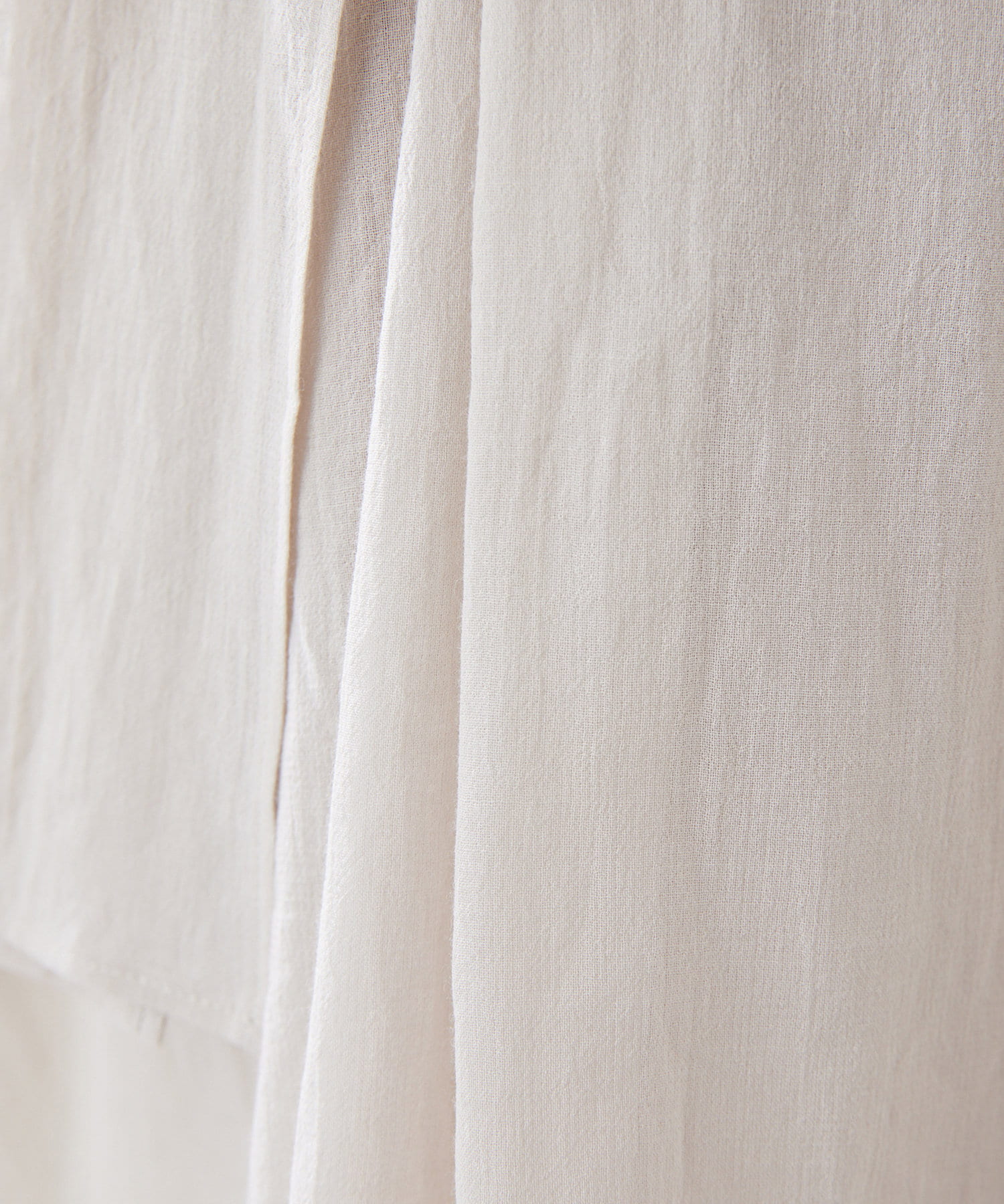 ■綿100%のローン素材を使用し、ふんわりと膨らみ感のある表情に仕上げた一枚。
