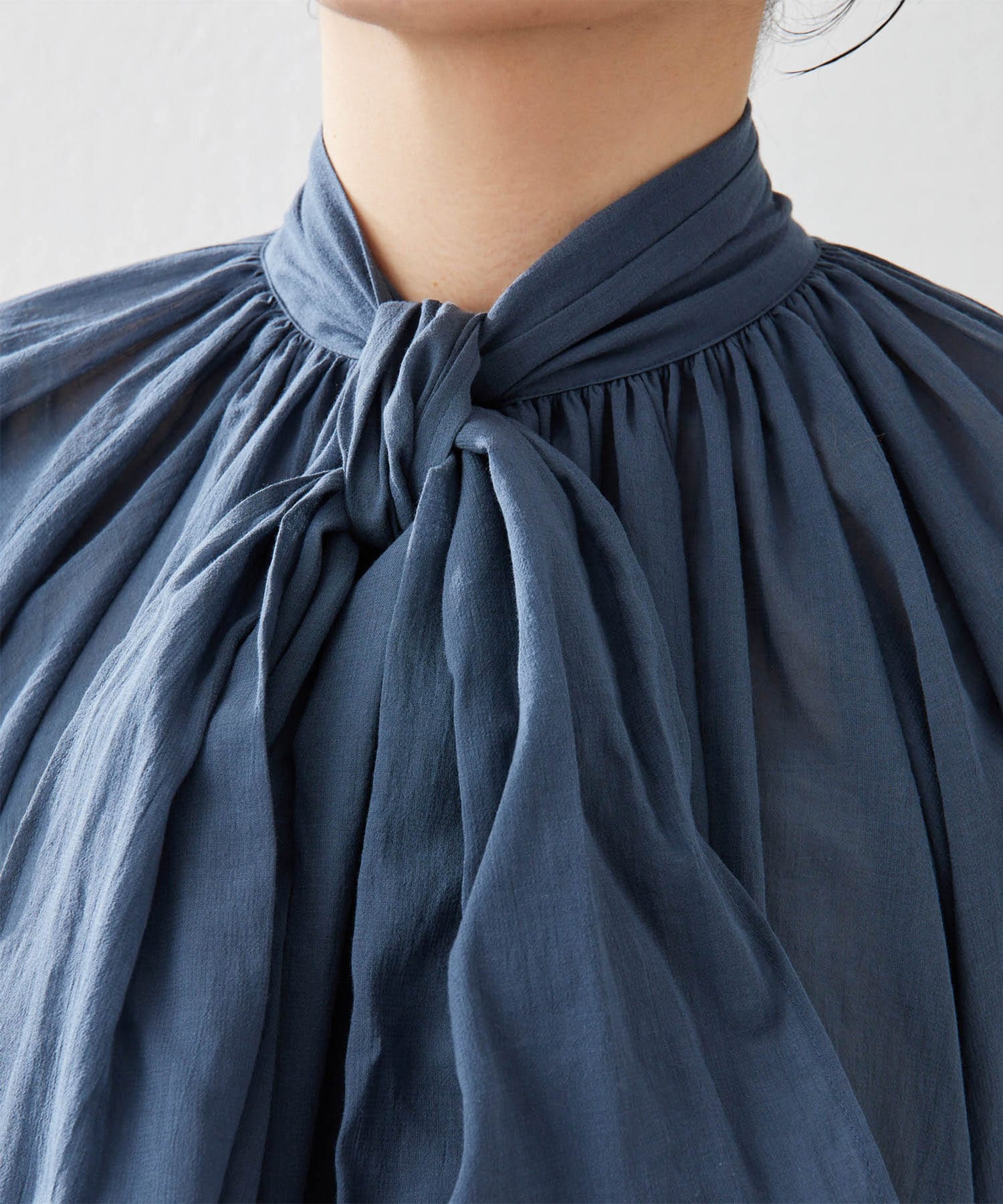 ■ボウタイはリボン結びにしたり、後ろでラフに結んでハイネックブラウスのように着たりと様々な表情にアレンジ可能。