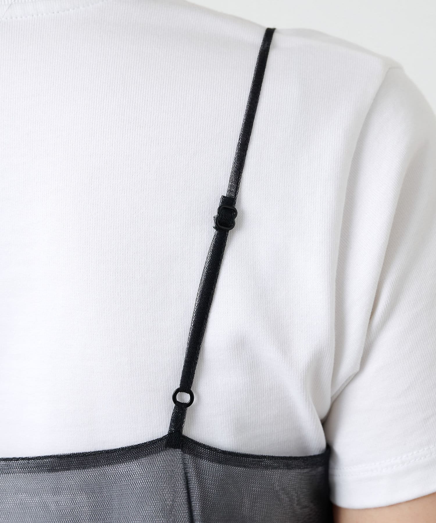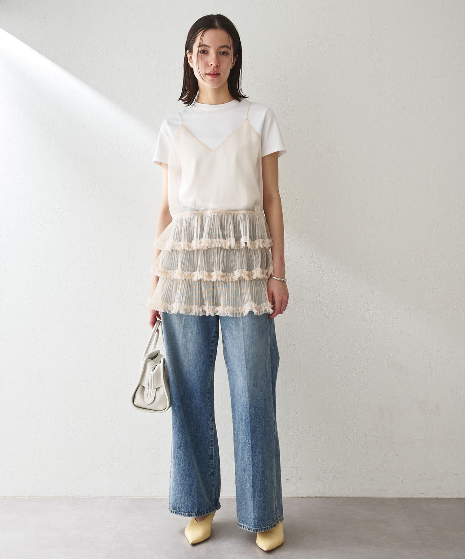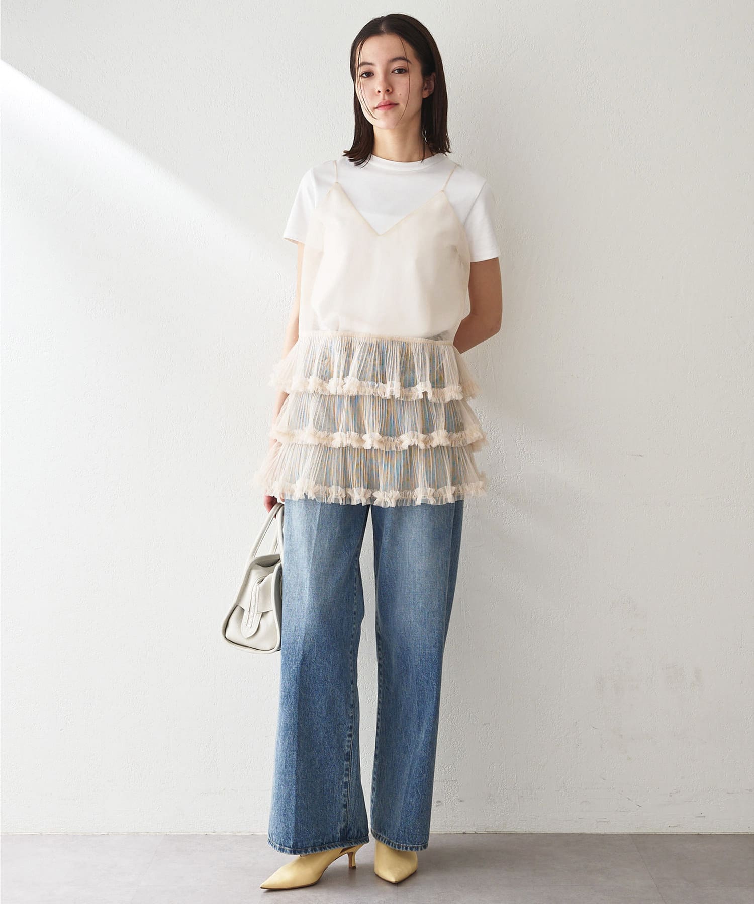■フランスのインポート生地が印象的なティアードチュールキャミソール。