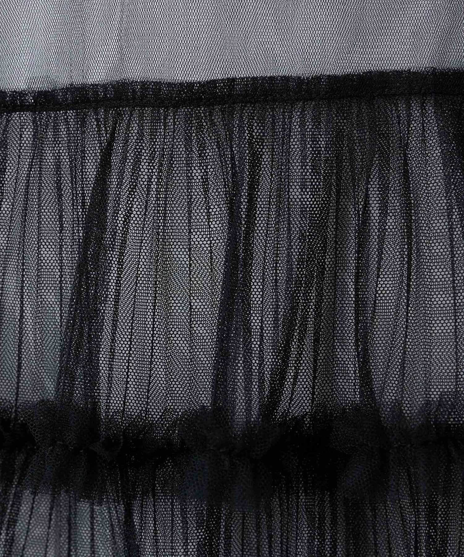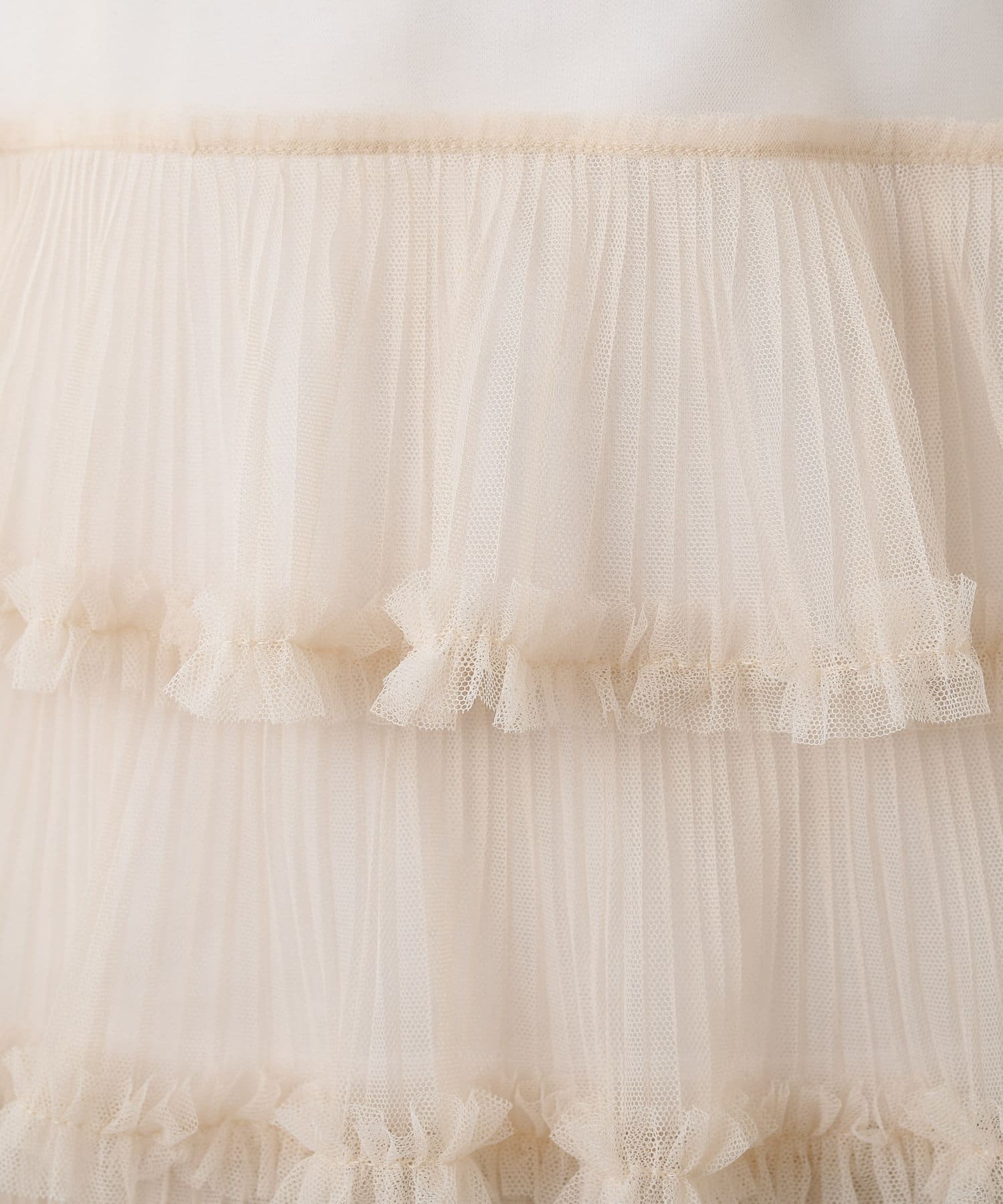 ■細かいプリーツとフリルが施されたチュール生地のティアードがポイント。