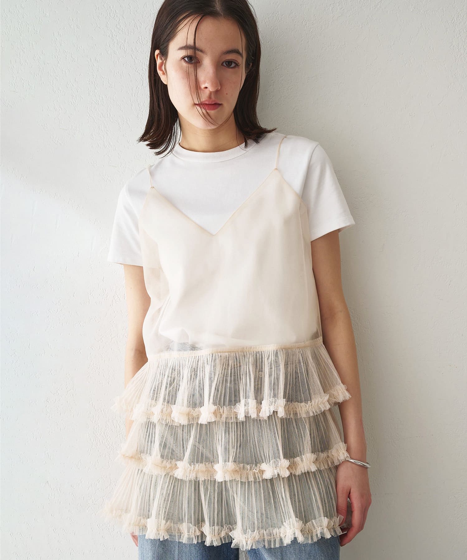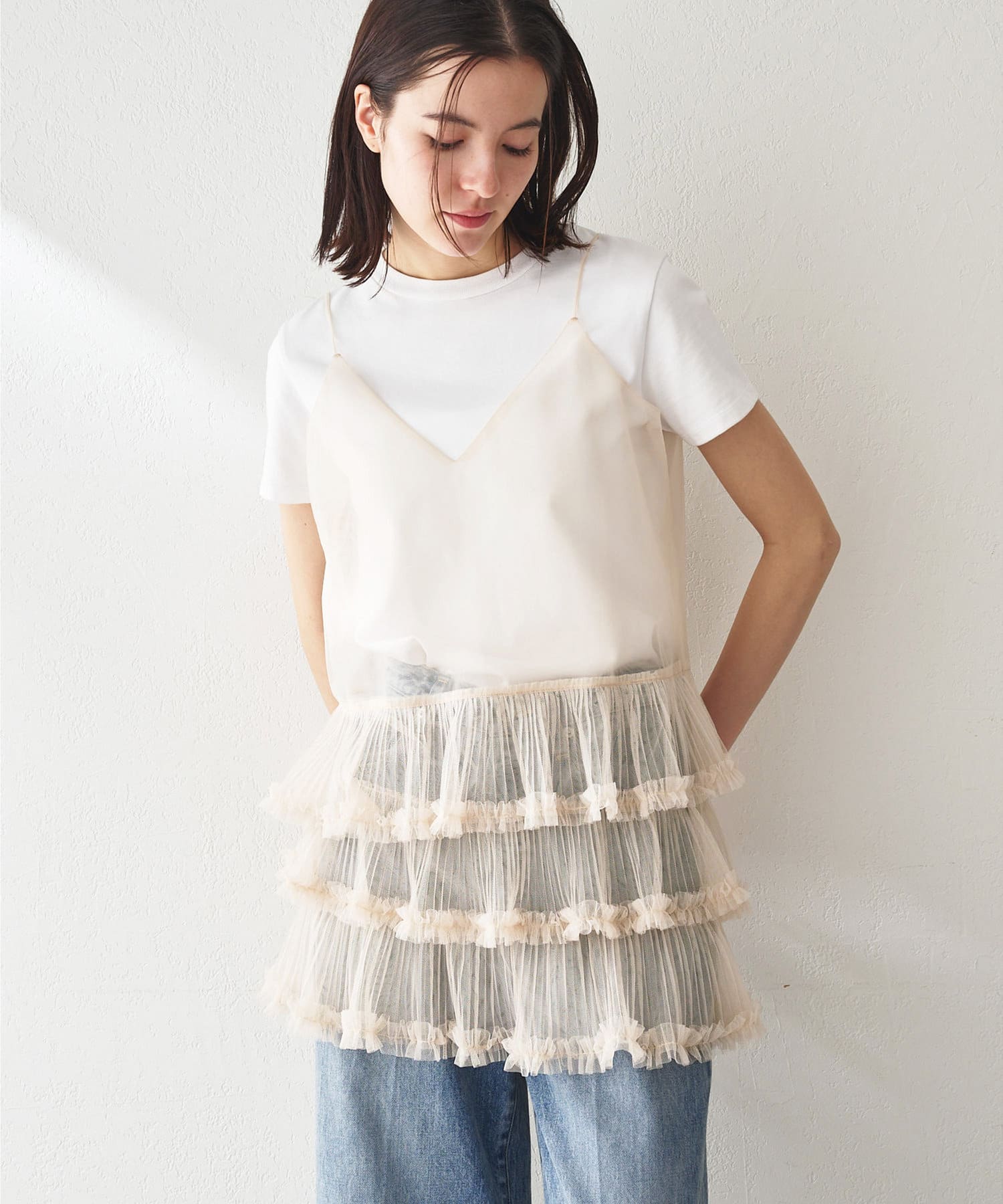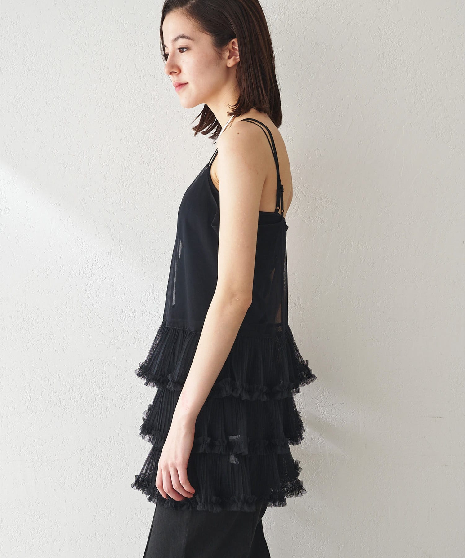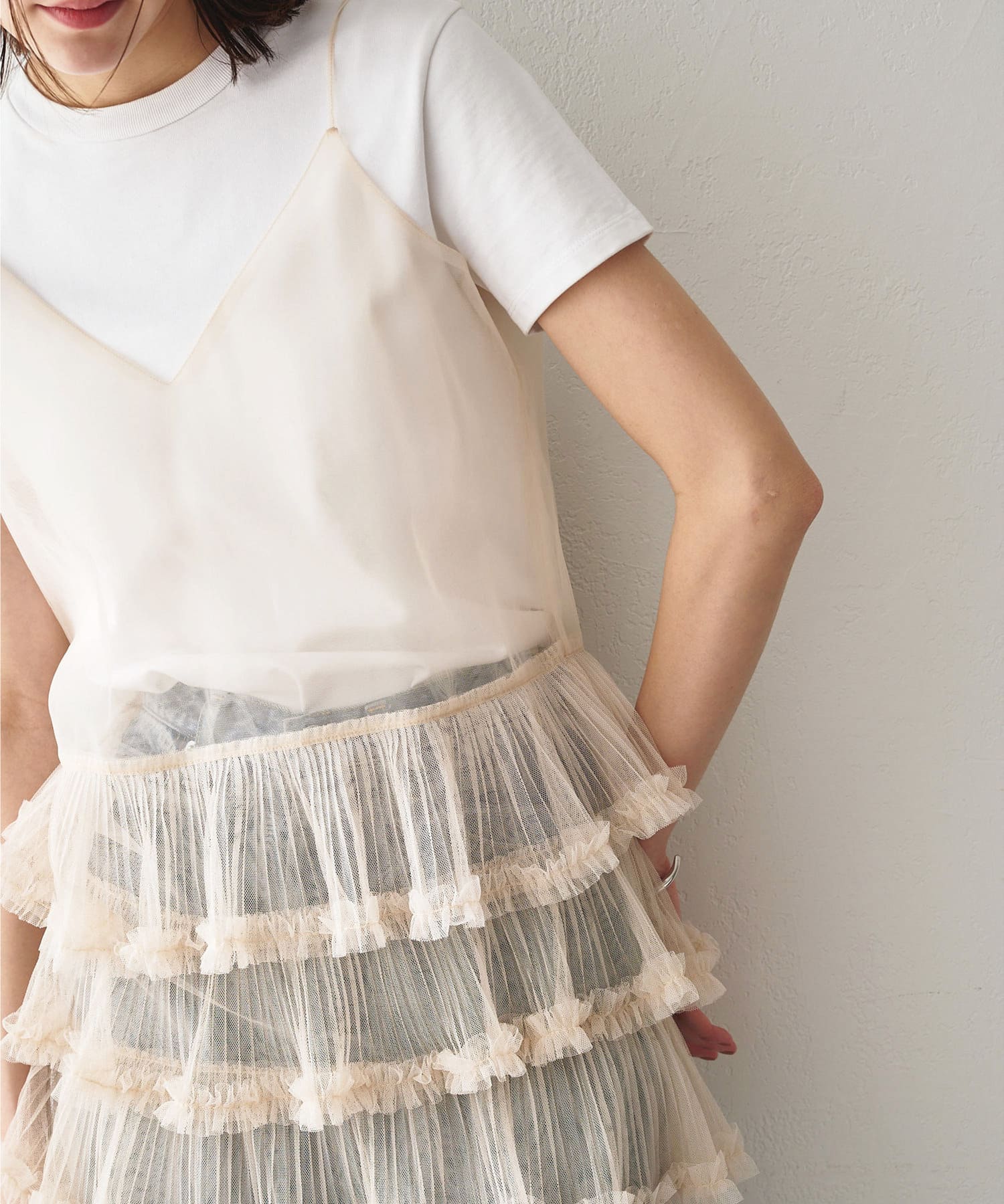 贅沢なティアードシルエットで着映えるチュールキャミ