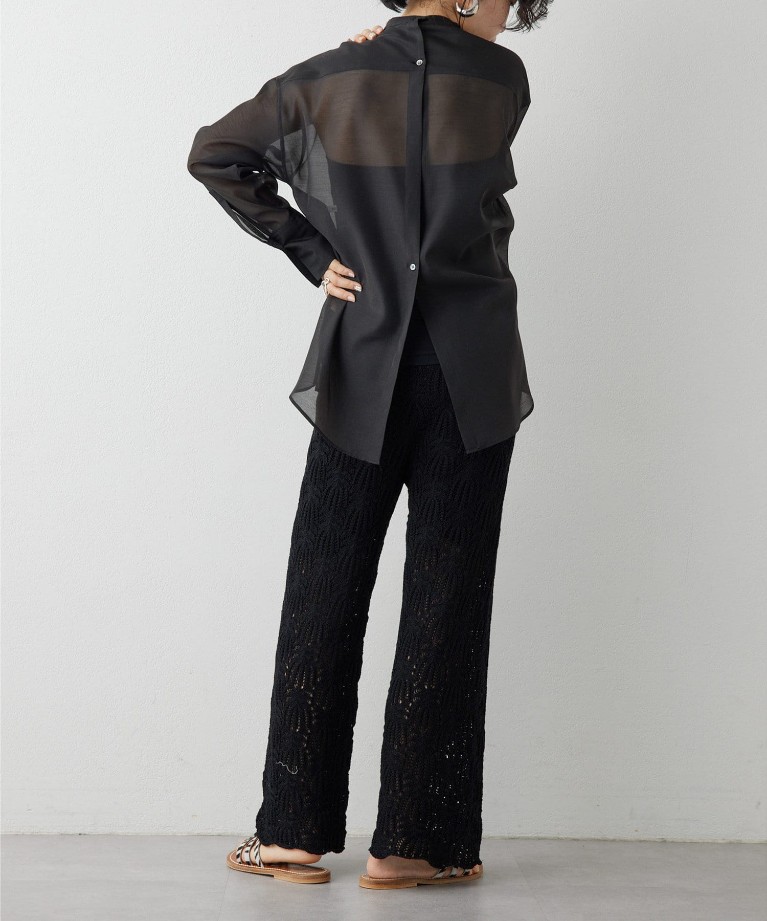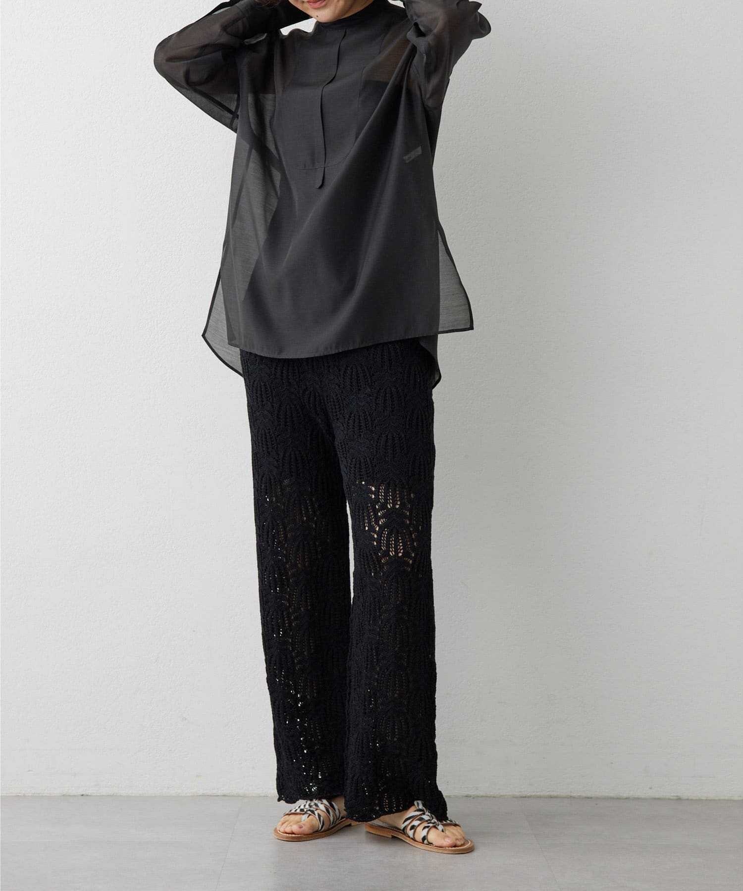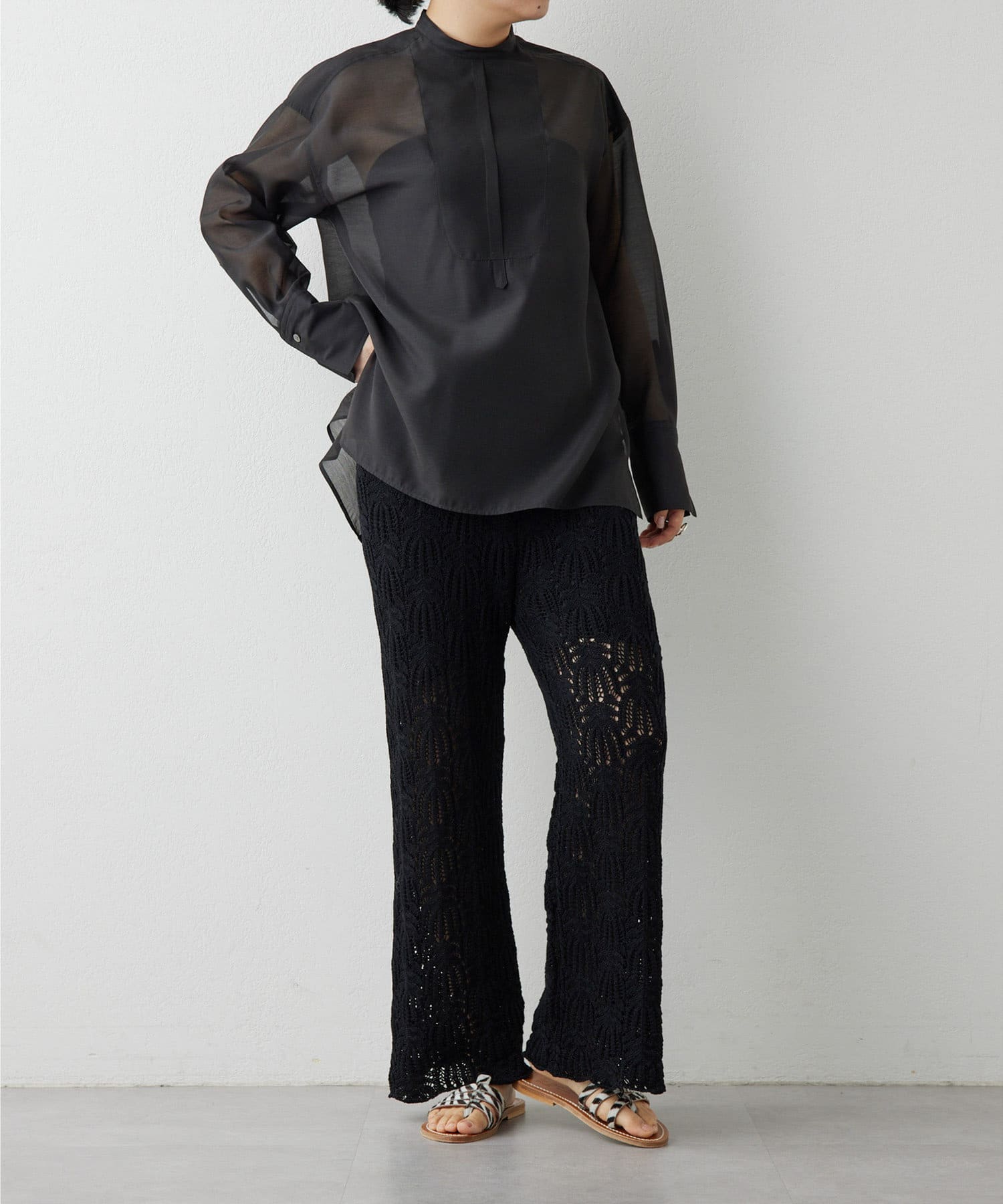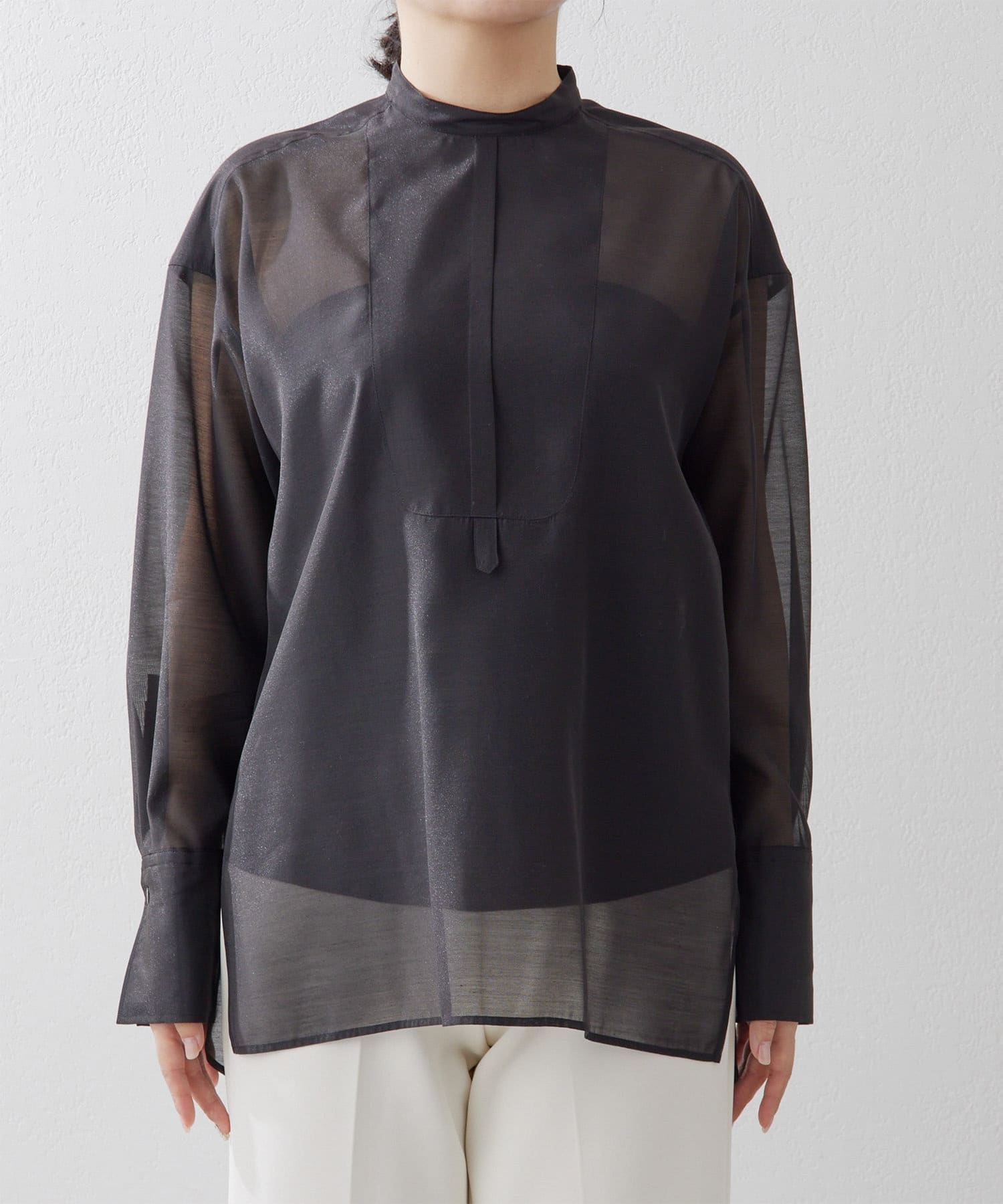 コーディネートがクリーンに仕上がるシアーなブラウス