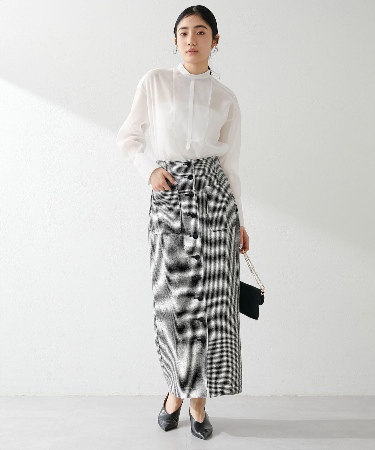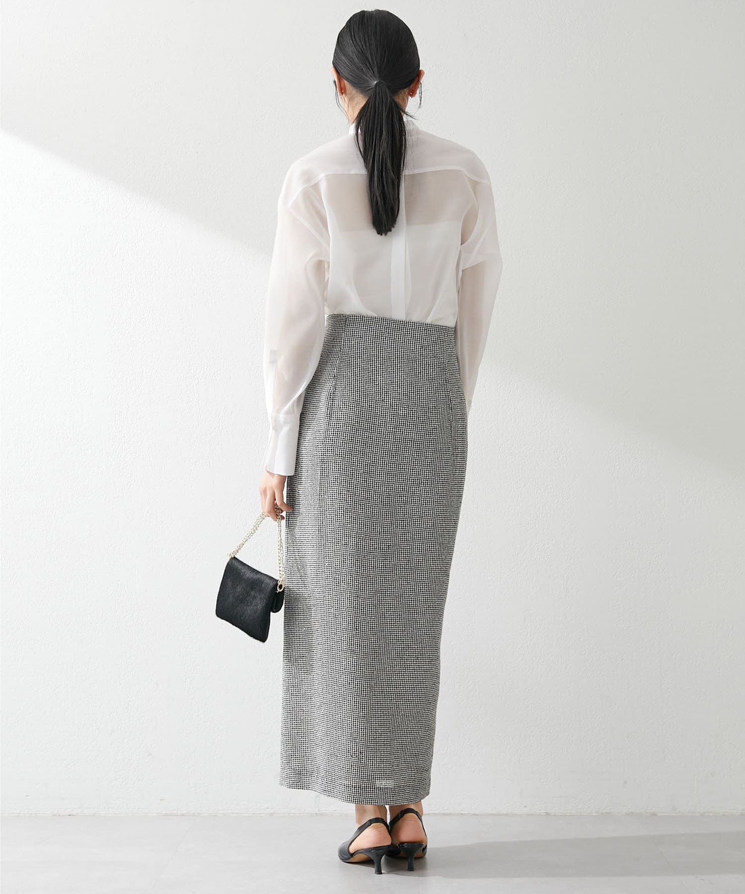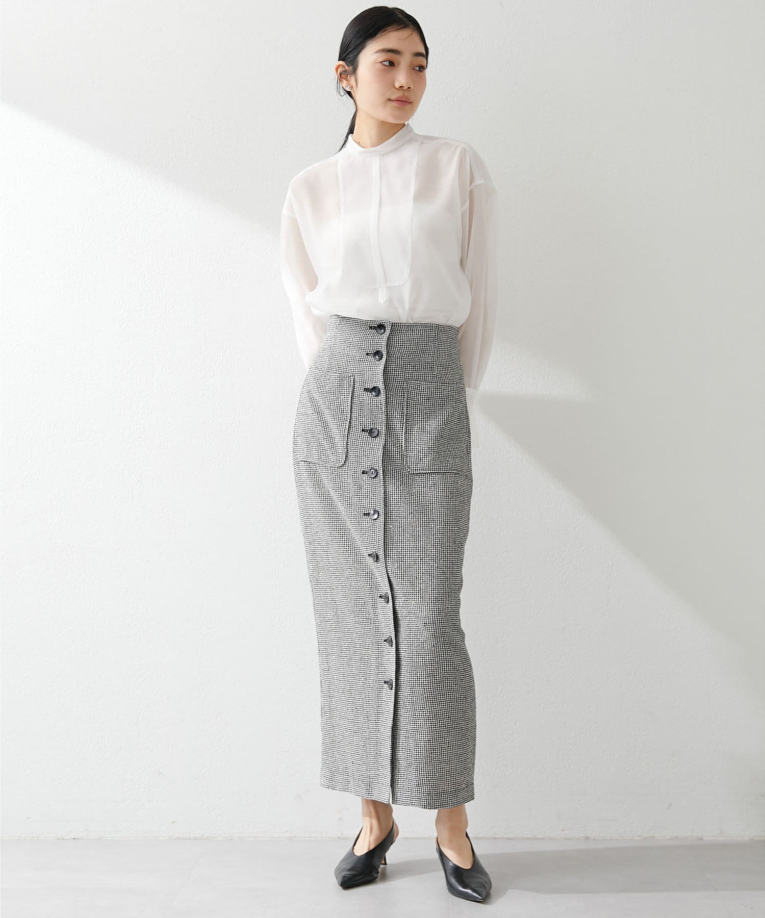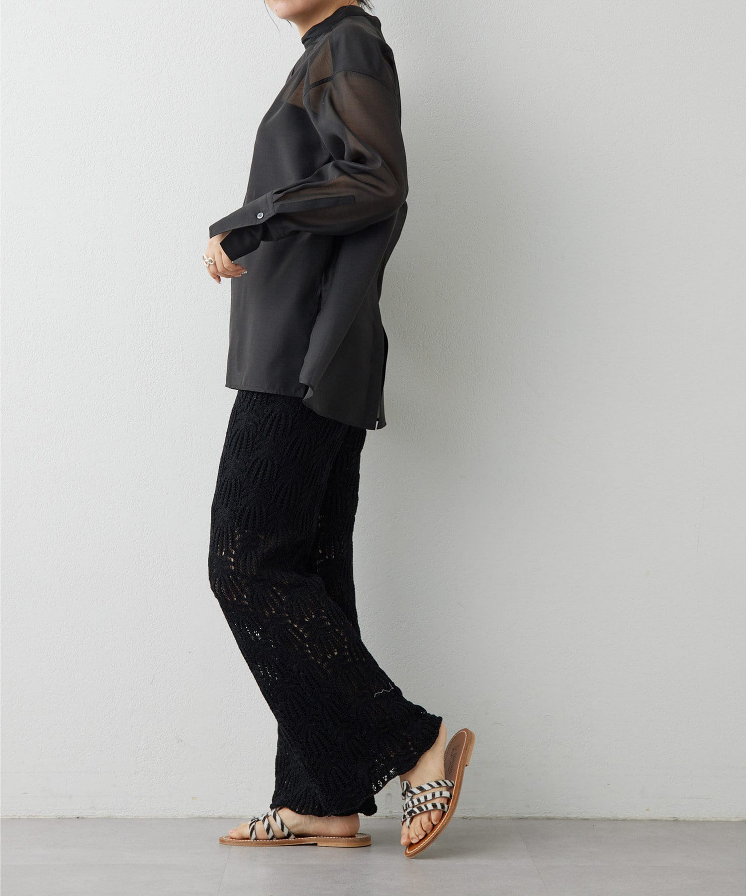 コーディネートがクリーンに仕上がるシアーなブラウス