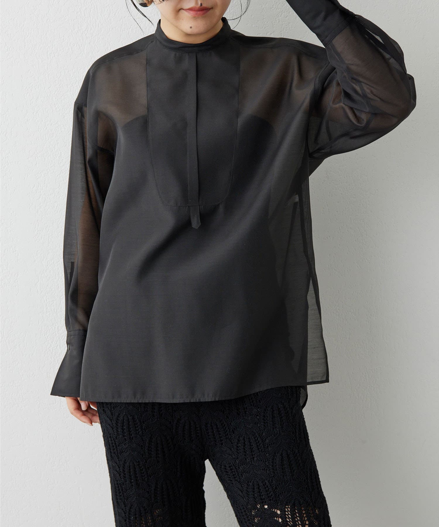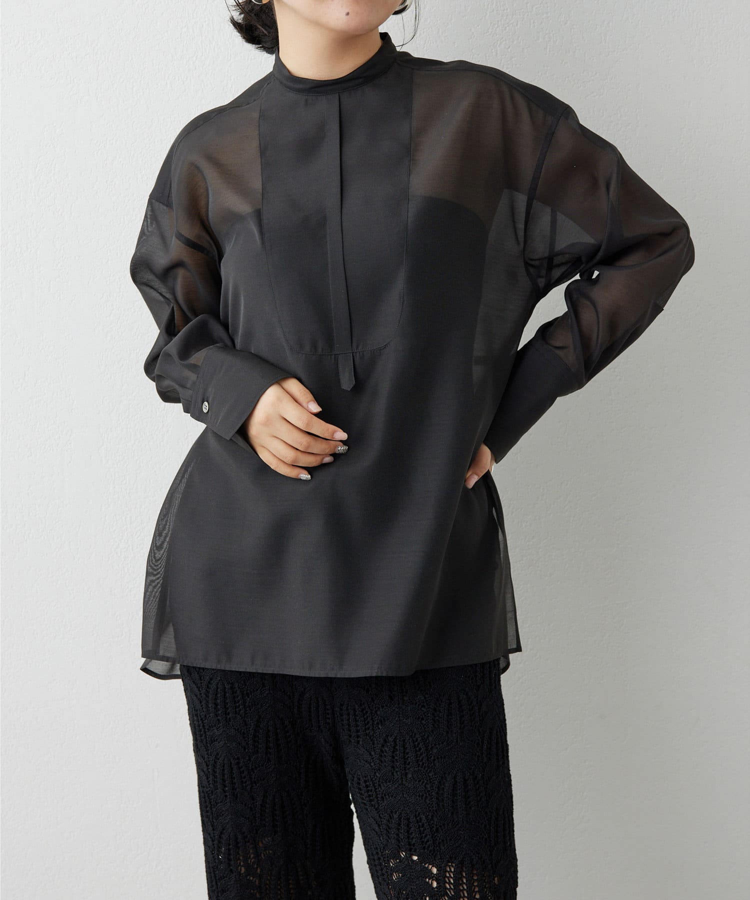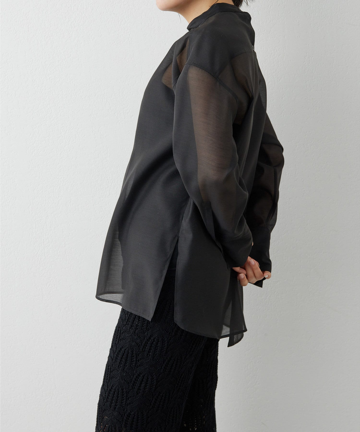 ■上品な透け感が大人な表情のオーガンジーシャツ。