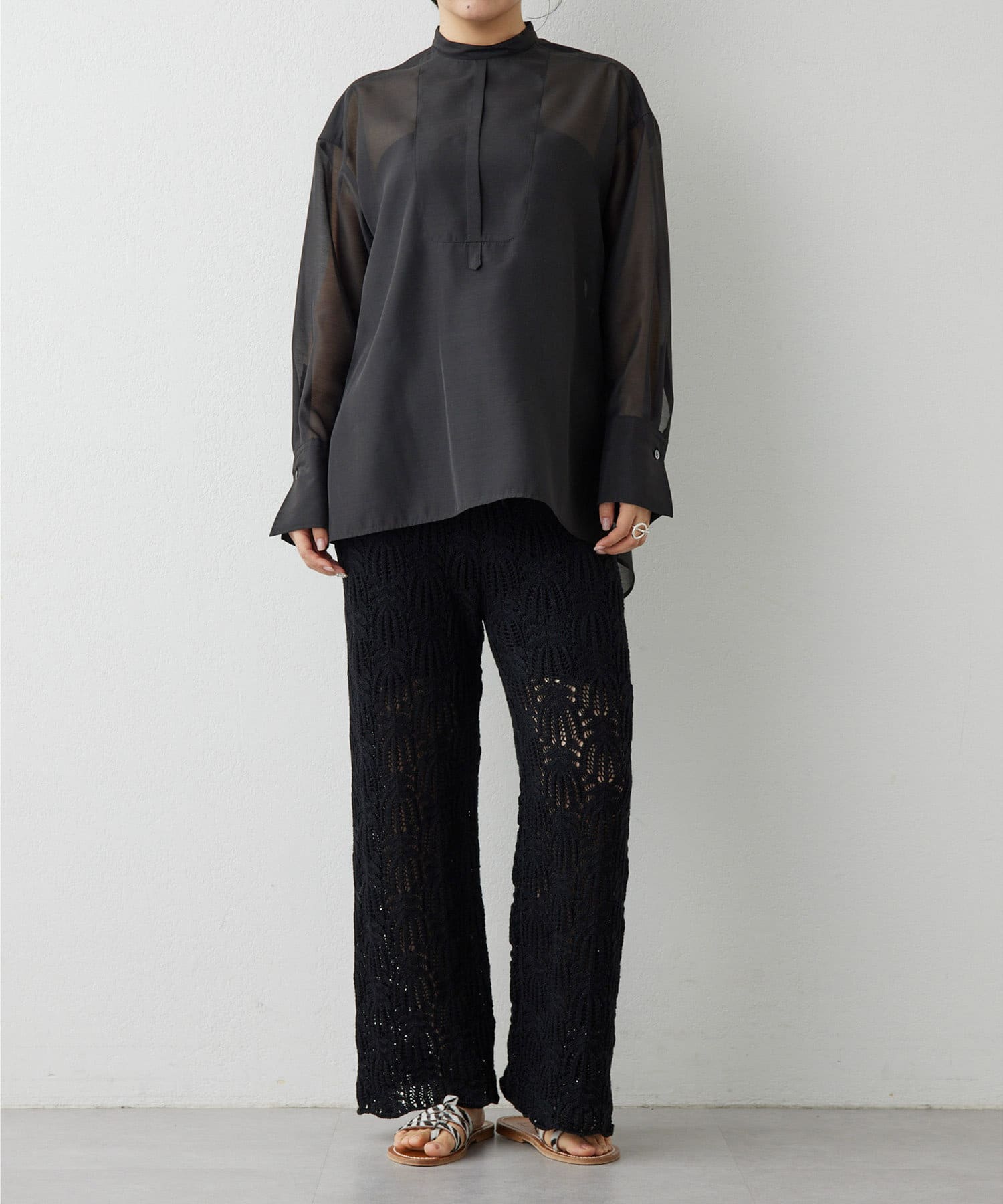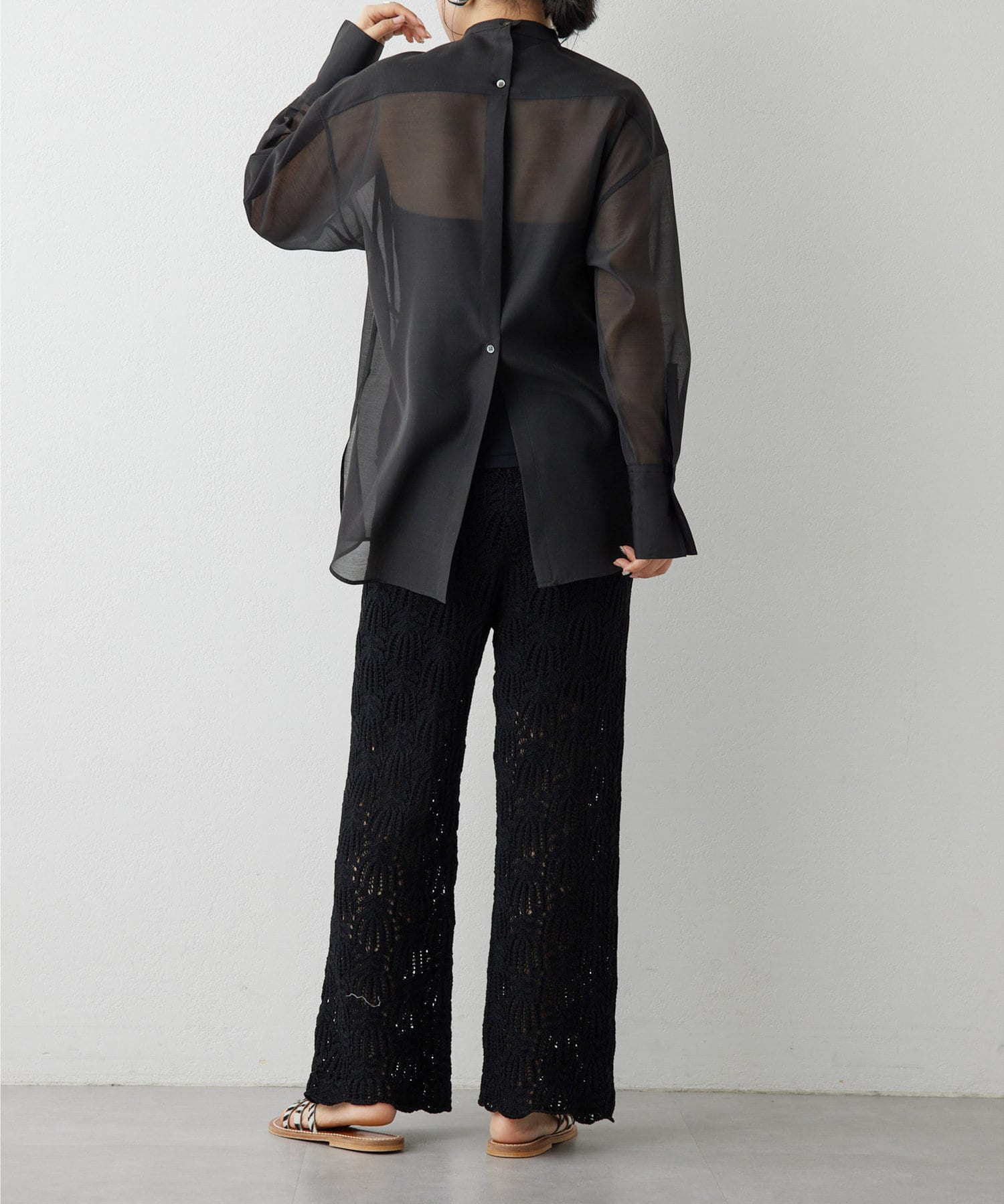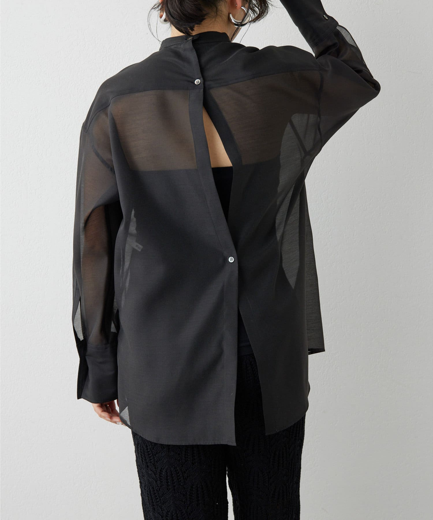 ■上品な透け感が大人な表情のオーガンジーシャツ。