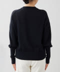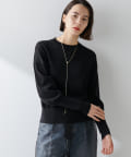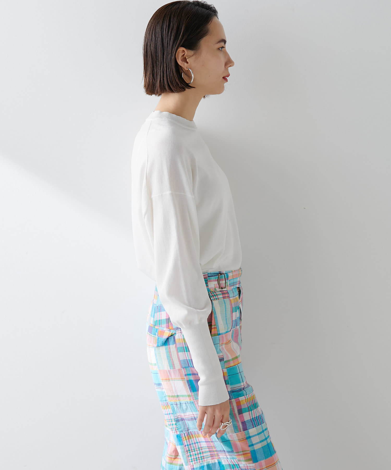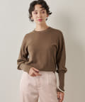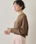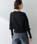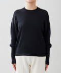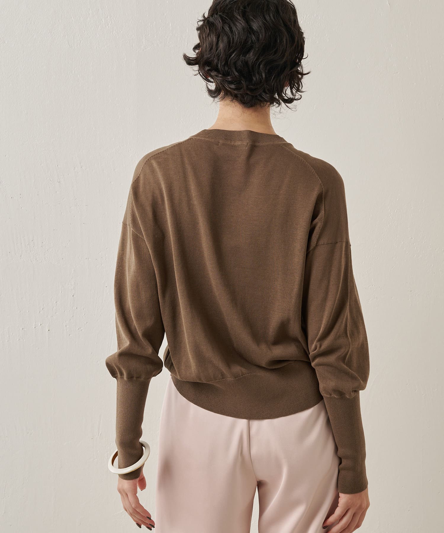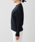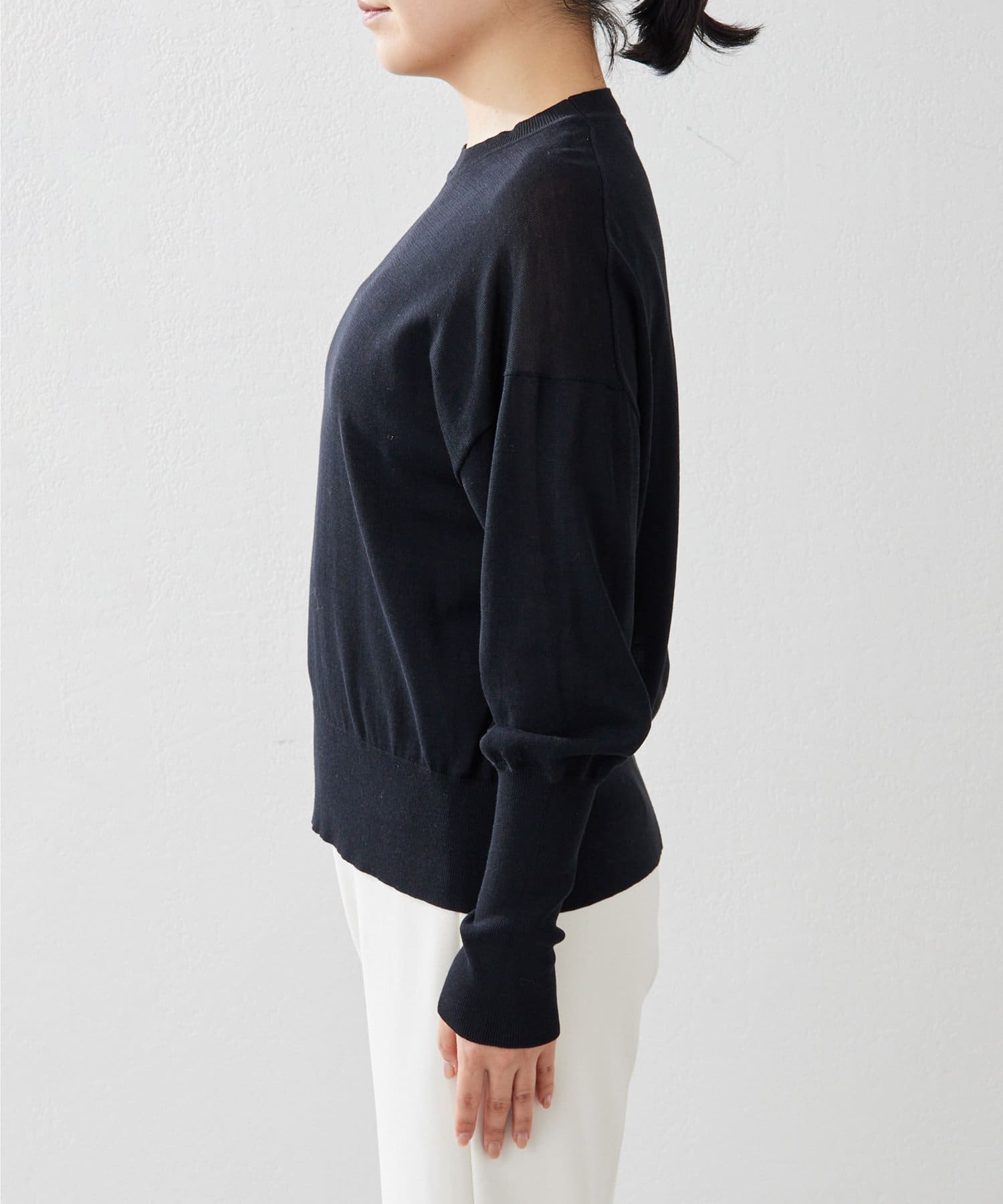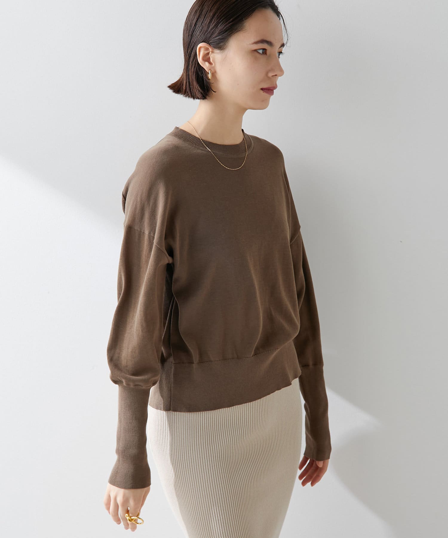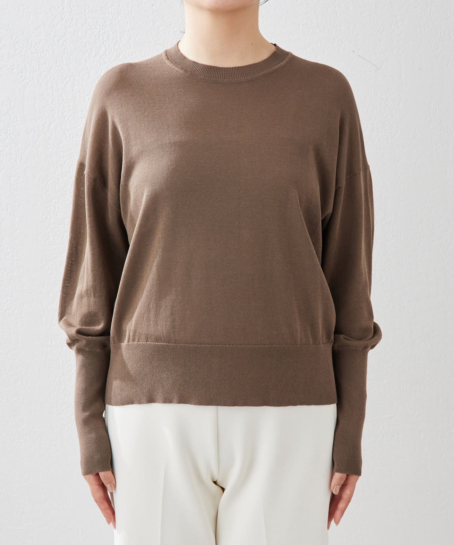 ■ミニマルな印象のクルーネックに、手首を華奢に見せる袖口の長めのリブがシルエットのポイントに。