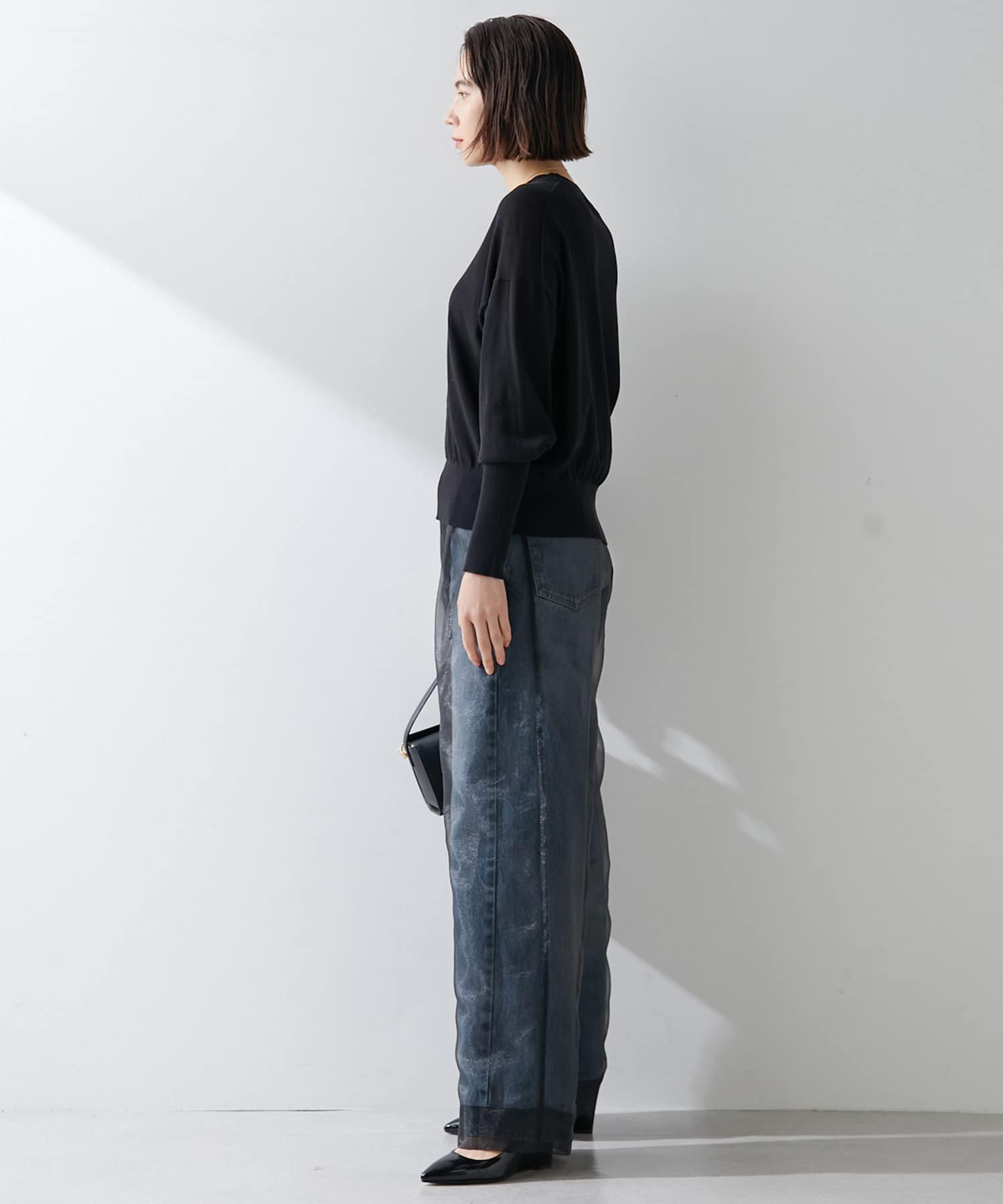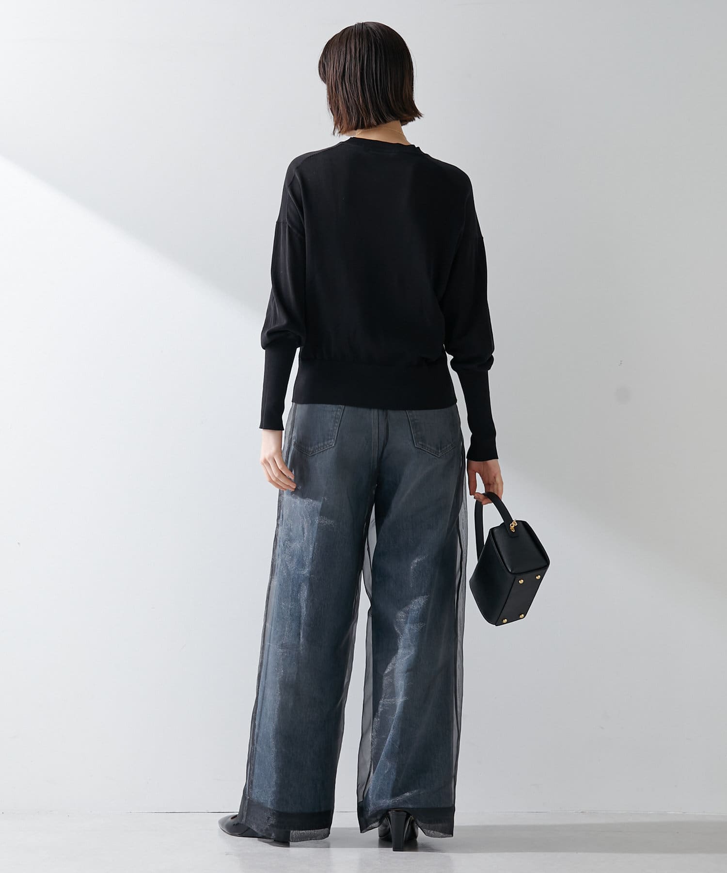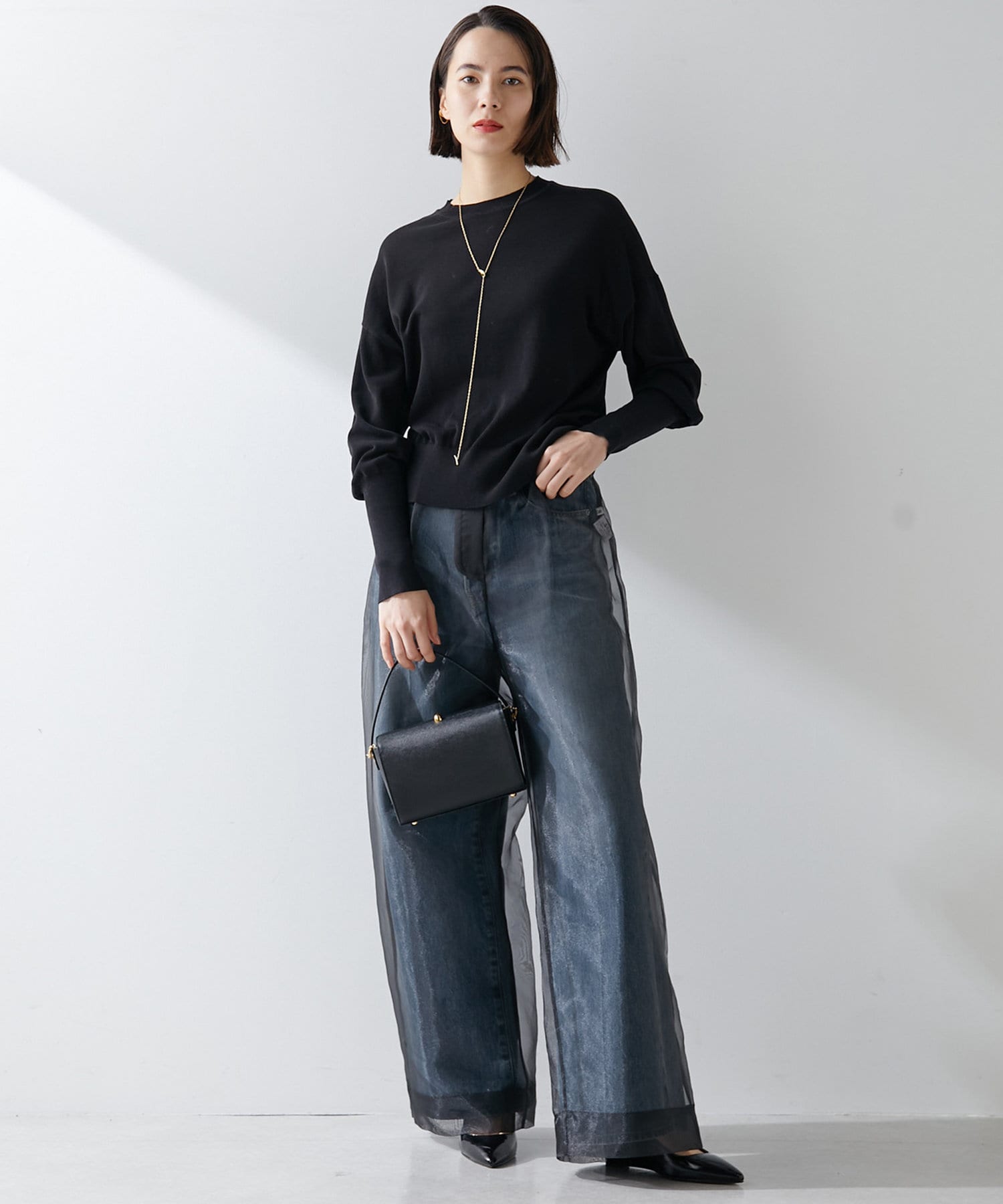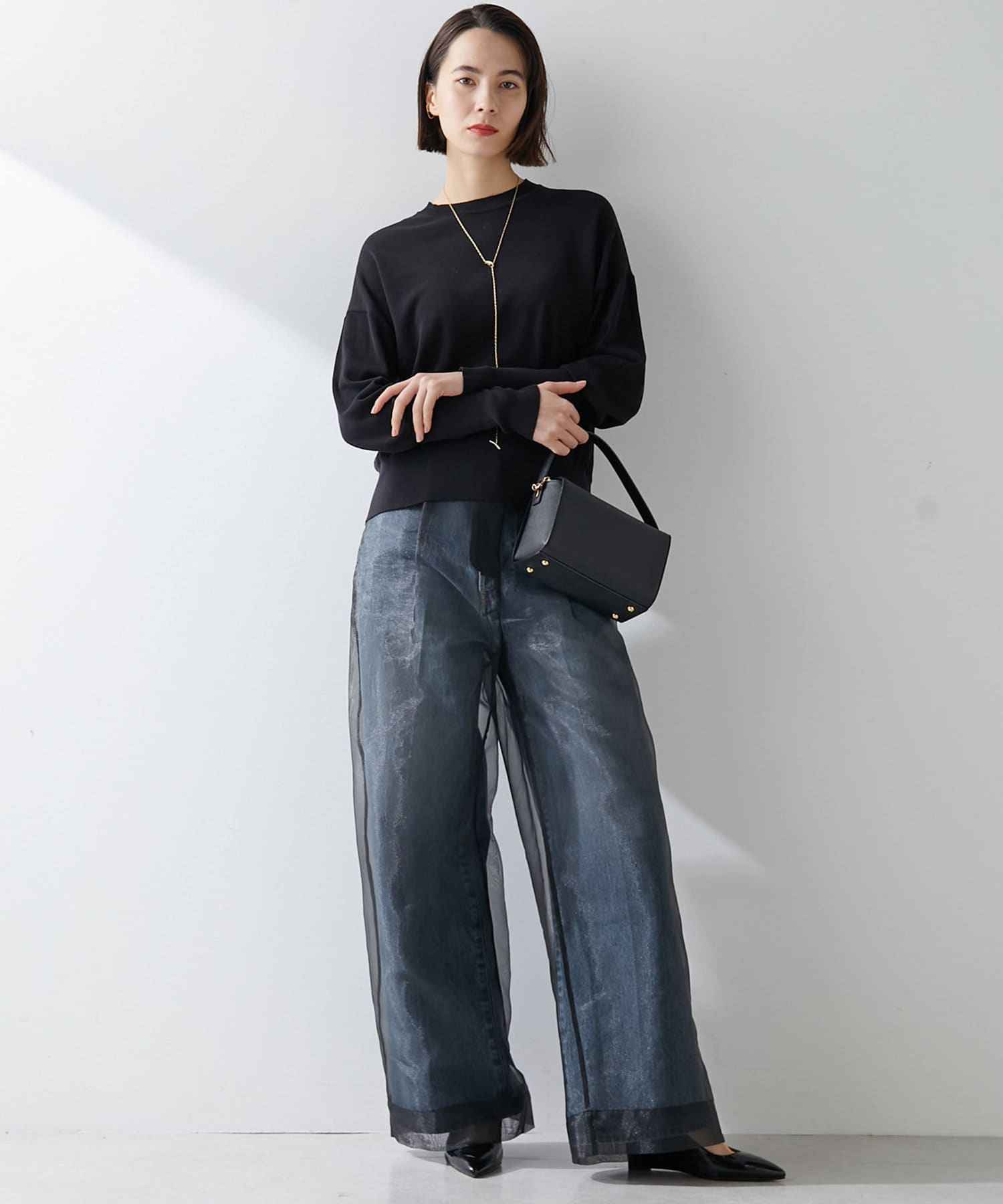 ■ほんのりと透ける薄手素材は着膨れすることなく、身幅にゆとりがありながらも上半身をコンパクトに見せてくれるのも◎。