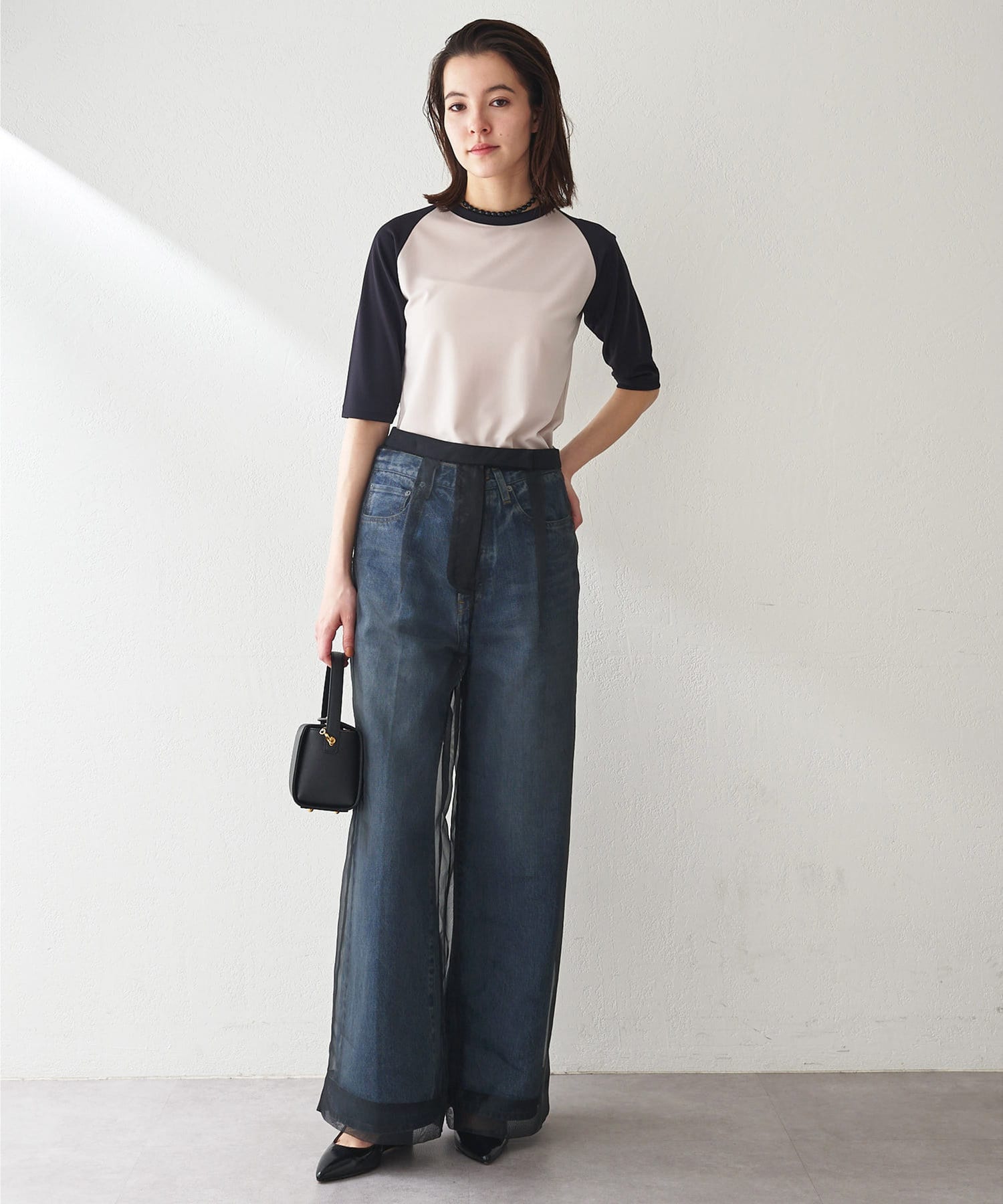 ■落ち感のある素材はカジュアルになりすぎず、きれいめなボトムとの相性も◎。