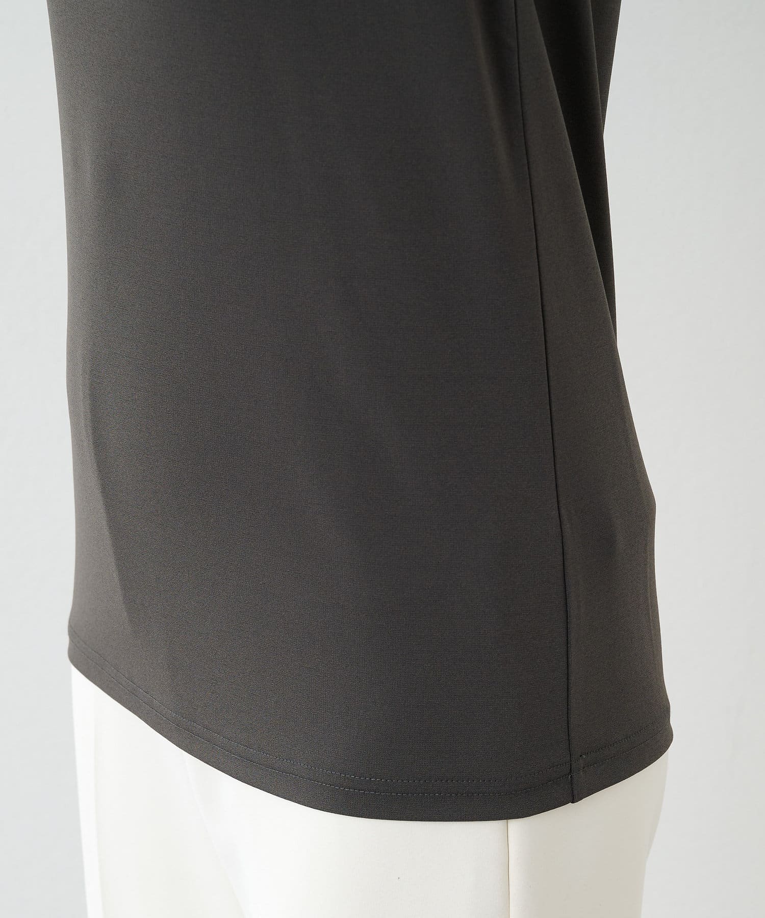 カラダにフィットする形ですが、襟元は緩やかなラインで着やすいです。