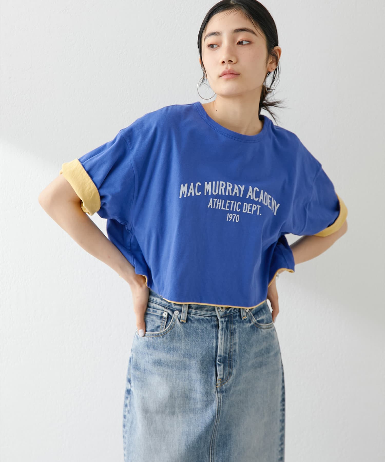 ■トレンド感のあるクロップド丈はハイウエストボトムやワイドパンツとも相性抜群。
