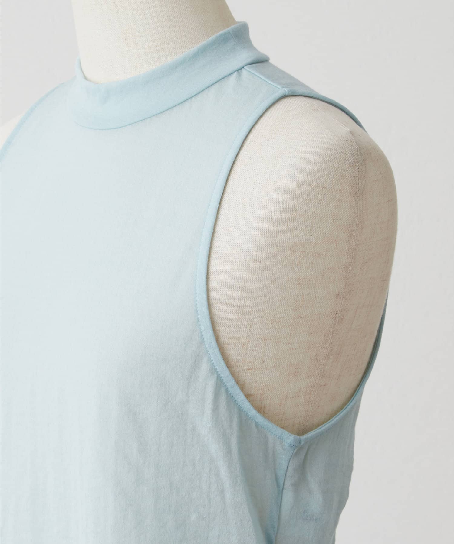 ■ヘルシーなアメリカンスリーブに、モード感のあるモックネックデザイン。