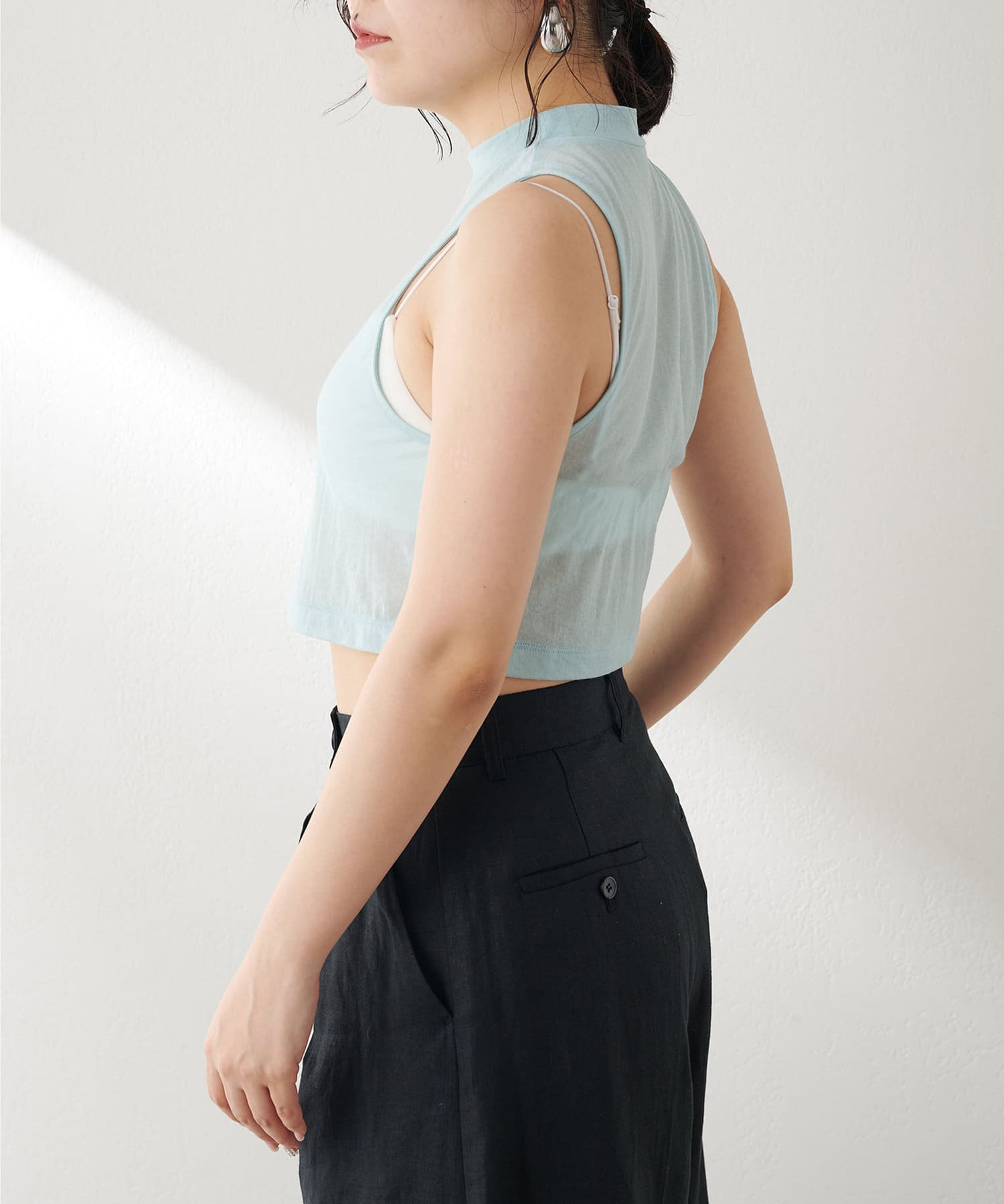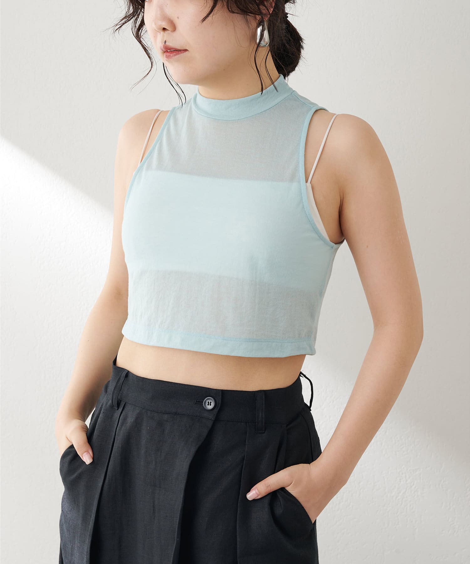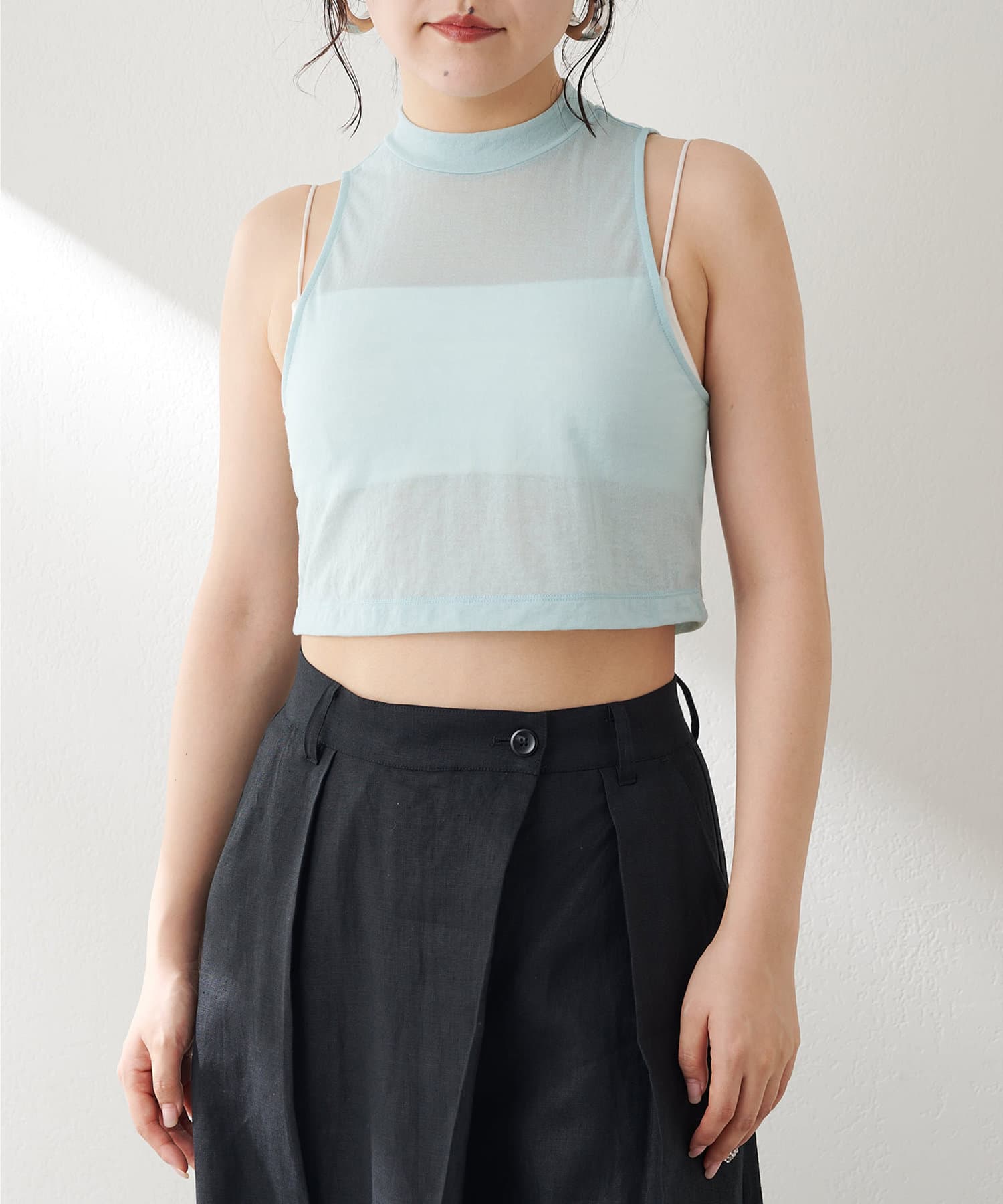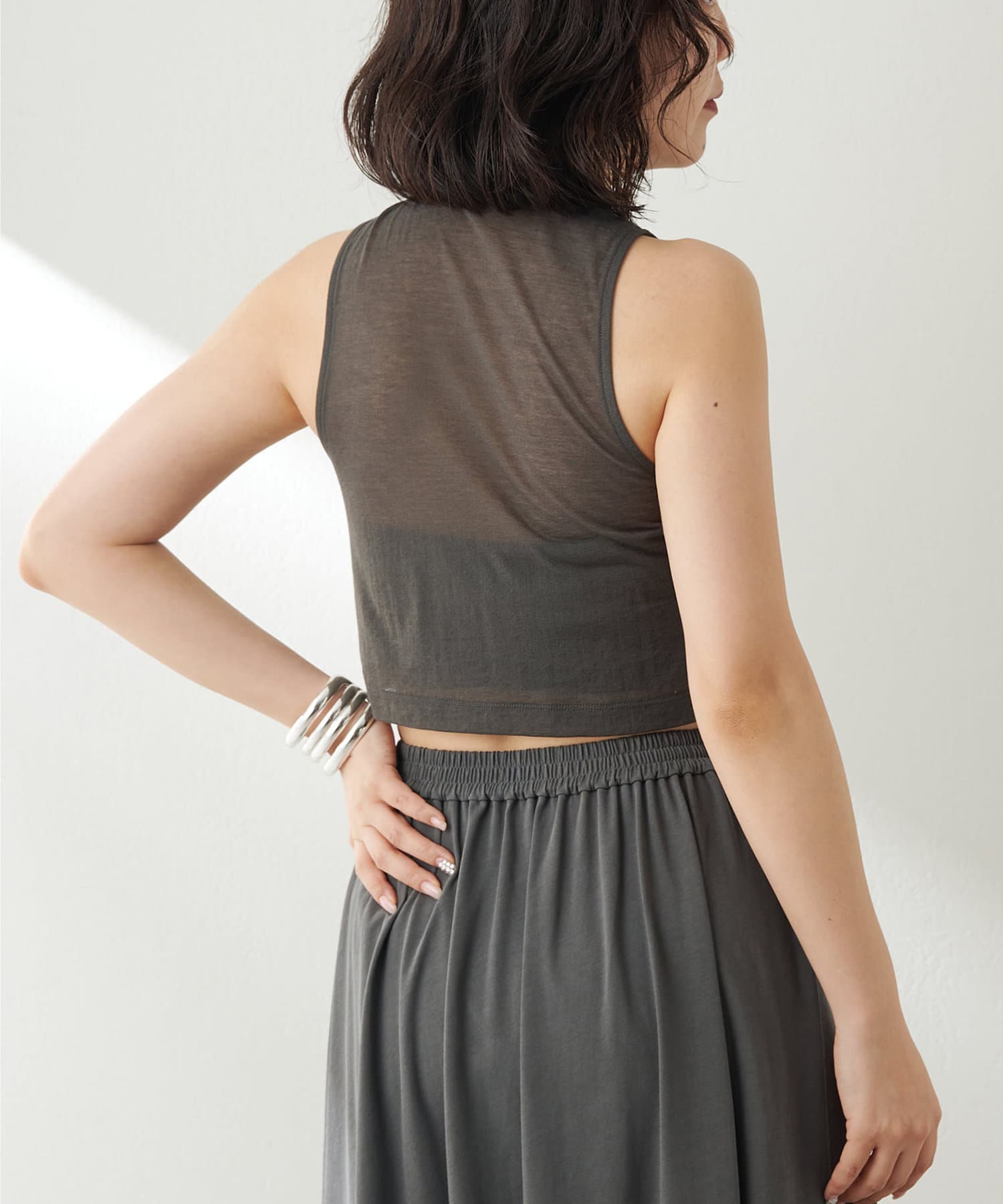■透け感のある風合いがシーズンムードらしいノースリーブトップス。