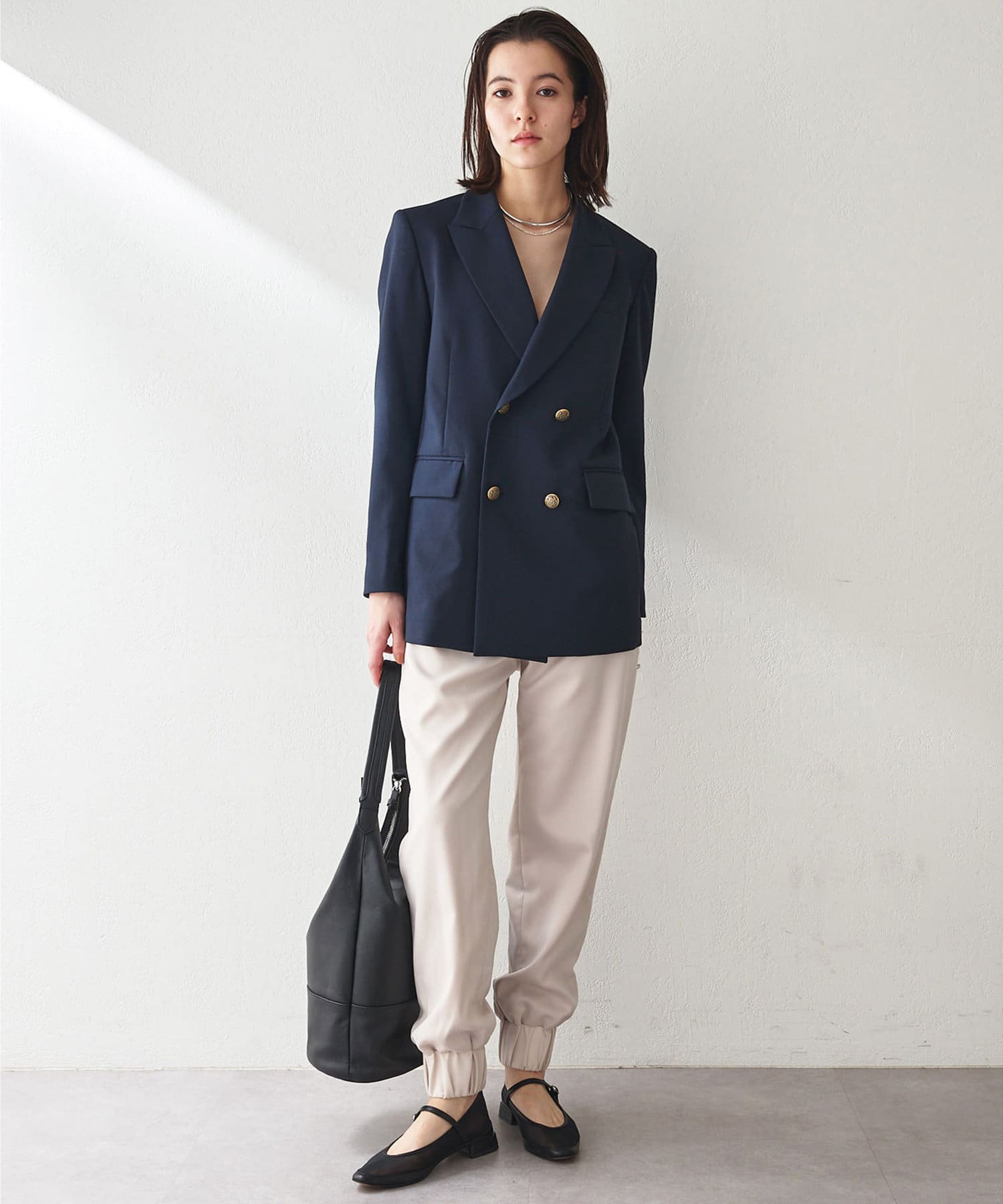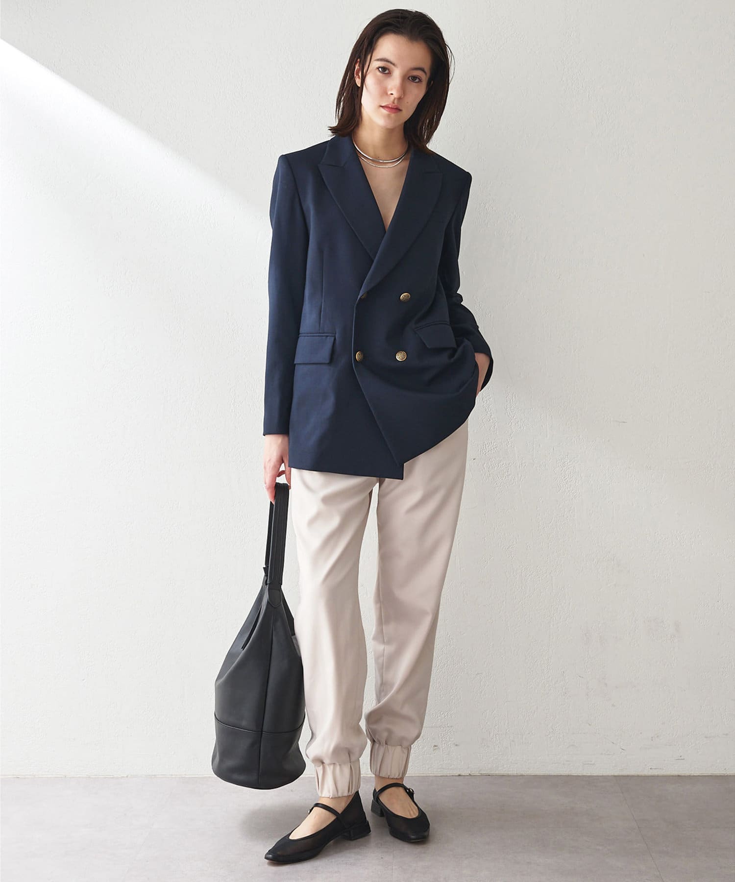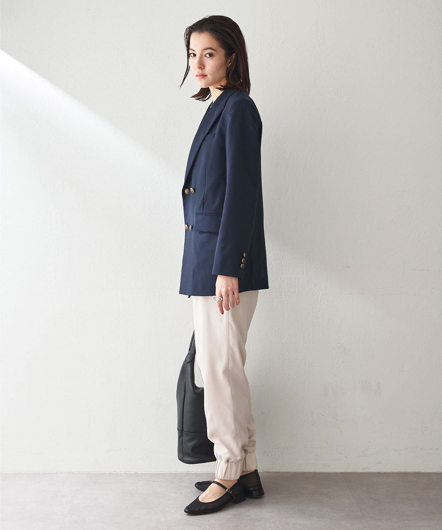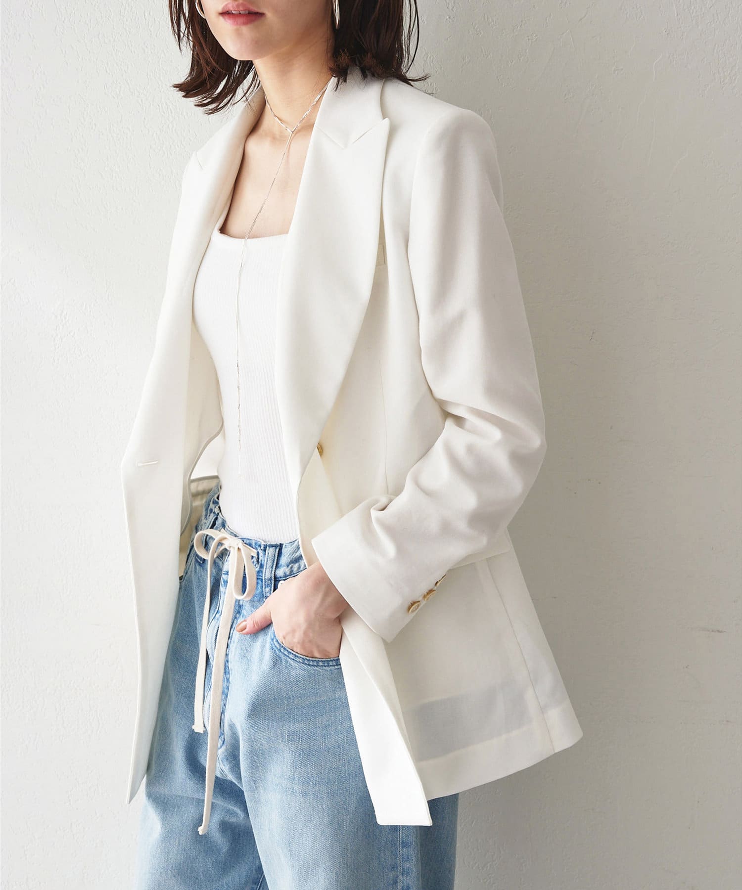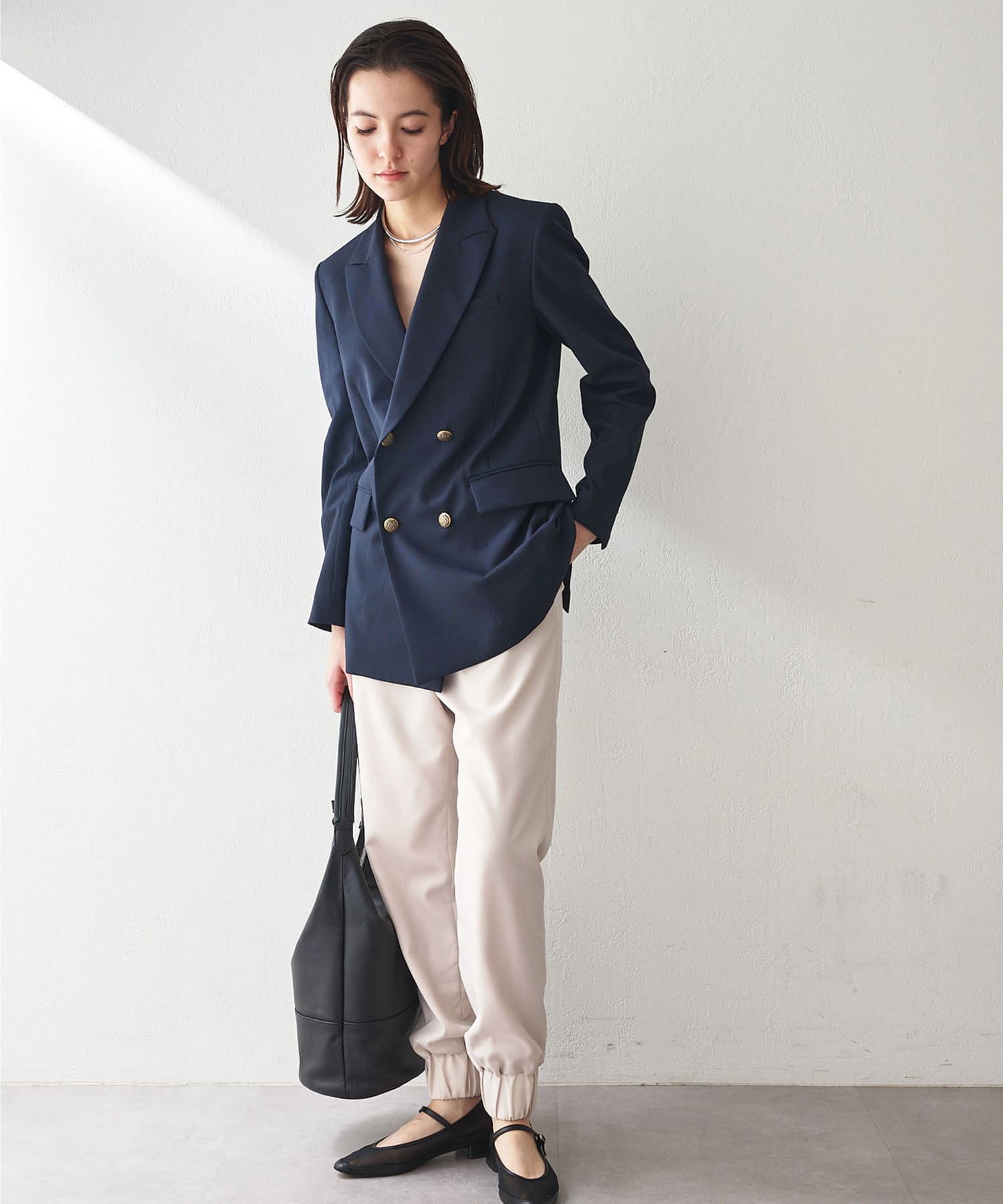 ■メンズライクながら、ウエストをややシェイプさせることで女性らしさをプラス。