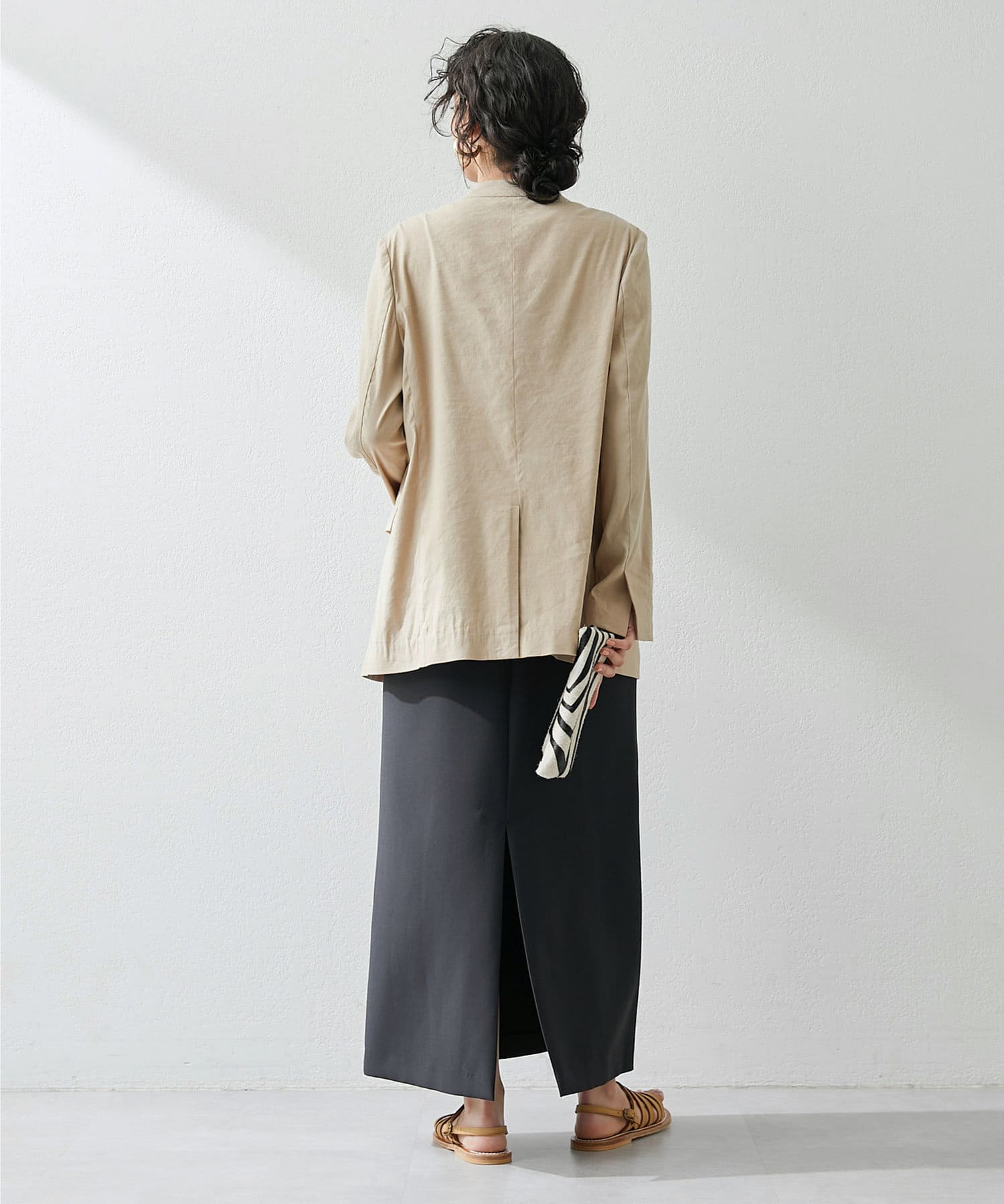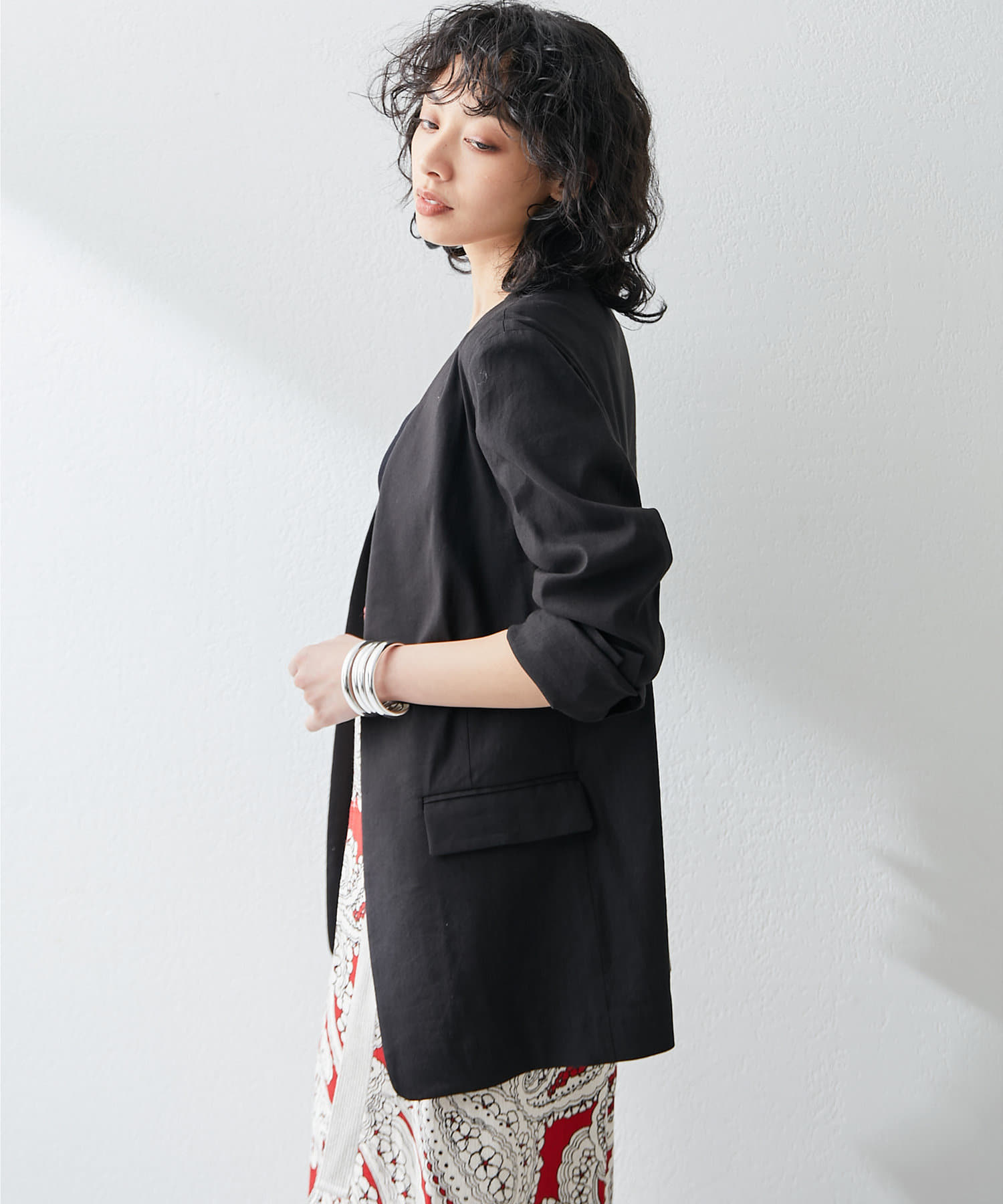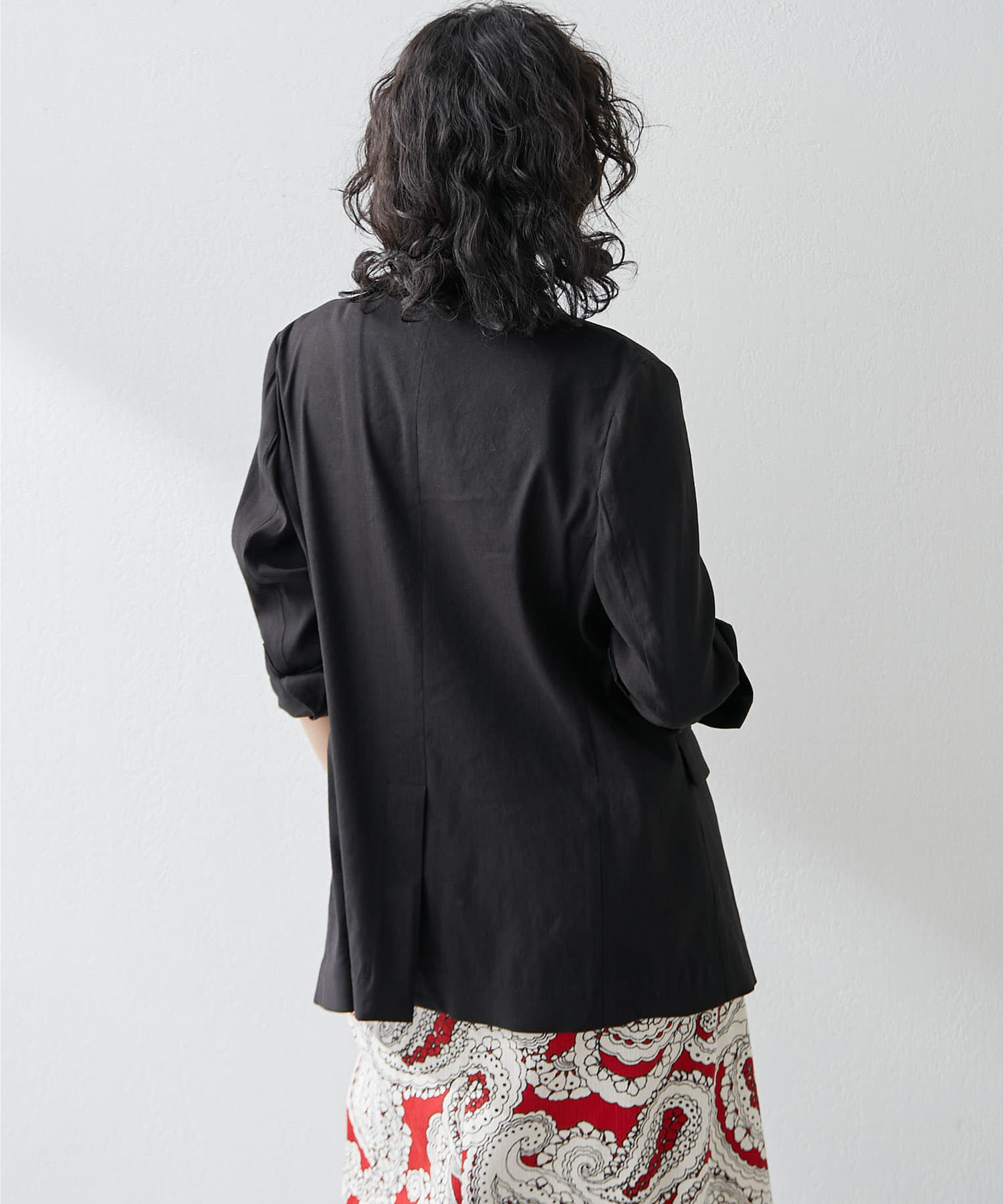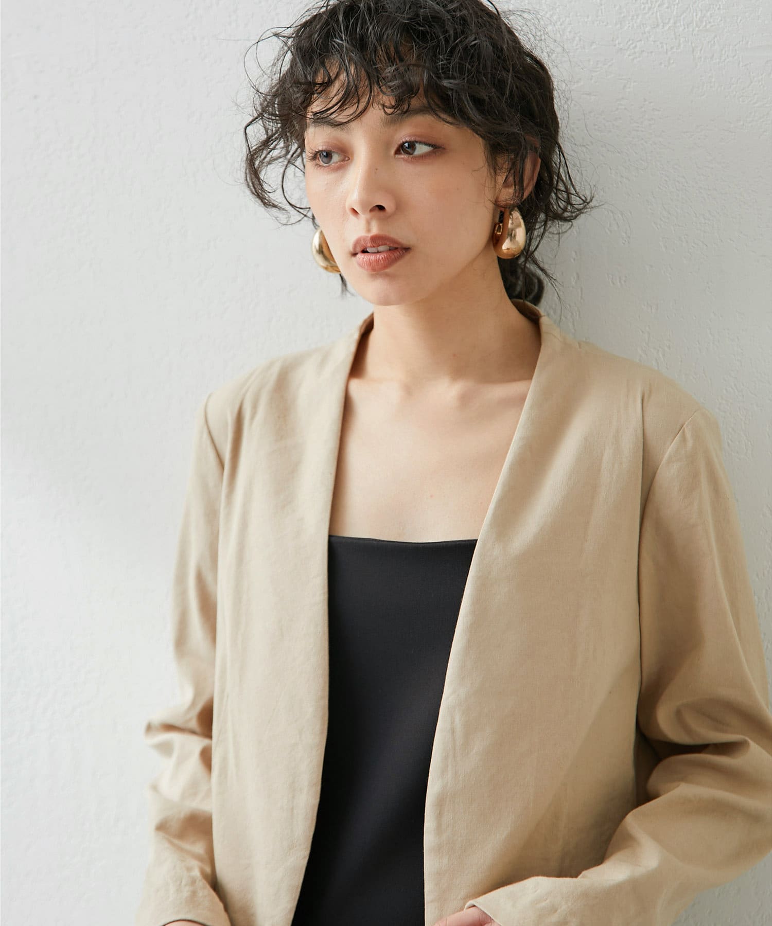 ■裏地がないため袖をたくしあげても様になり、カーディガン感覚で気軽に使える抜け感ジャケット。