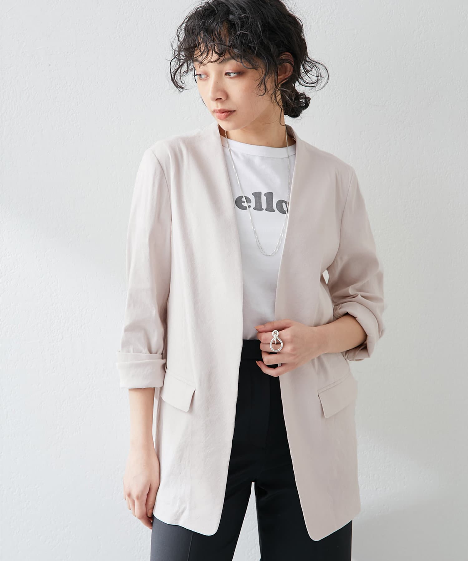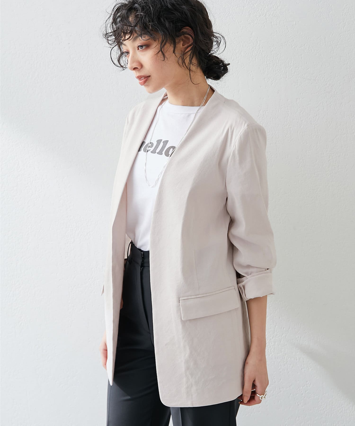 軽快に羽織れる、デイリーユースなノーカラージャケット