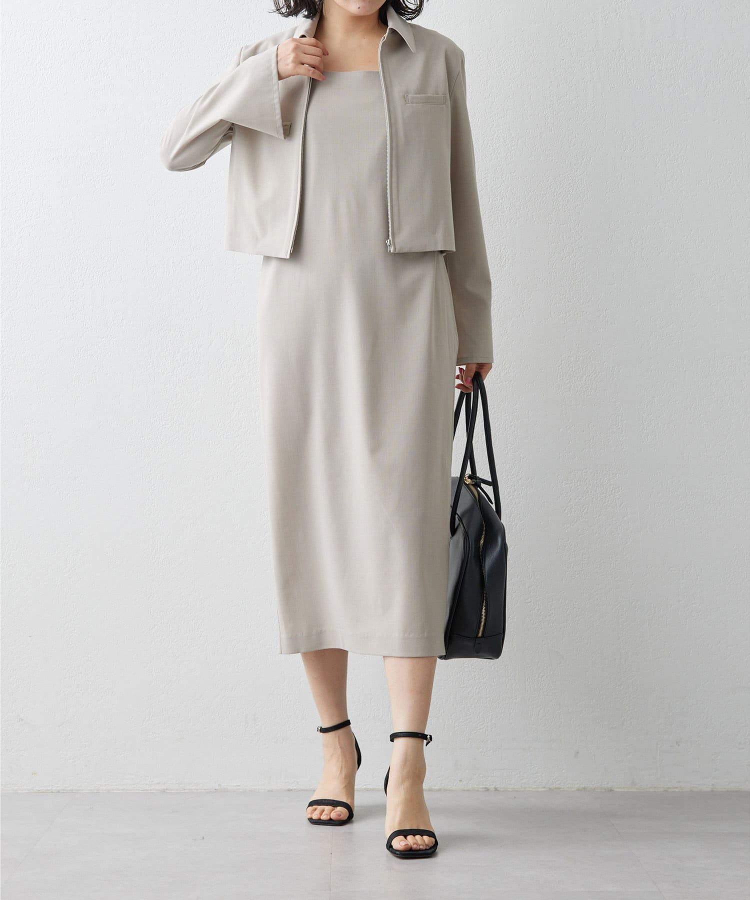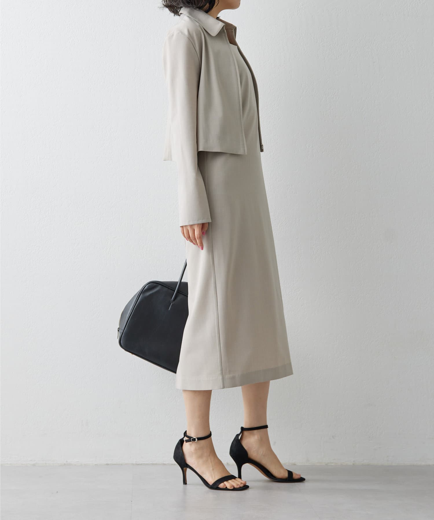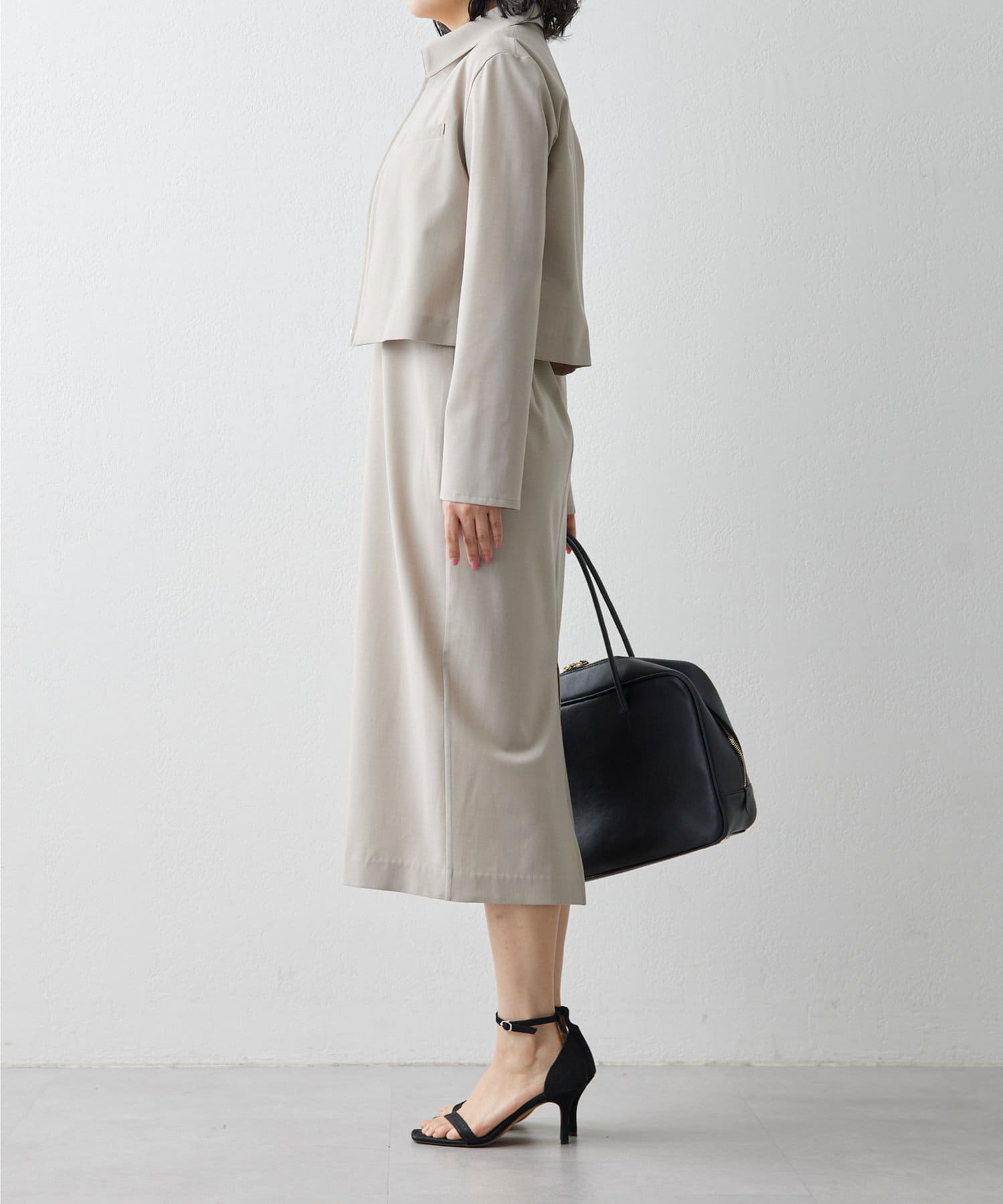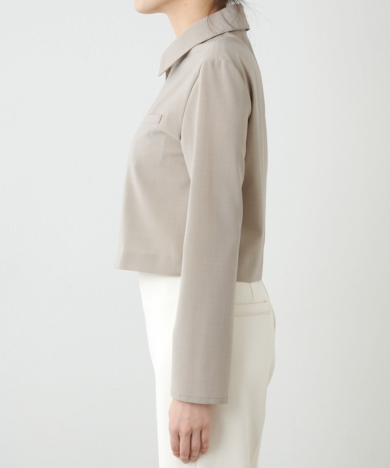 ショート丈が差をつける大人ジャケット。上質な素材感で、上品さがあります。スッキリとした袖のシルエットに袖口のスリットが、コーデに抜けを出してくれます。