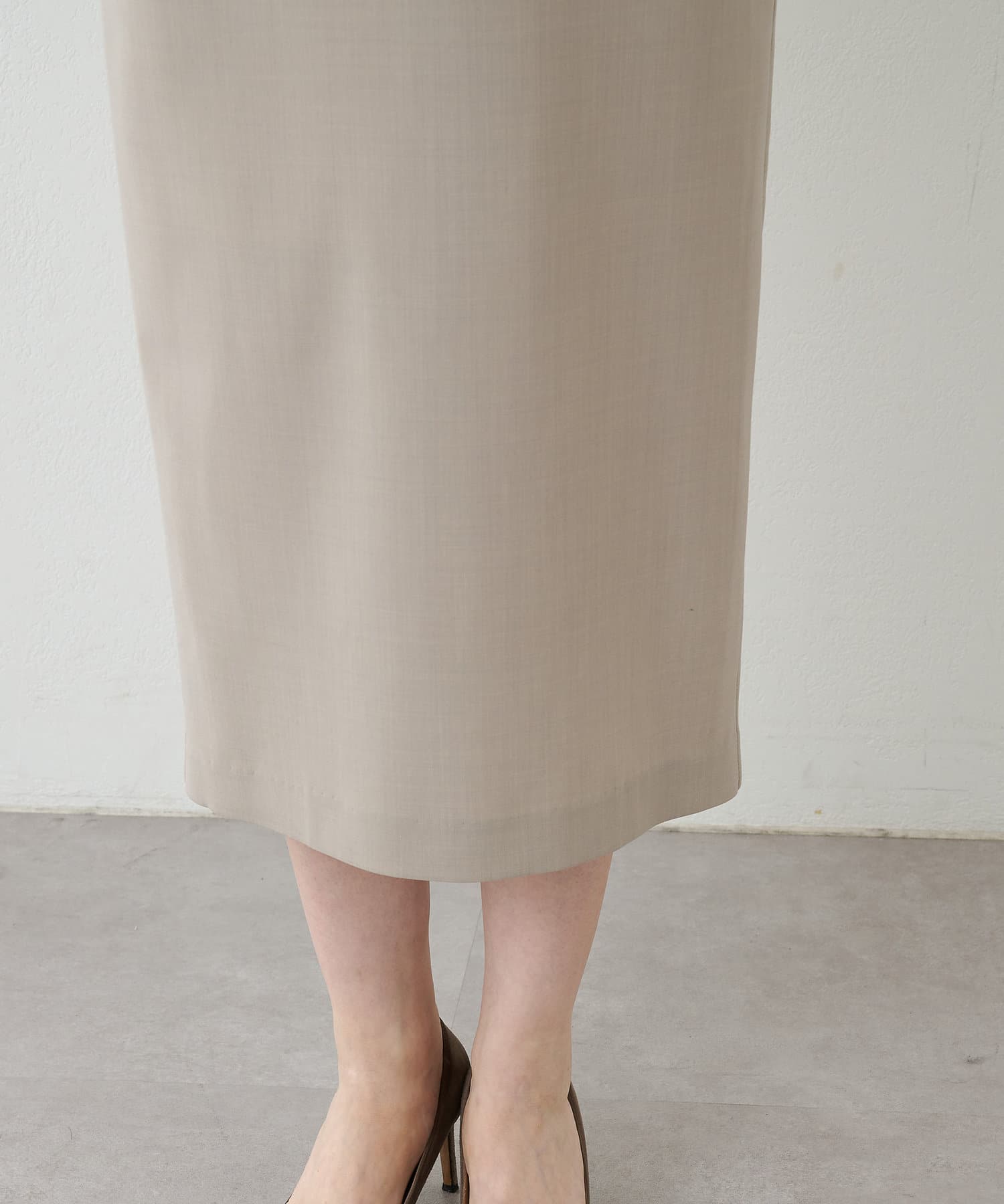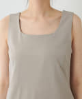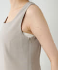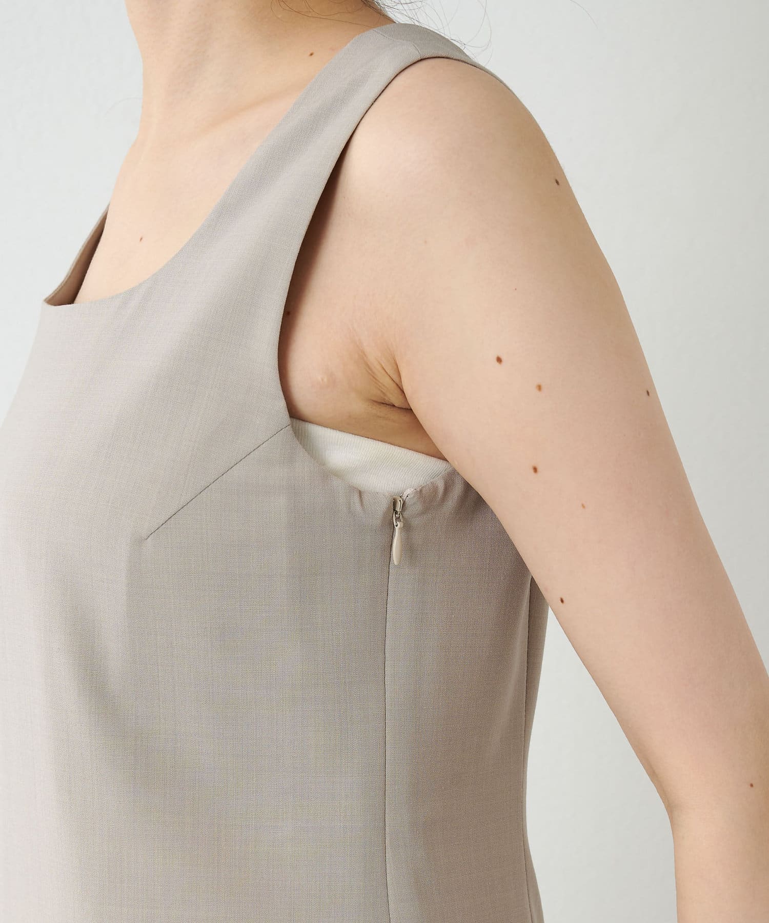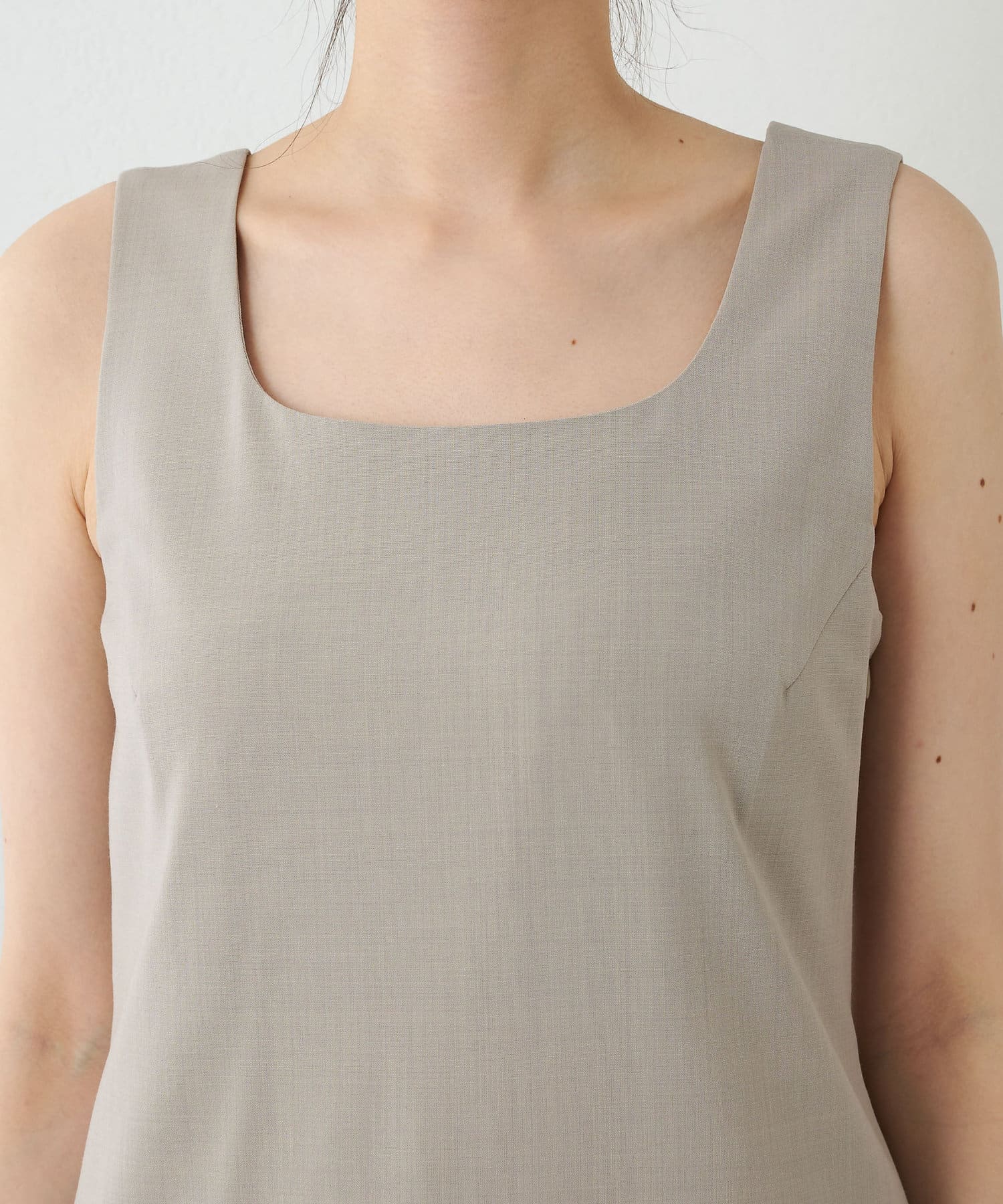 一見シンプルなノースリーブのワンピースですがネックがスクエアになっていたり、深めのバッグスリットや少しくびれた背中のラインなどとっても女性らしいポイントが詰まった1着です。サラッとノースリーブ1枚で夏場着てもどこか上品に仕上がります。