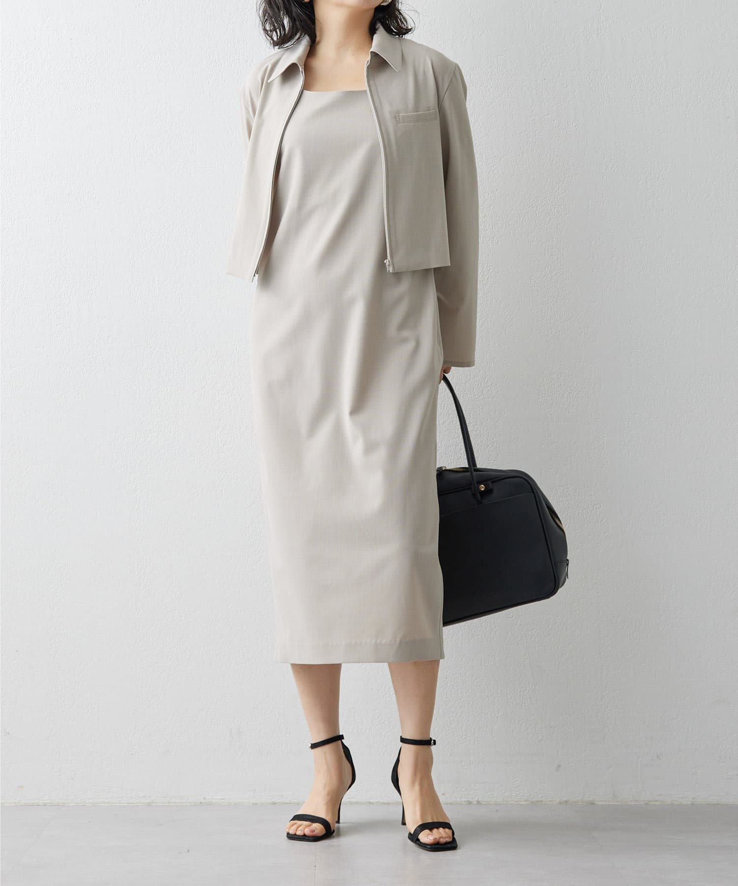 1枚で完成するワンピース。スクエアネックと真っ直ぐな肩ラインは、骨格ストレートが細見えする嬉しいシルエット◎足首がちらりと見える長過ぎない着丈で、小柄さんもお召頂けます。バックスリット入で足さばきも良いですよ◎