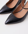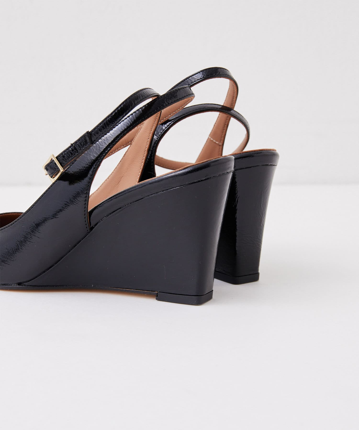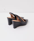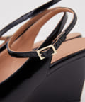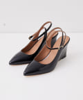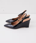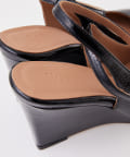 ■安定感のあるウェッジソールを使用したエナメルストラップパンプス。