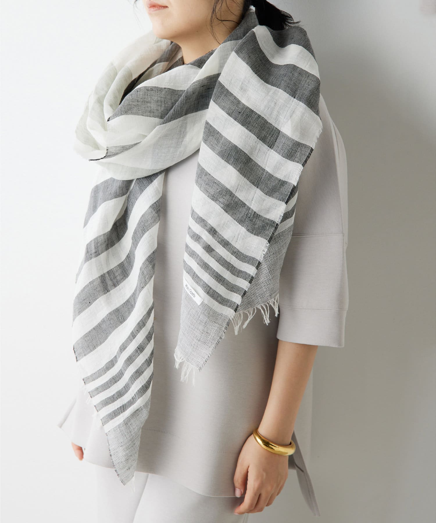 ■軽やかなリネンコットンの質感が心地良いボーダーストール。