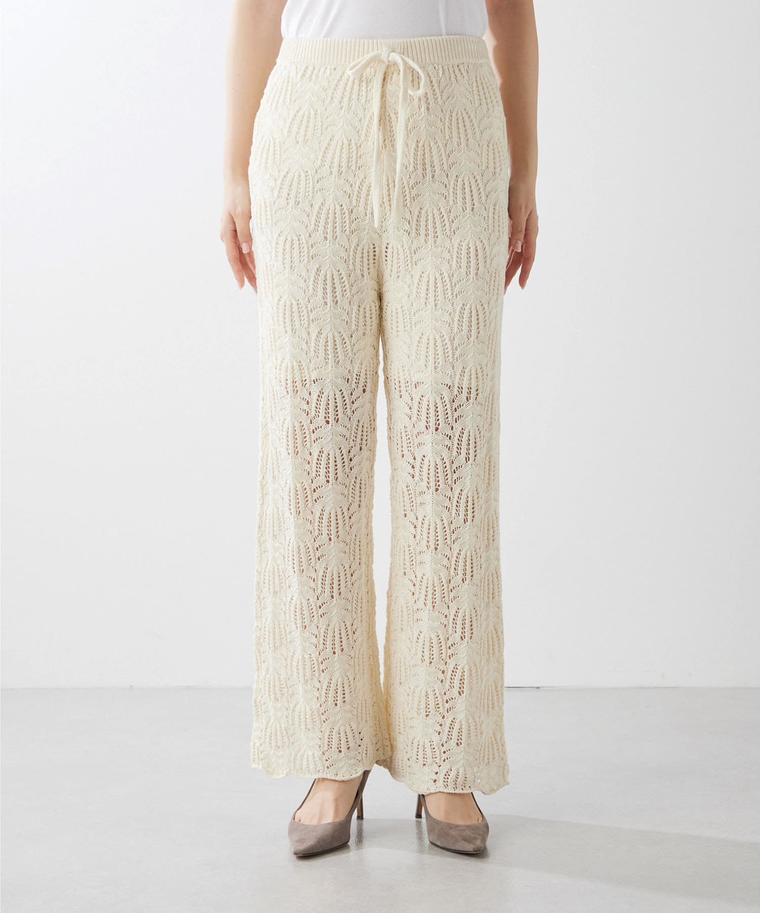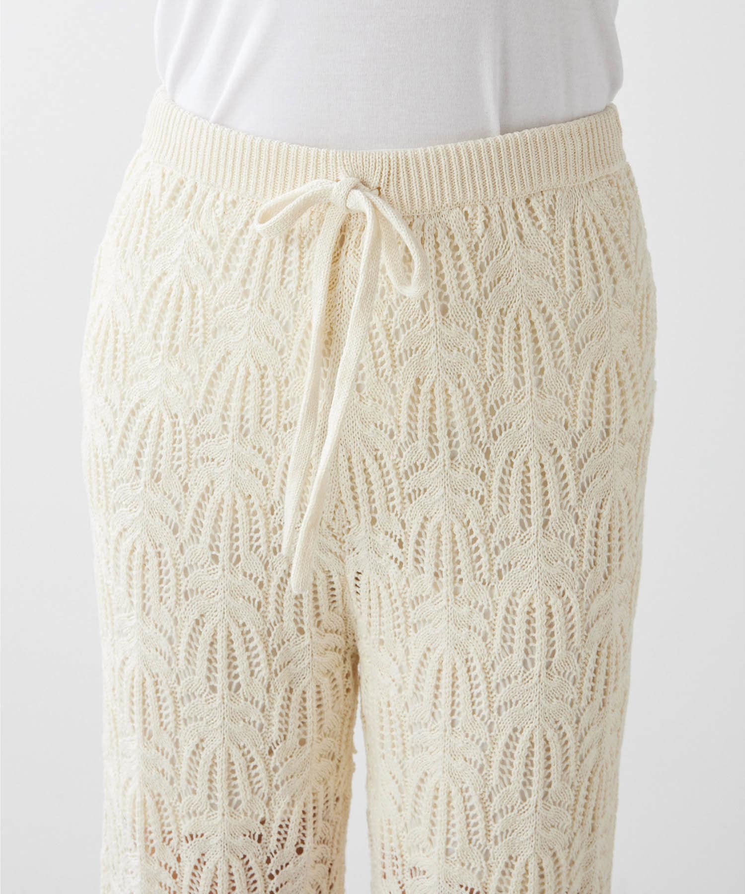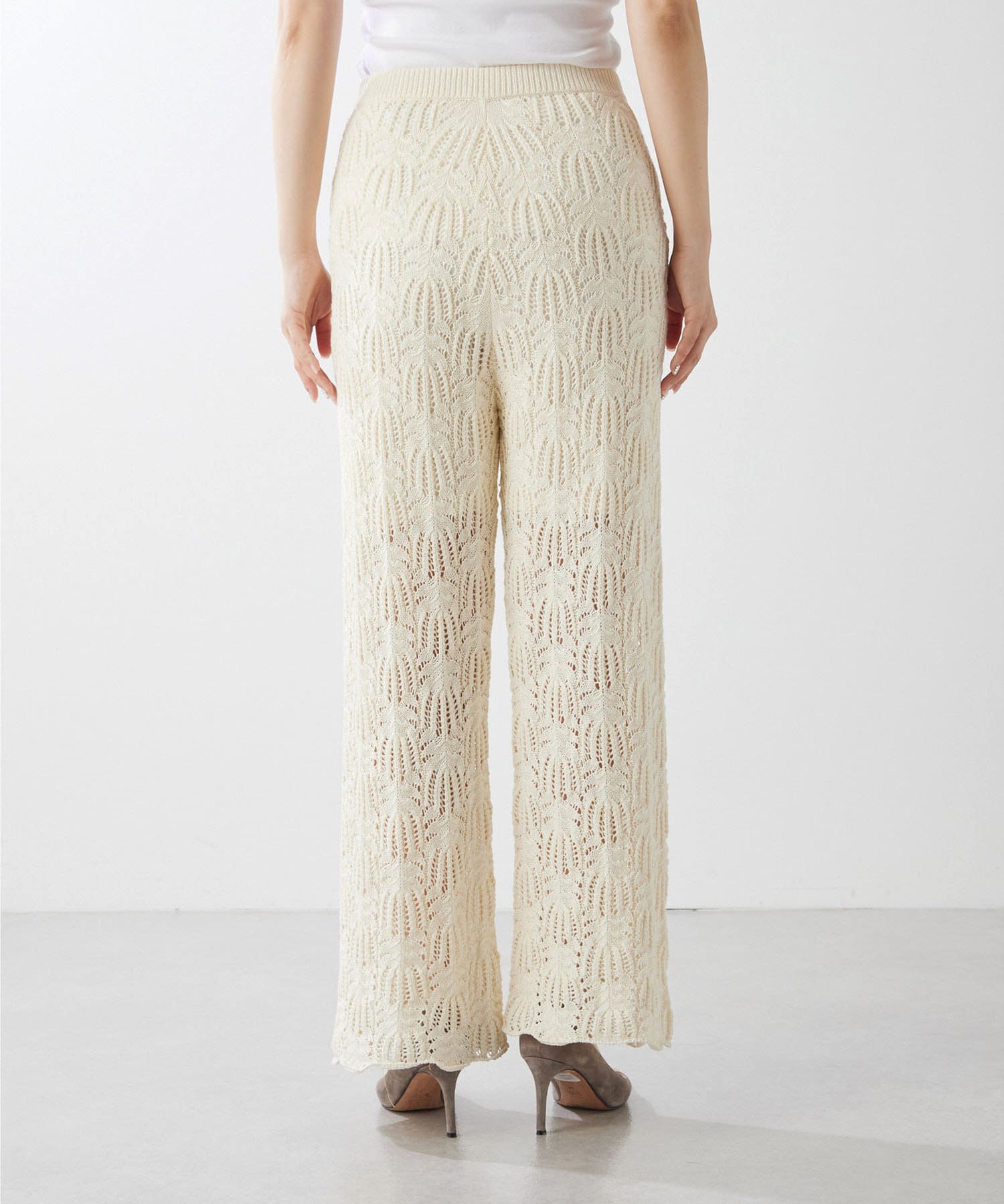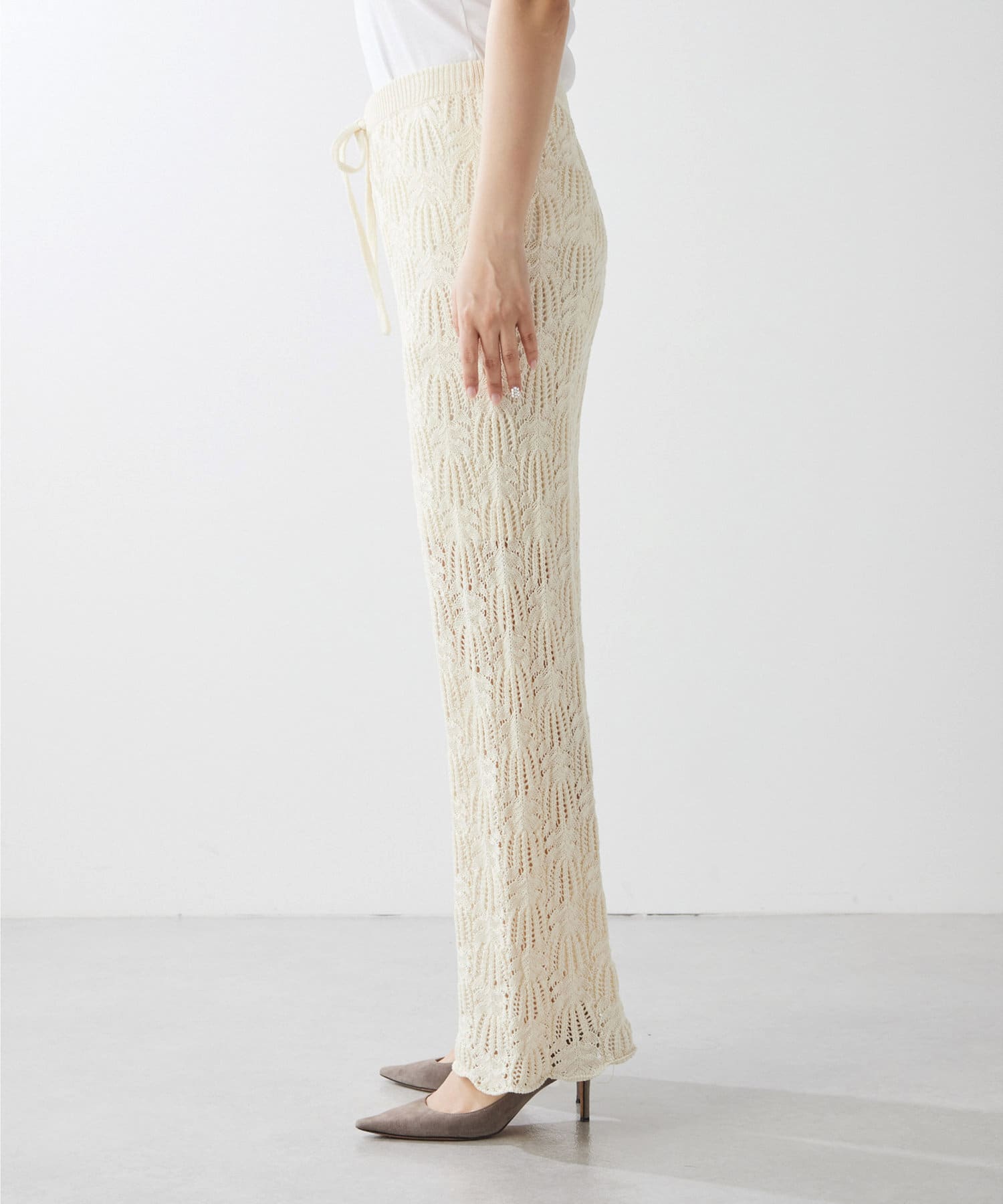 ■レースのような透かし編みの表情が印象的なストレートパンツ。