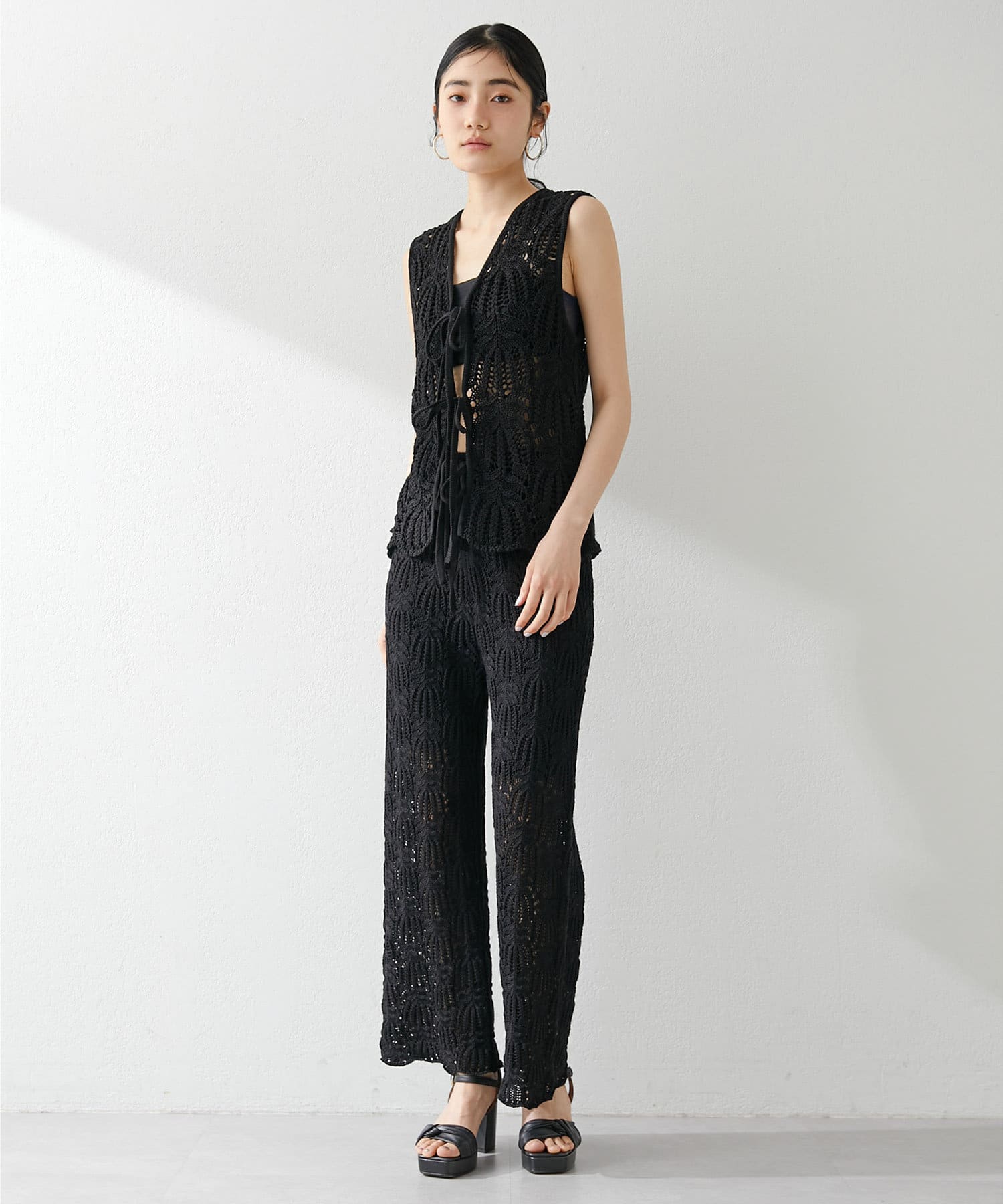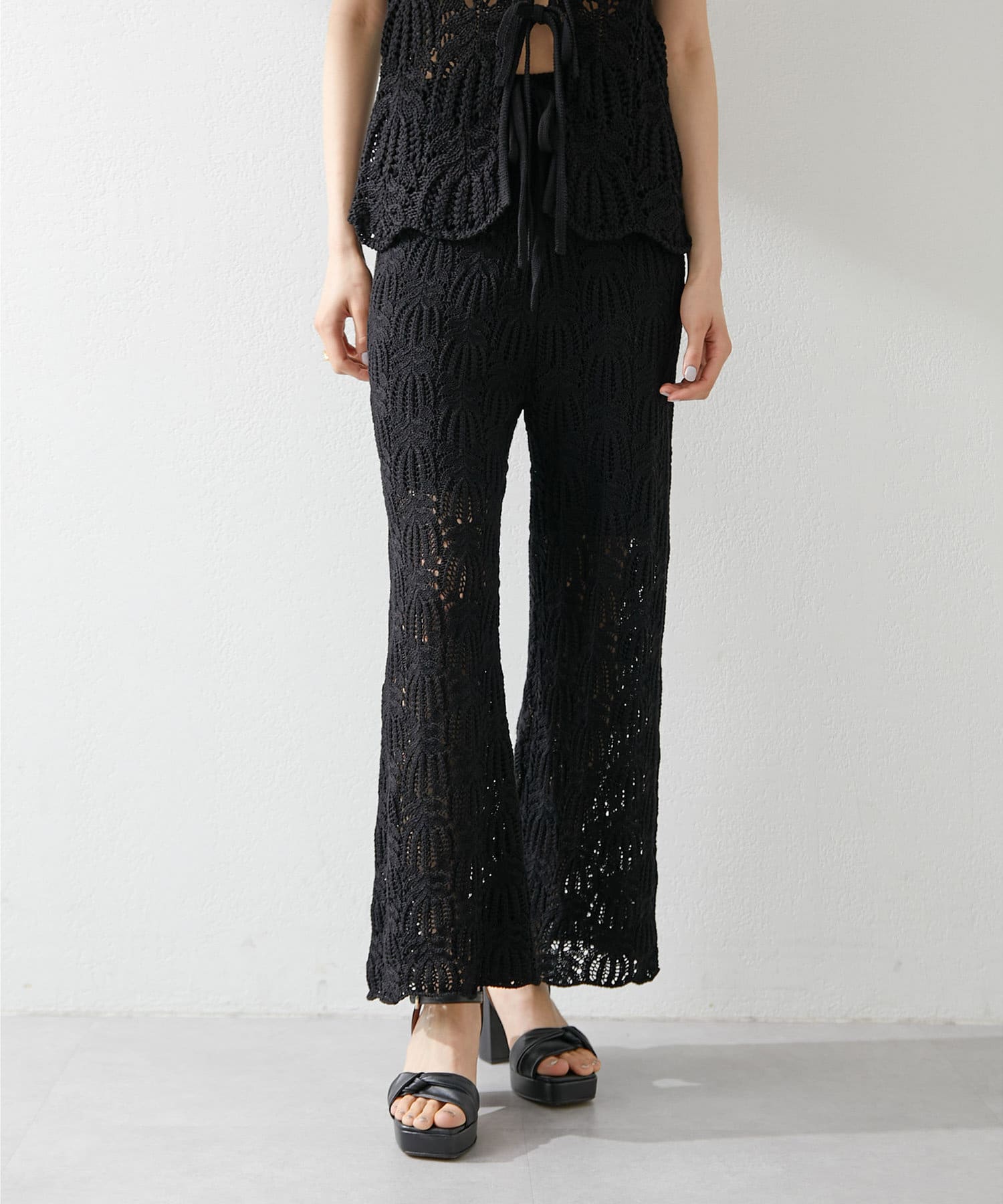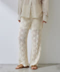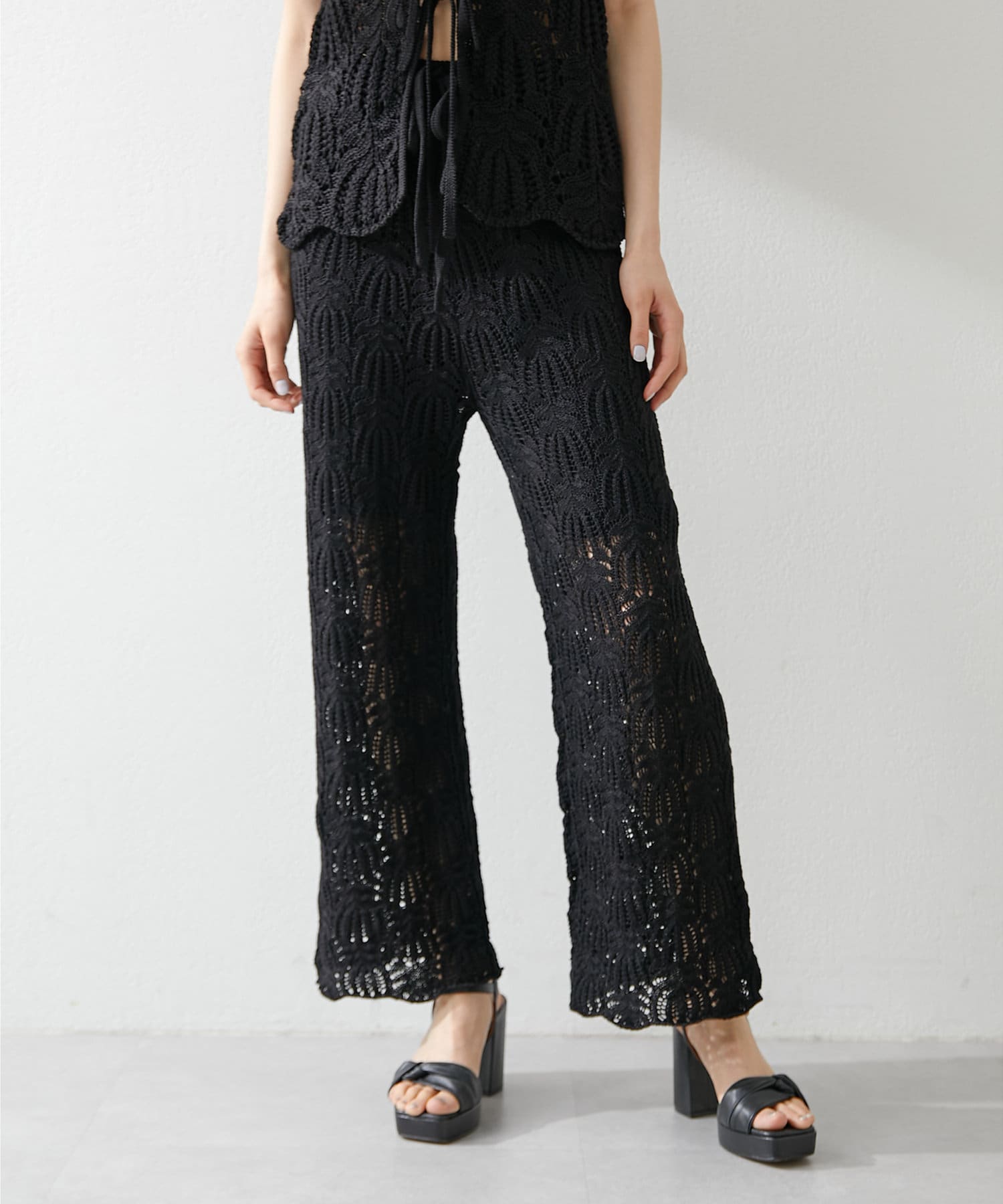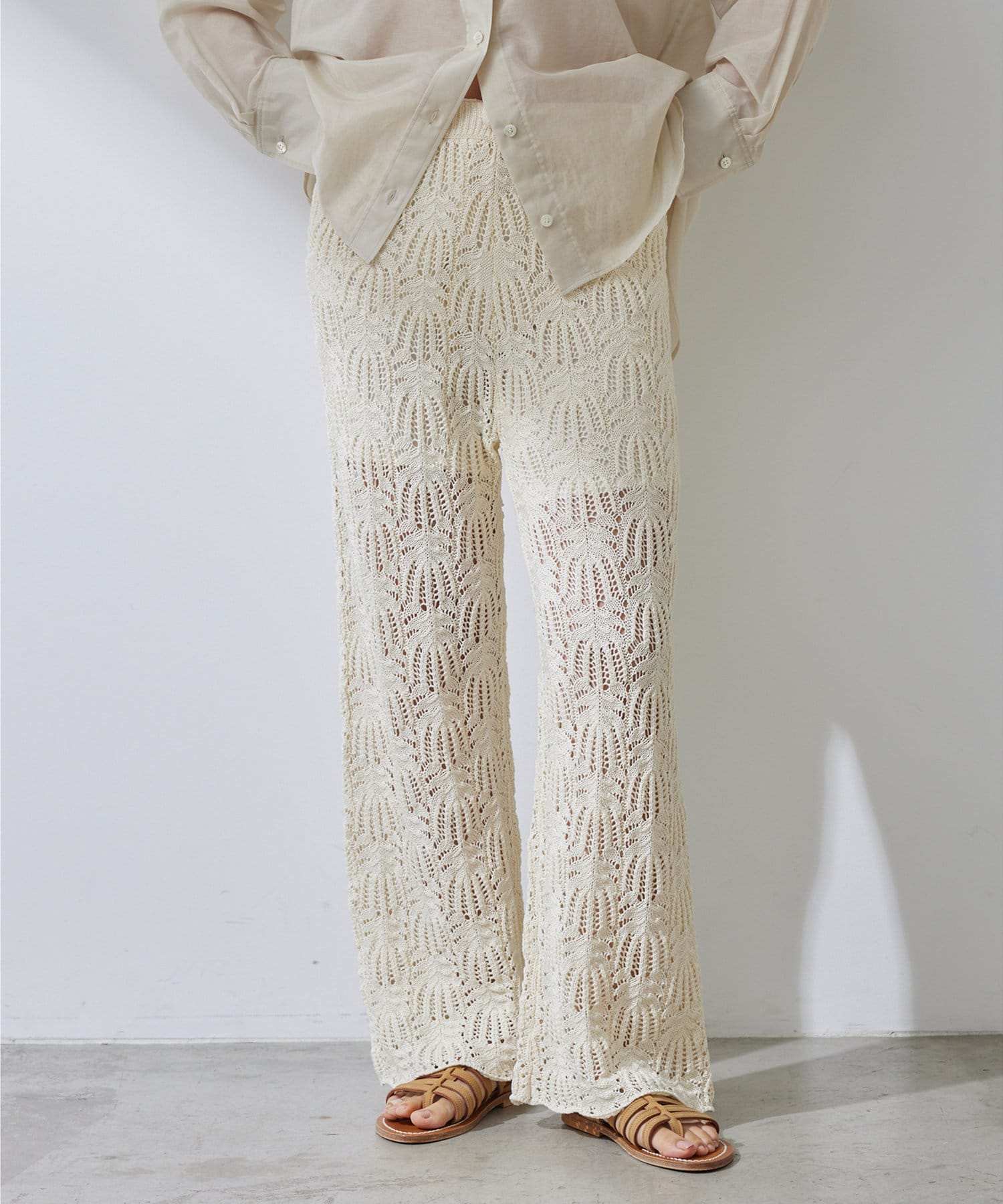 ■レースのような透かし編みの表情が印象的なストレートパンツ。