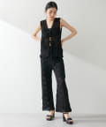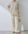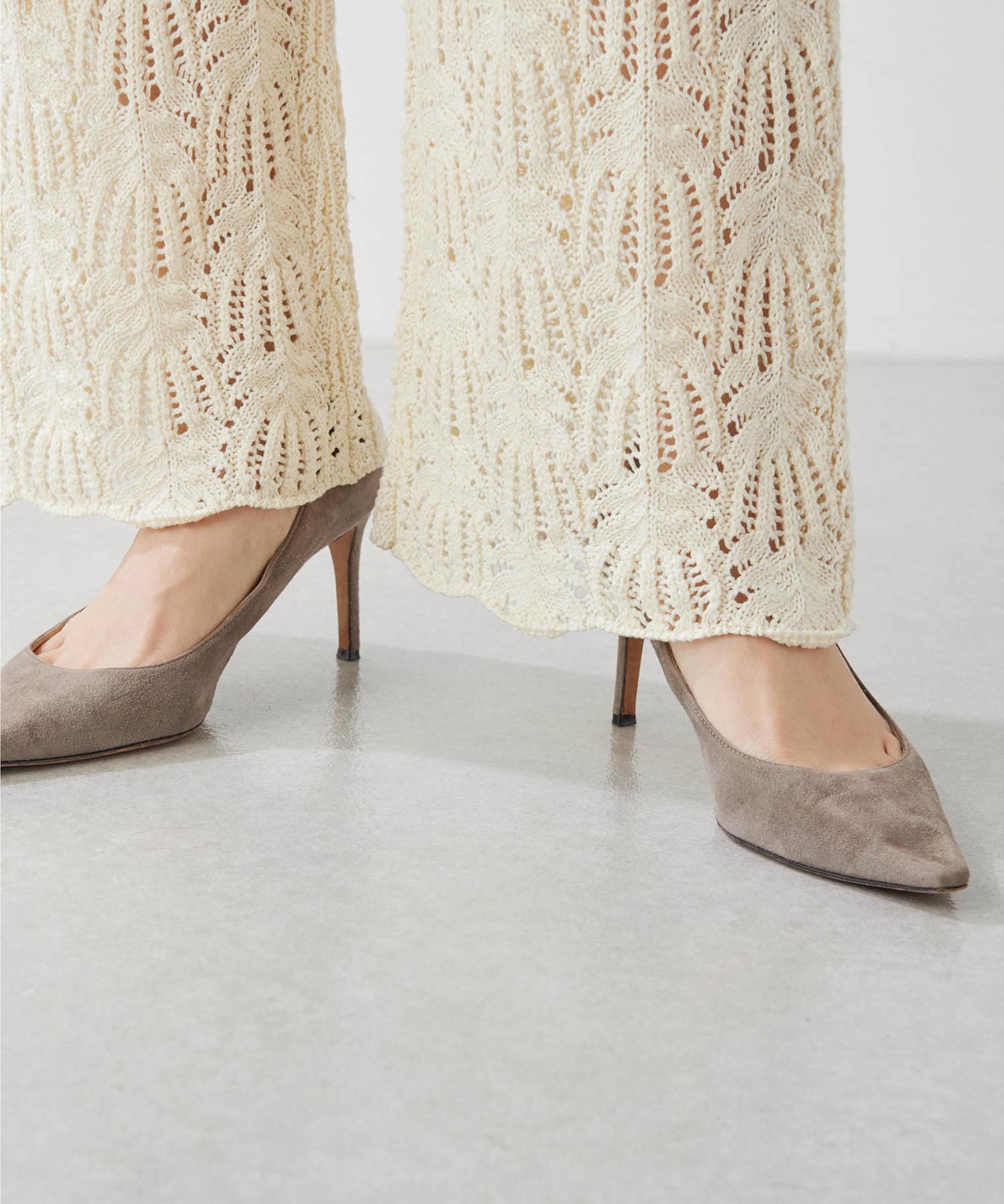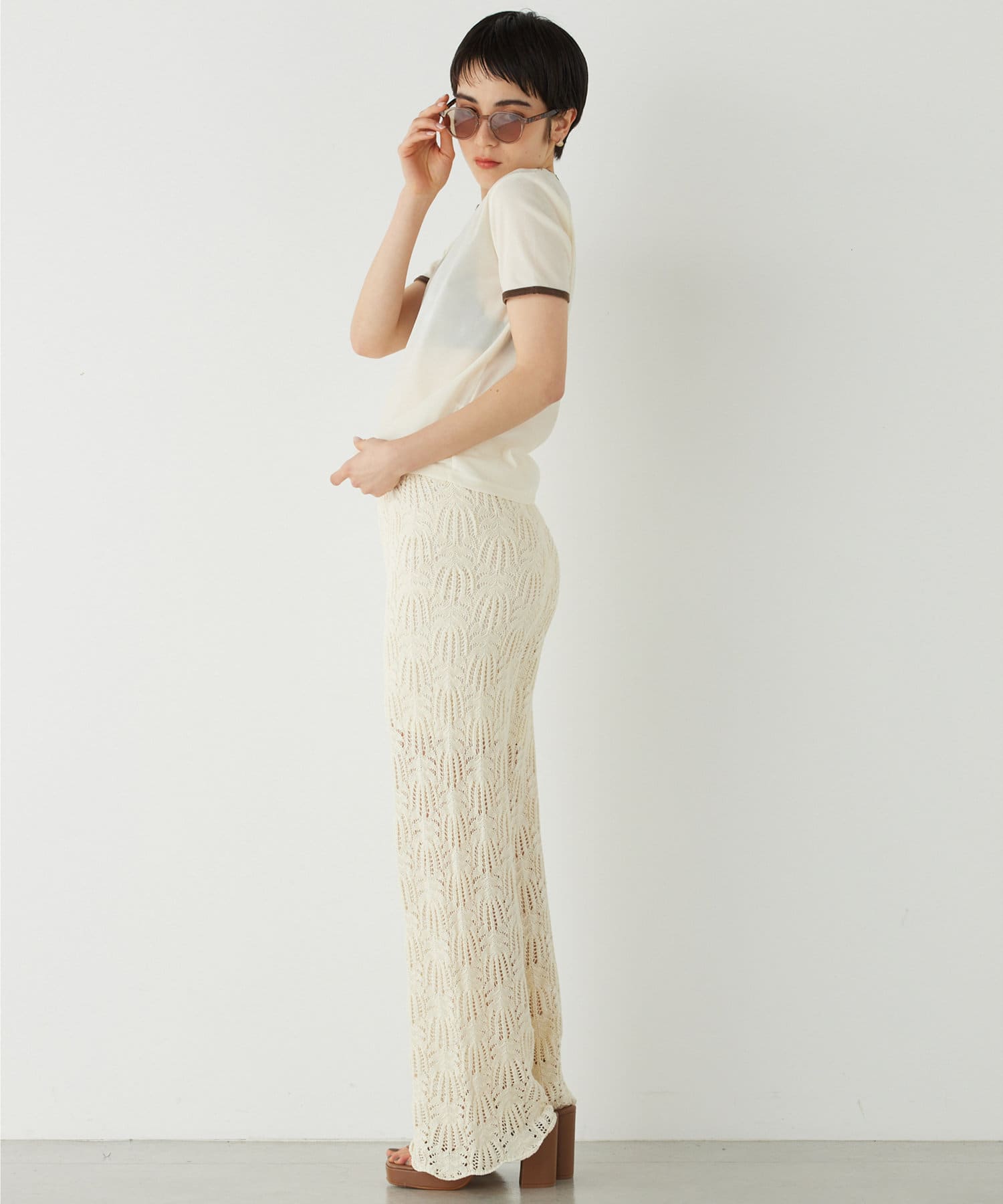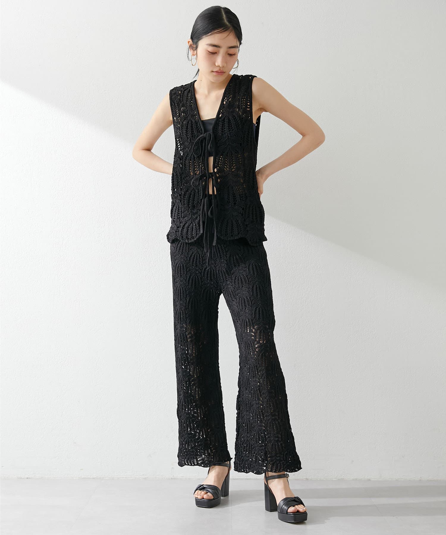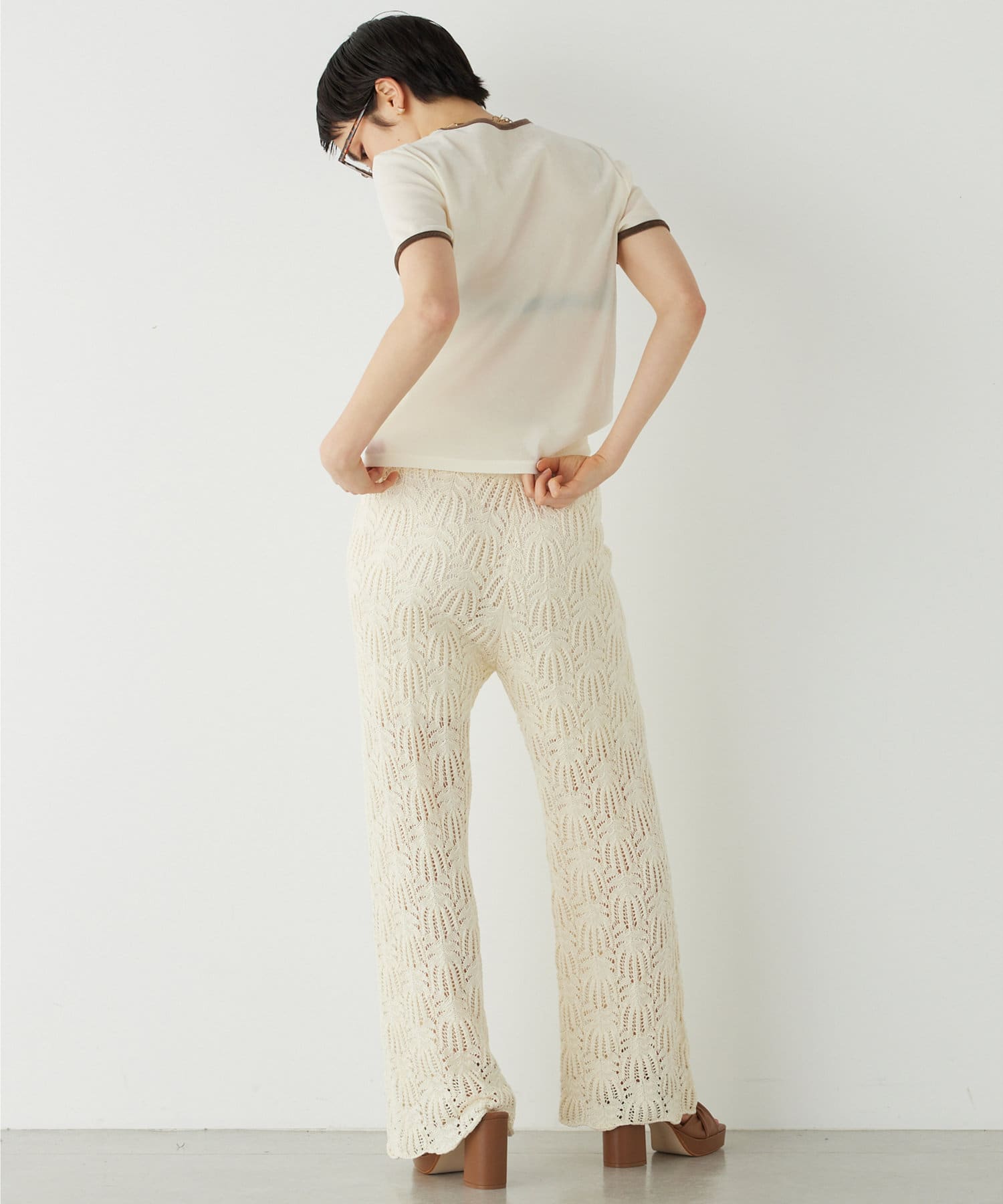 ■レースのような透かし編みの表情が印象的なストレートパンツ。