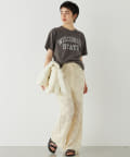 透け感のあるニットパンツ。肉厚な素材感で身体のラインを拾いすぎなくすとんとストレートに落ちます。ウエストで穿くと少し短く感じたので、少し腰で落として着用してます。