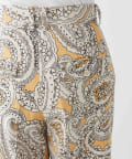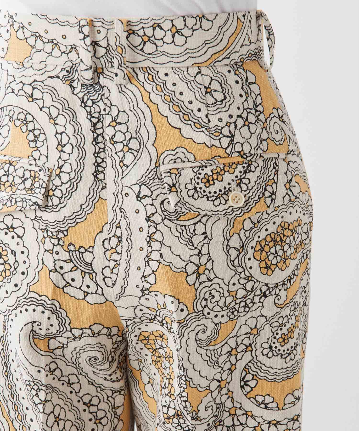 ヴィンテージ感のあるペイズリー柄パンツ。立体感の出る生地はラインが綺麗です。腰にはタックが入っており、裾に向かって細くなります。柄にインパクトがあるのでシンプルなトップスやきれいめなジャケットとの合わせが◎。