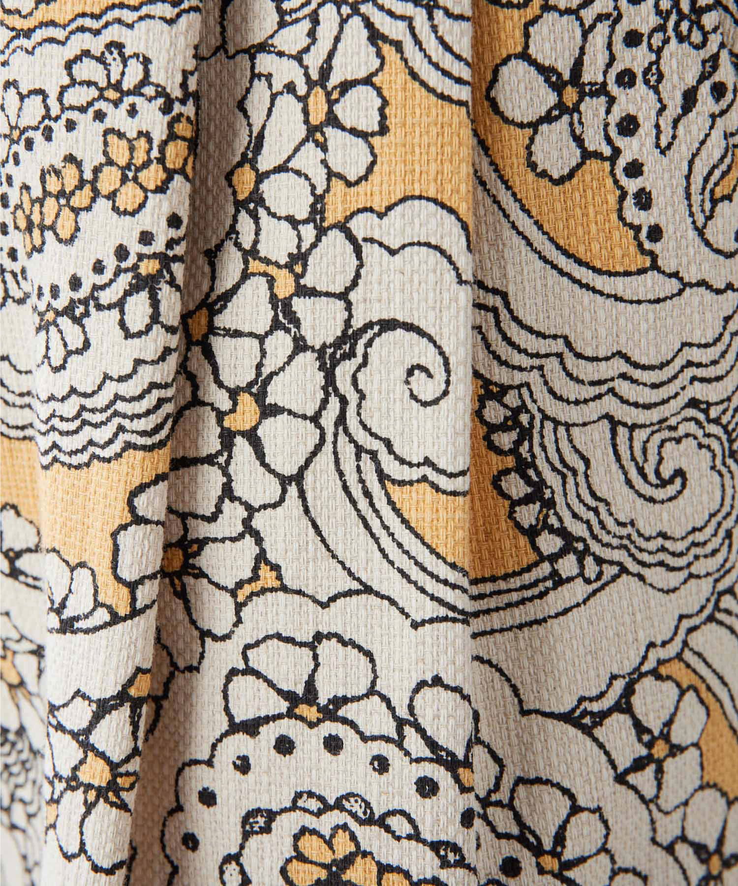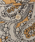 綿・麻混の太番手による中肉でも清涼感を感じられ、織によってしっかりとした凹凸を出した素材にヴィンテージの柄をプリントした生地。