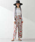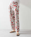 ヴィンテージライクな柄が目を惹く、リネン混タックパンツ