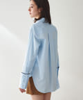ベーシックなデザインながら、長めのカフスとパイピングが存在感のある一枚です。前を開けて羽織りとしても、ニットやスウェットのレイヤードアイテムにもOKな3シーズン着回せる優秀アイテムです。
