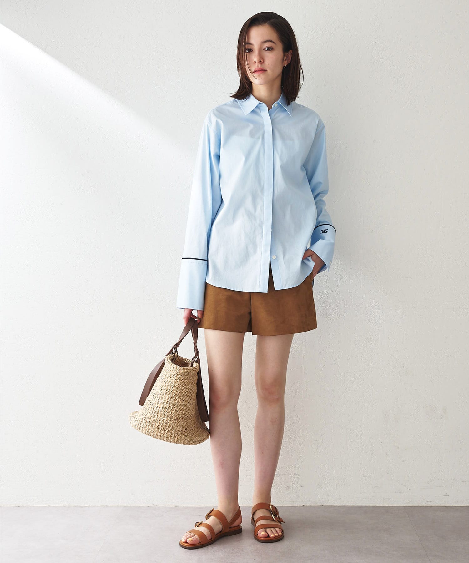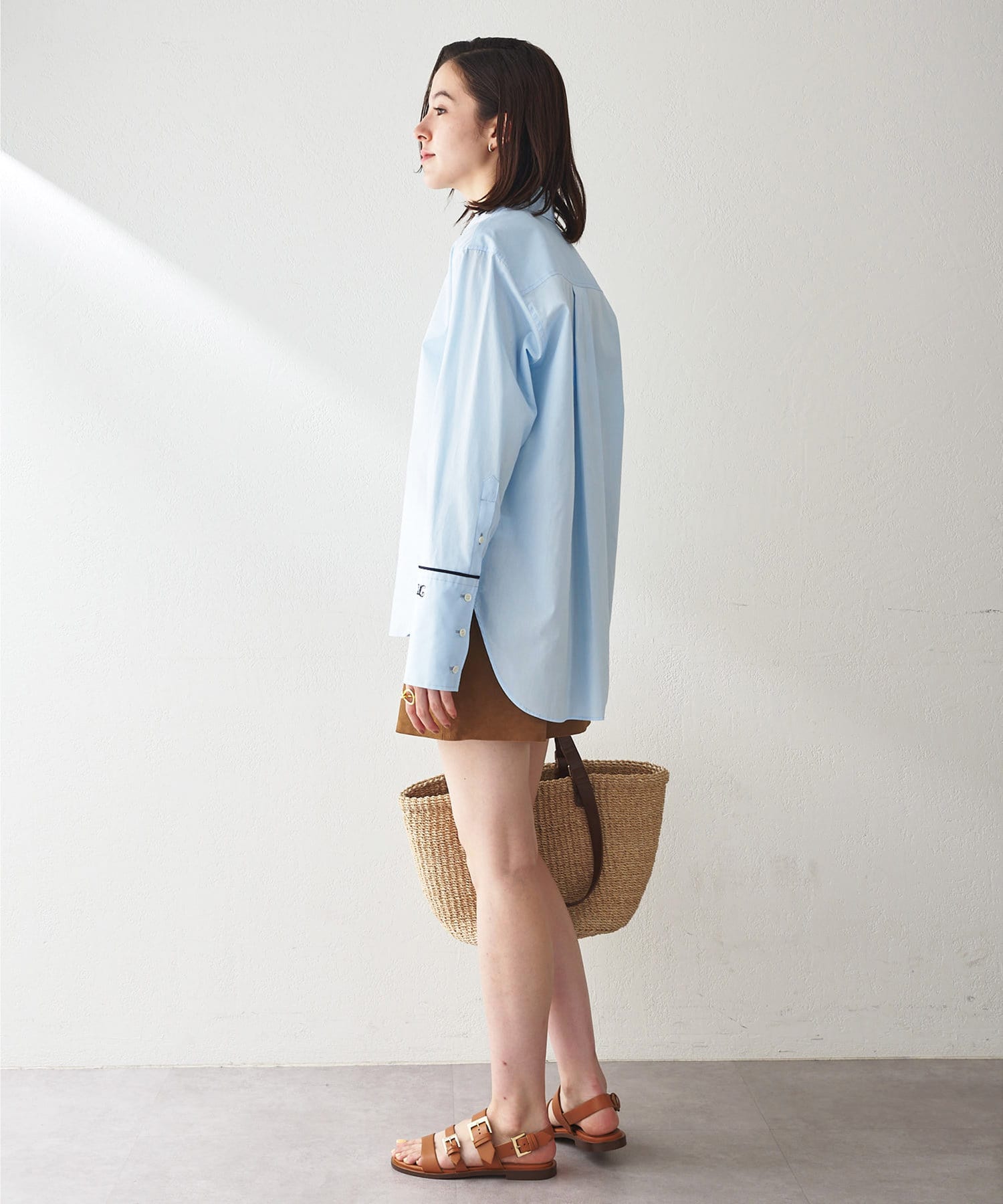 程よいハリですっきりとしたシルエットが特徴の刺繍シャツ。袖のラインがアクセントとなり、刺繍とともに差がつくデザインです。きちんと感もあるのでオフィスカジュアルにもおすすめです。