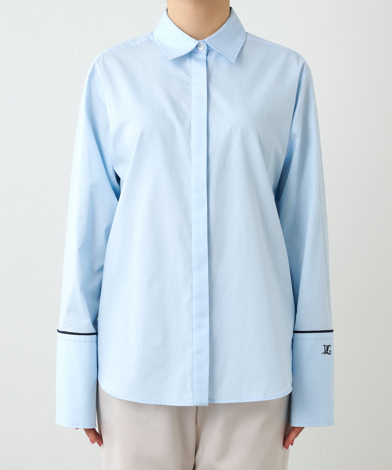 ■カフスに施されたオリジナル刺繍がポイントのシャツ。